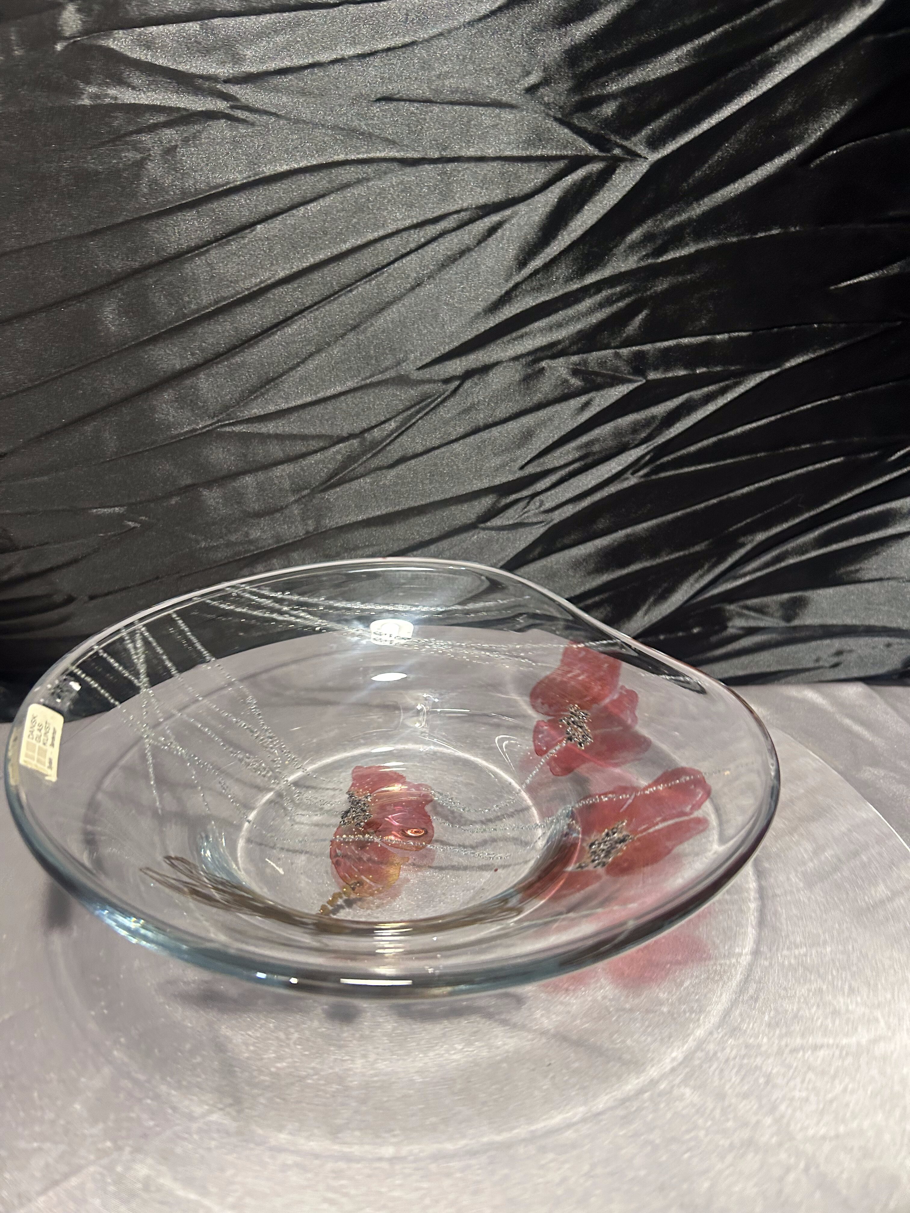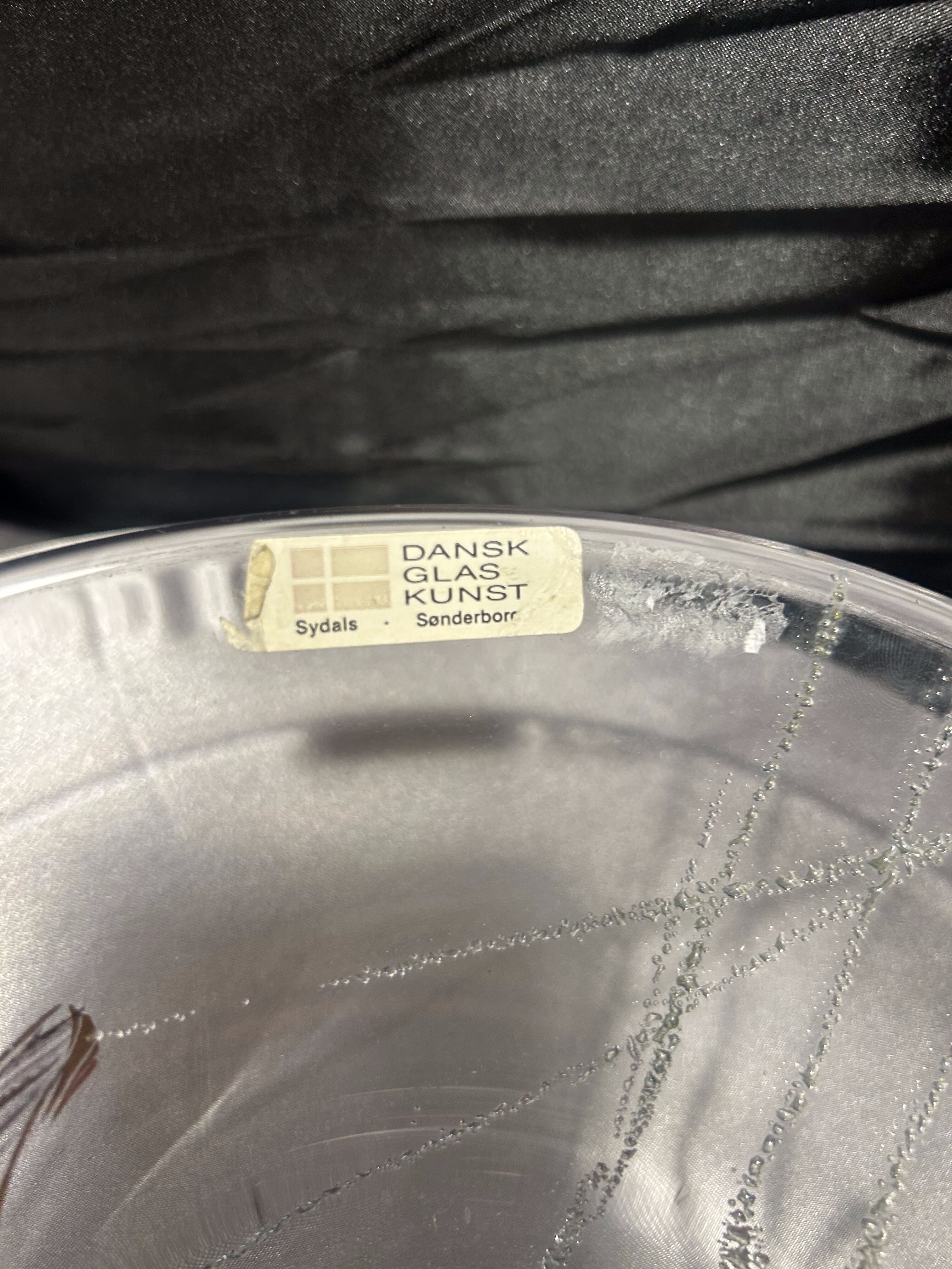 Piękny, ręcznie wykonany talerz dekoracyjny ze szkła artystycznego duńskiej marki Dansk Glas Kunst, pochodzący z pracowni na wyspie Als (Sydals/Sønderborg).