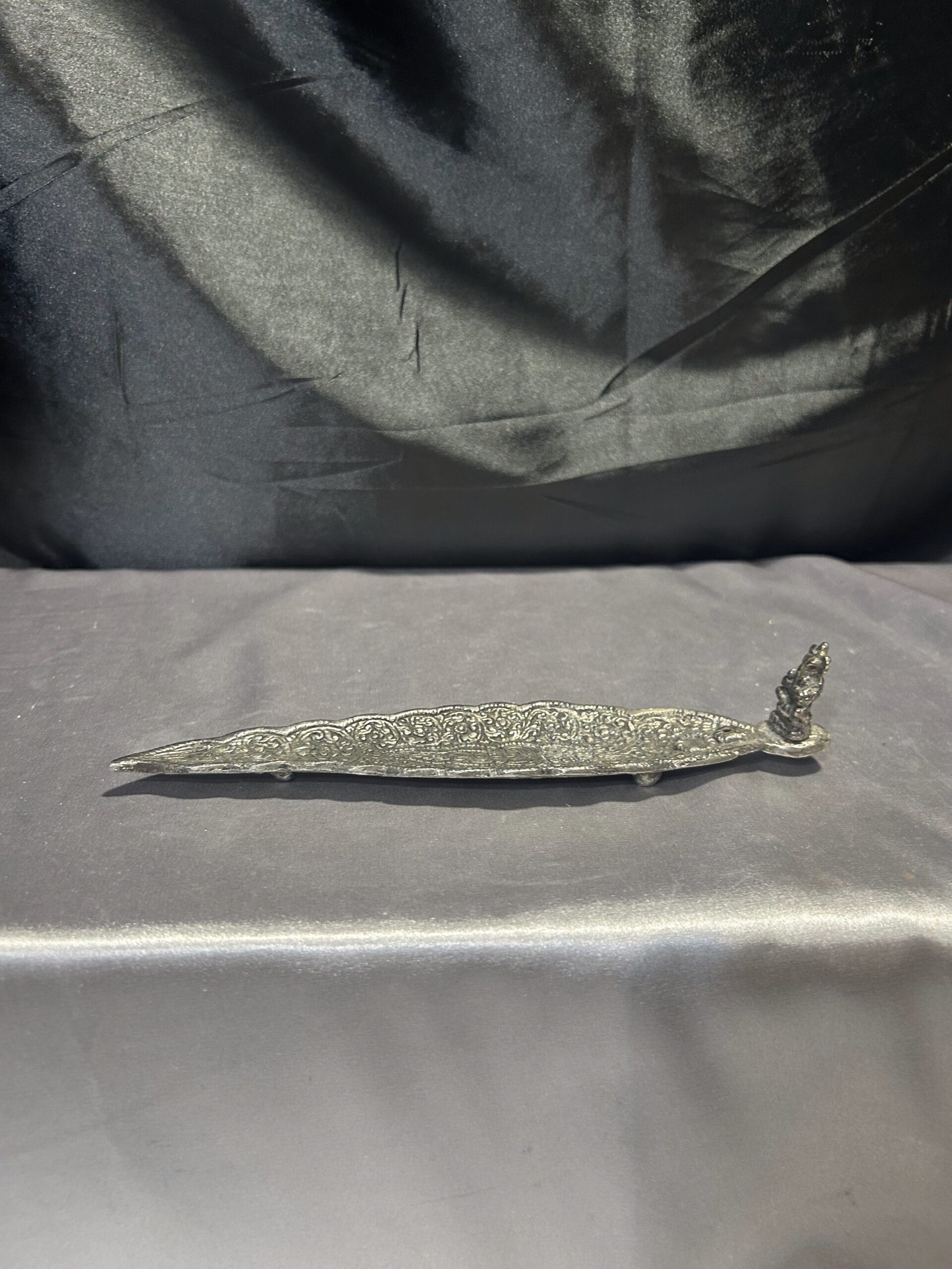Wyjątkowy talerzyk na kadzidełko, zdobiony misternymi detalami, z unikalną figurką słonia Ganesha umieszczoną na szczycie. Produkt ten stanowi doskonałe połączenie tradycji i nowoczesnego designu, idealny do tworzenia przytulnej atmosfery podczas medytacji czy relaksu. Jego elegancki wygląd sprawia, że doskonale wpasuje się w różnorodne aranżacje wnętrz, od domowej świątyni po stylowe saloniki.