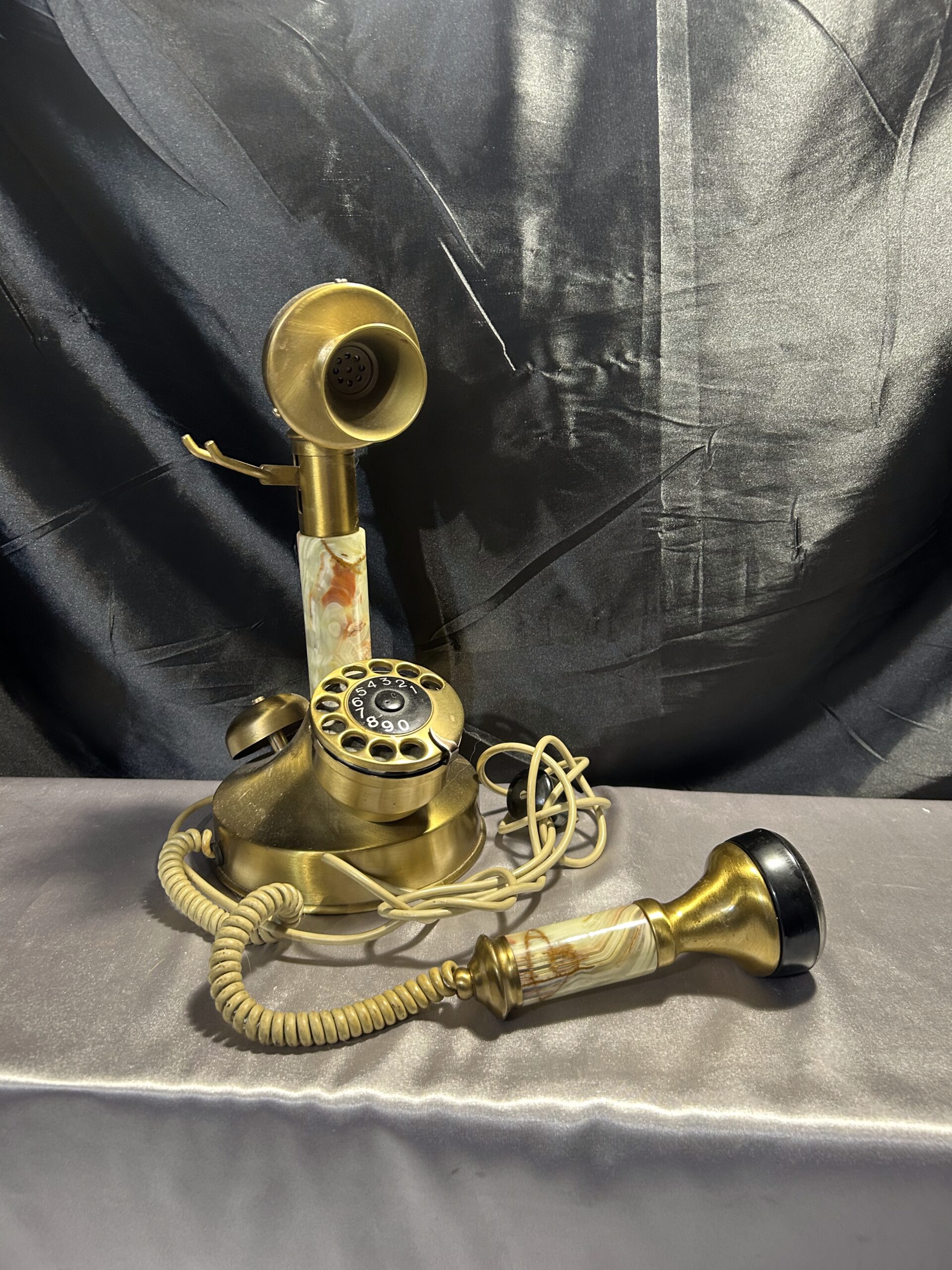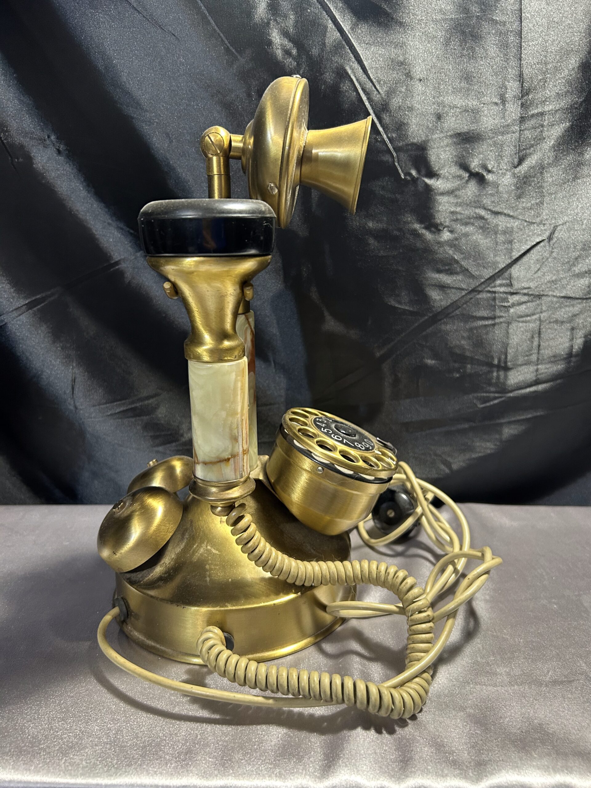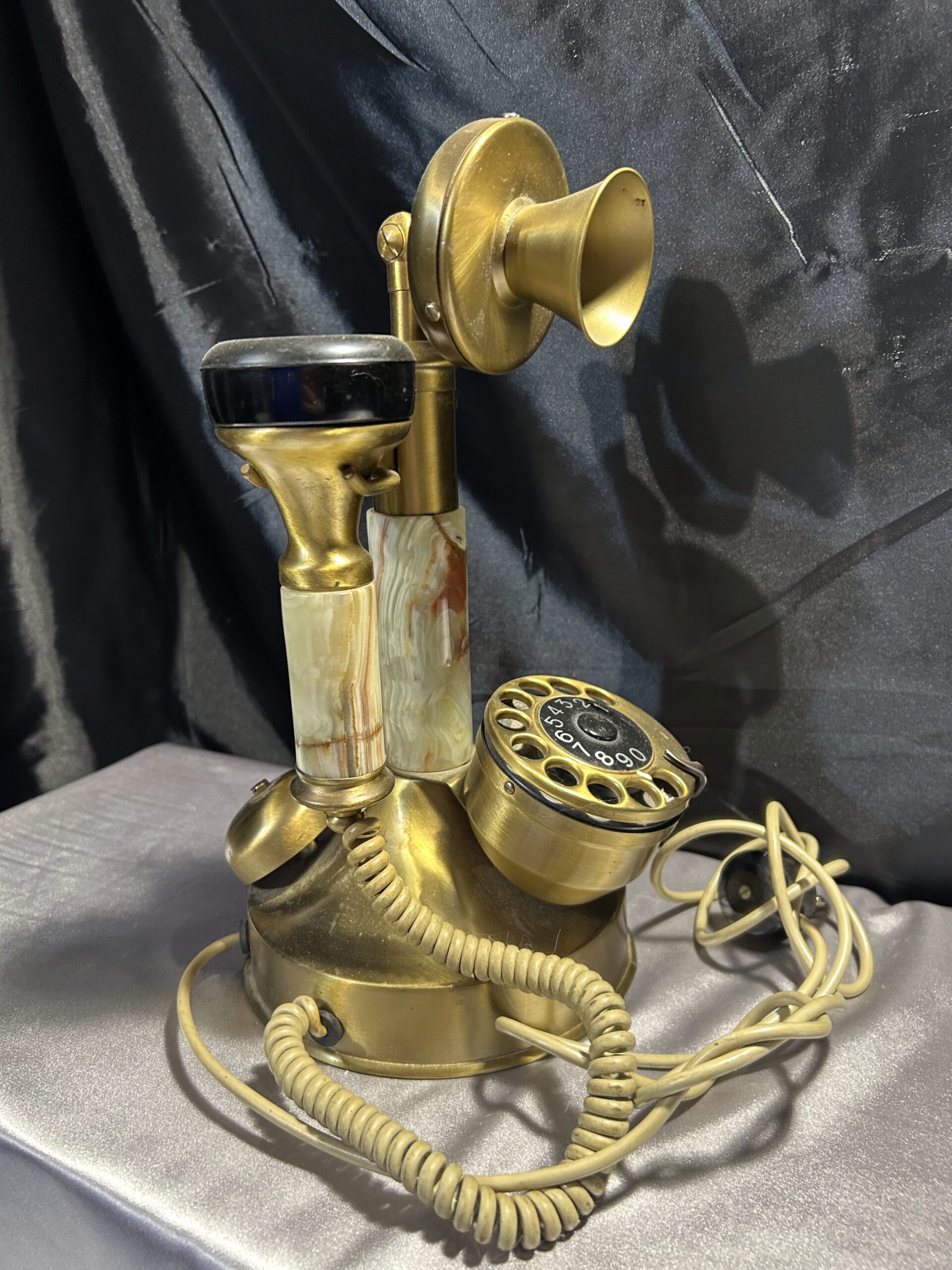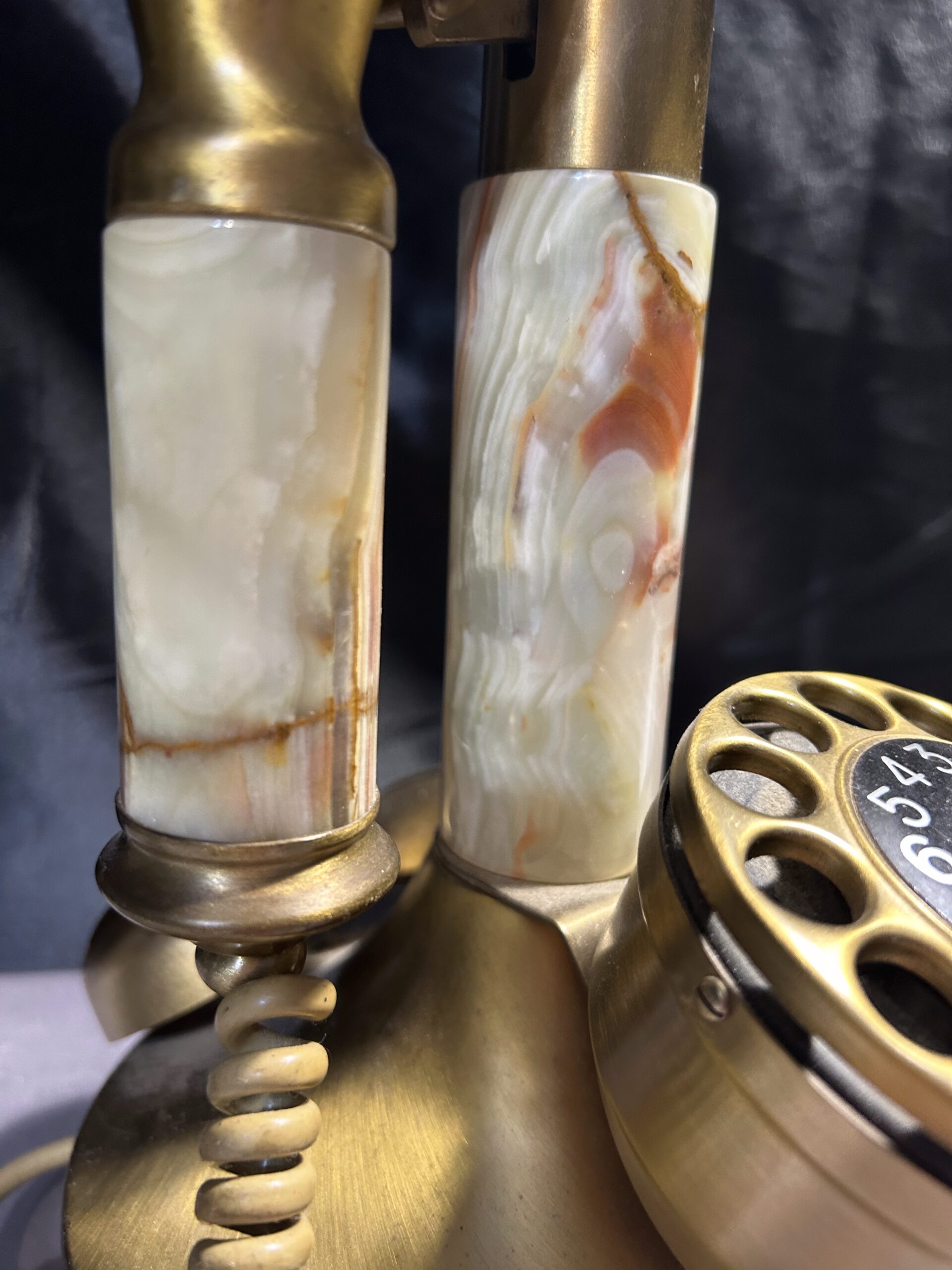 Telefon Antyk Vintage – Mosiądz i Onyks