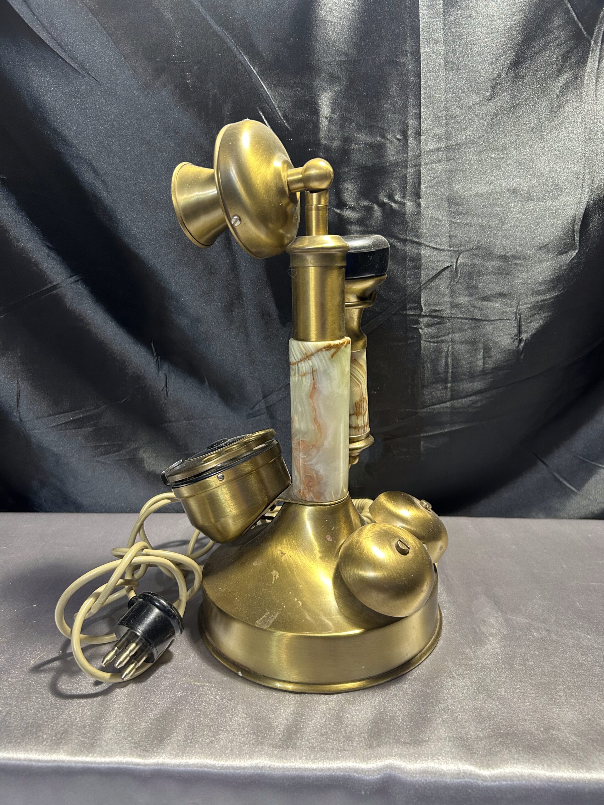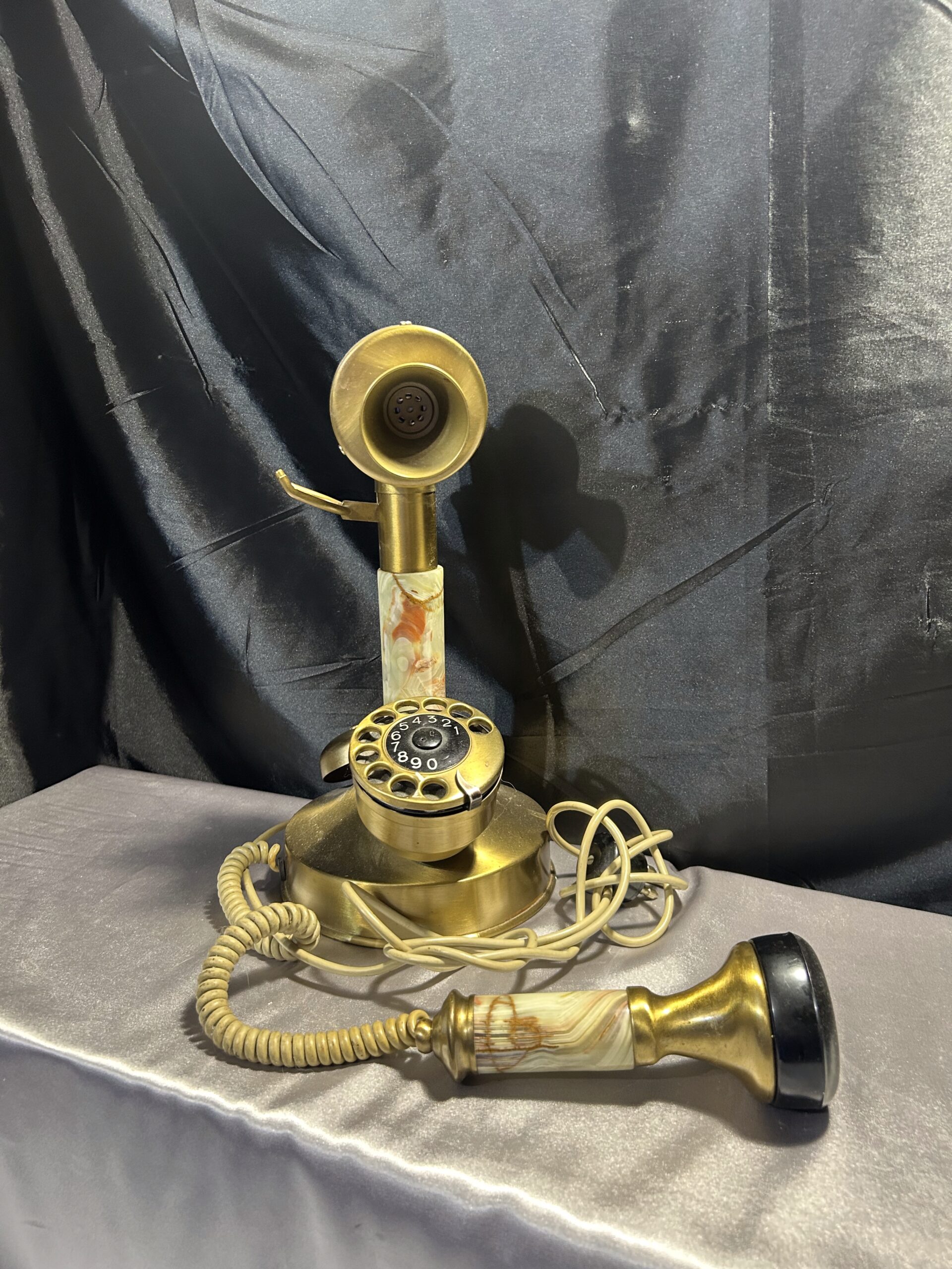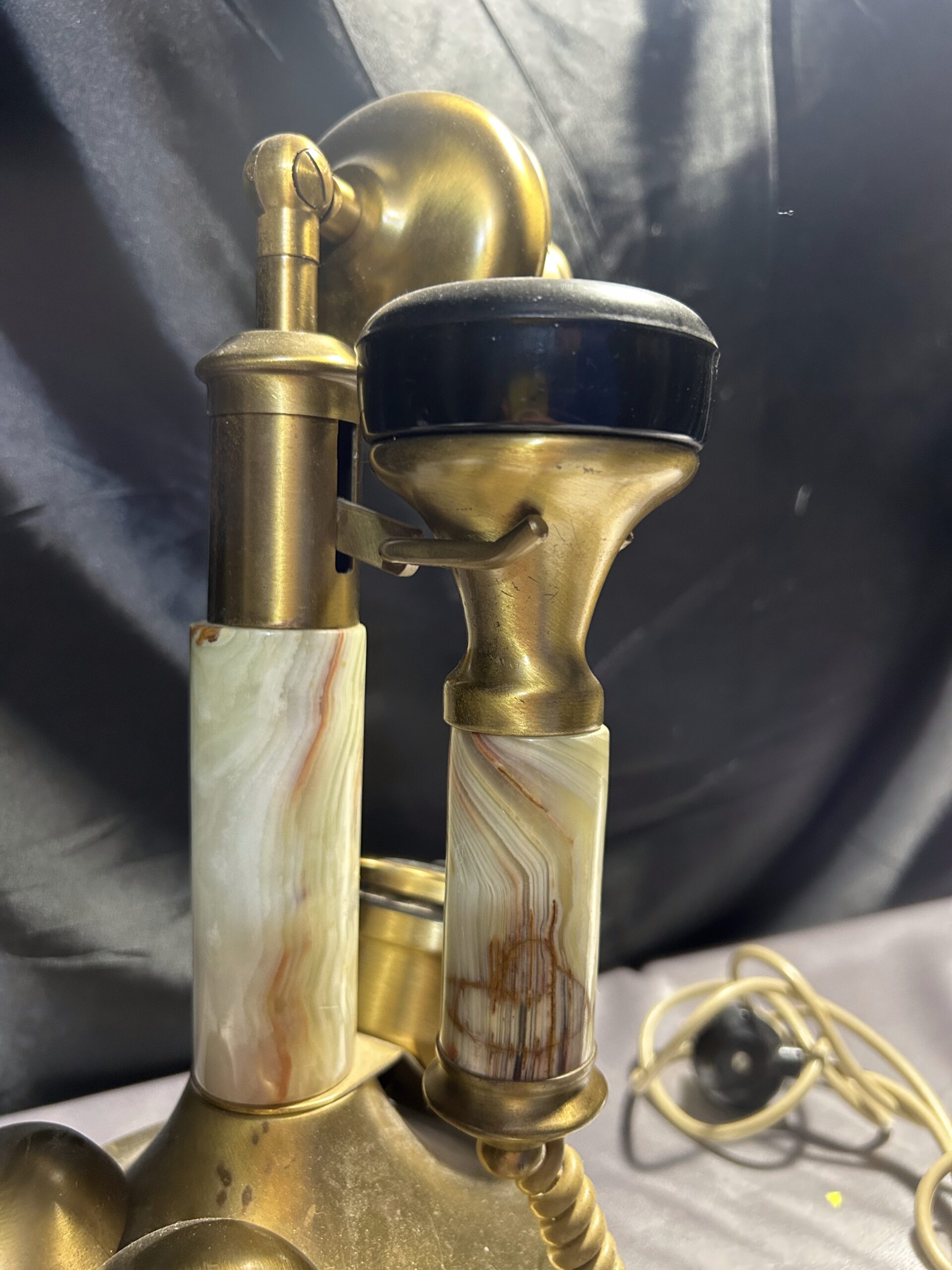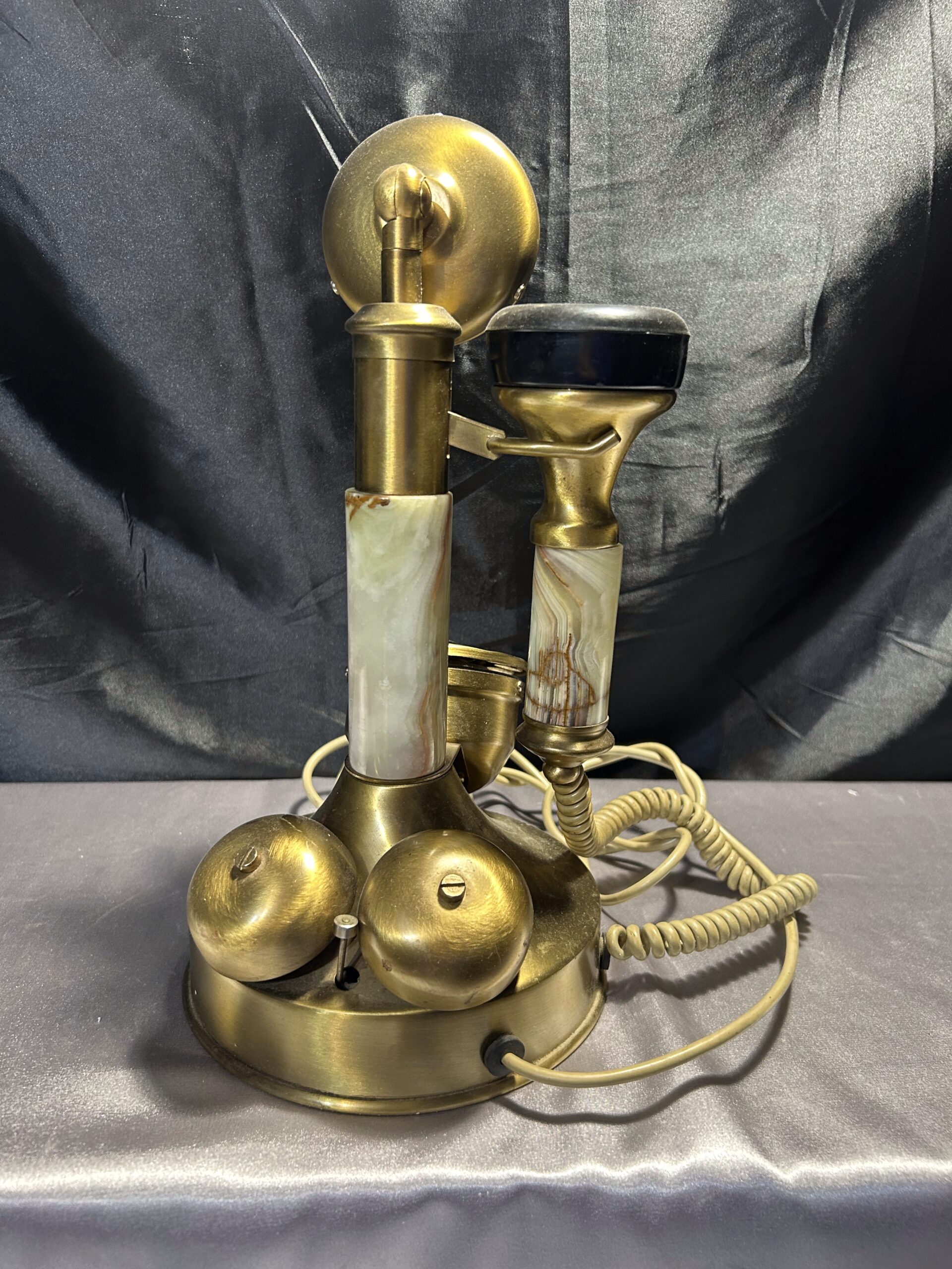 Telefon Antyk Vintage – Mosiądz i Onyks
