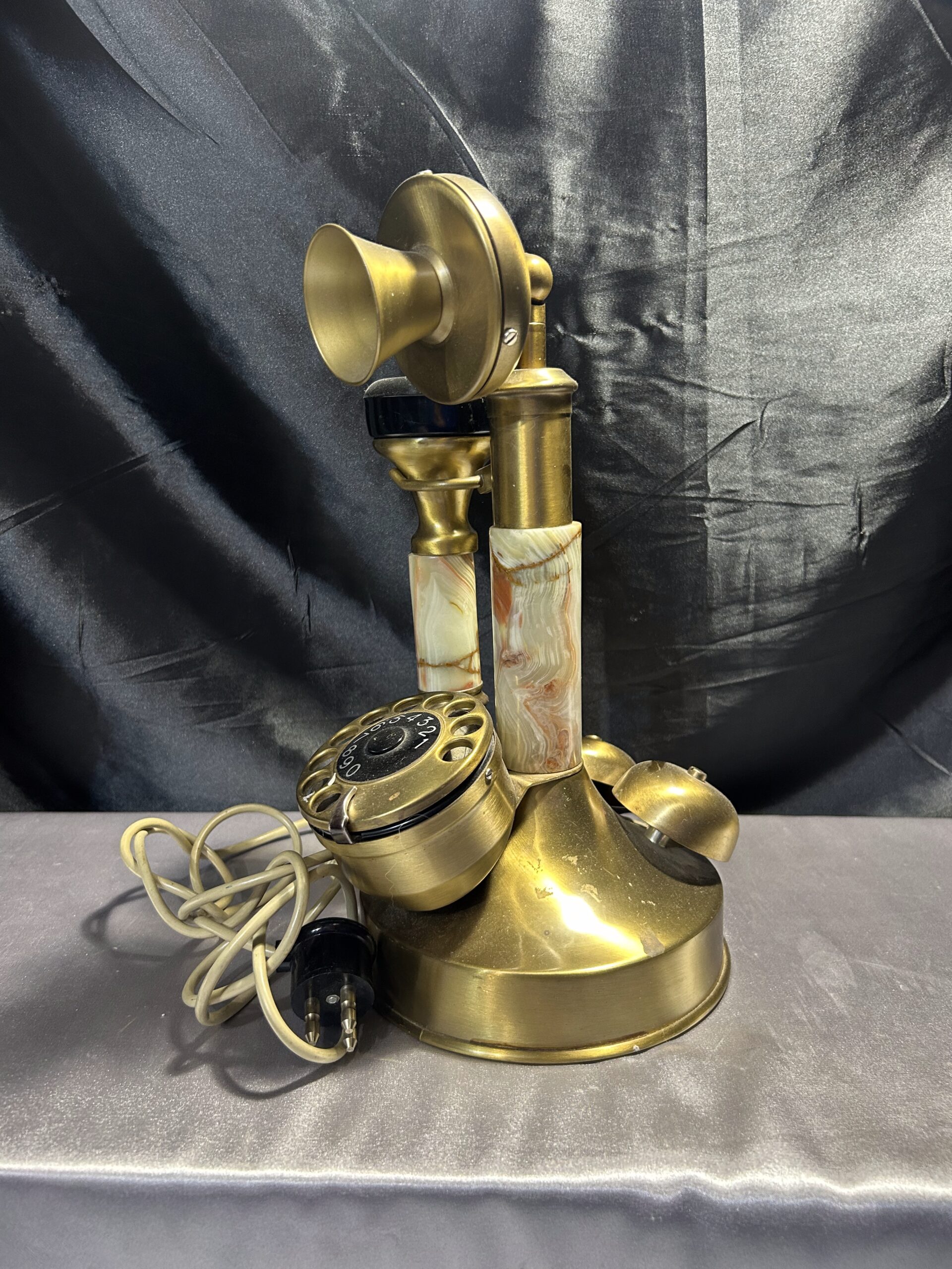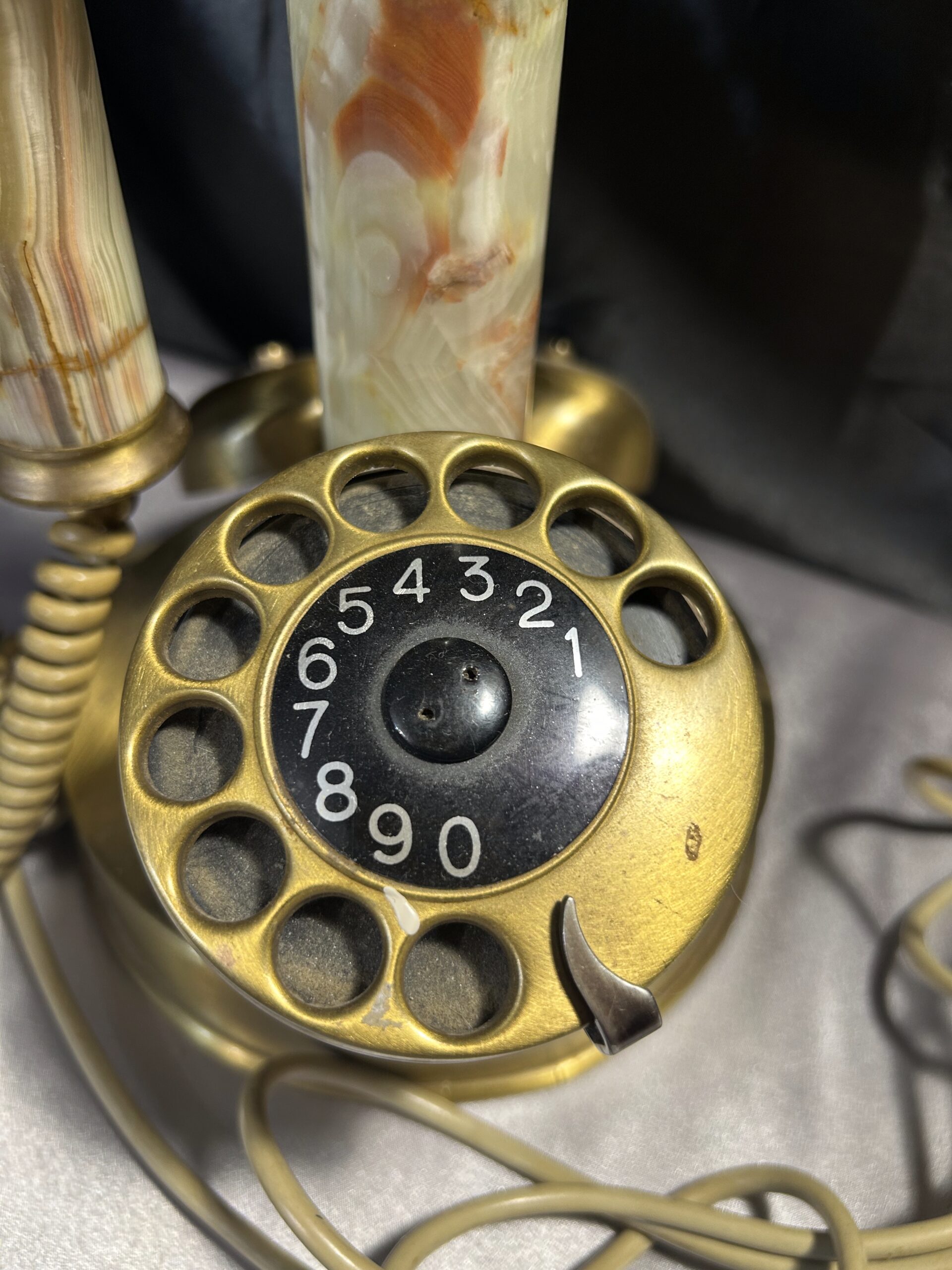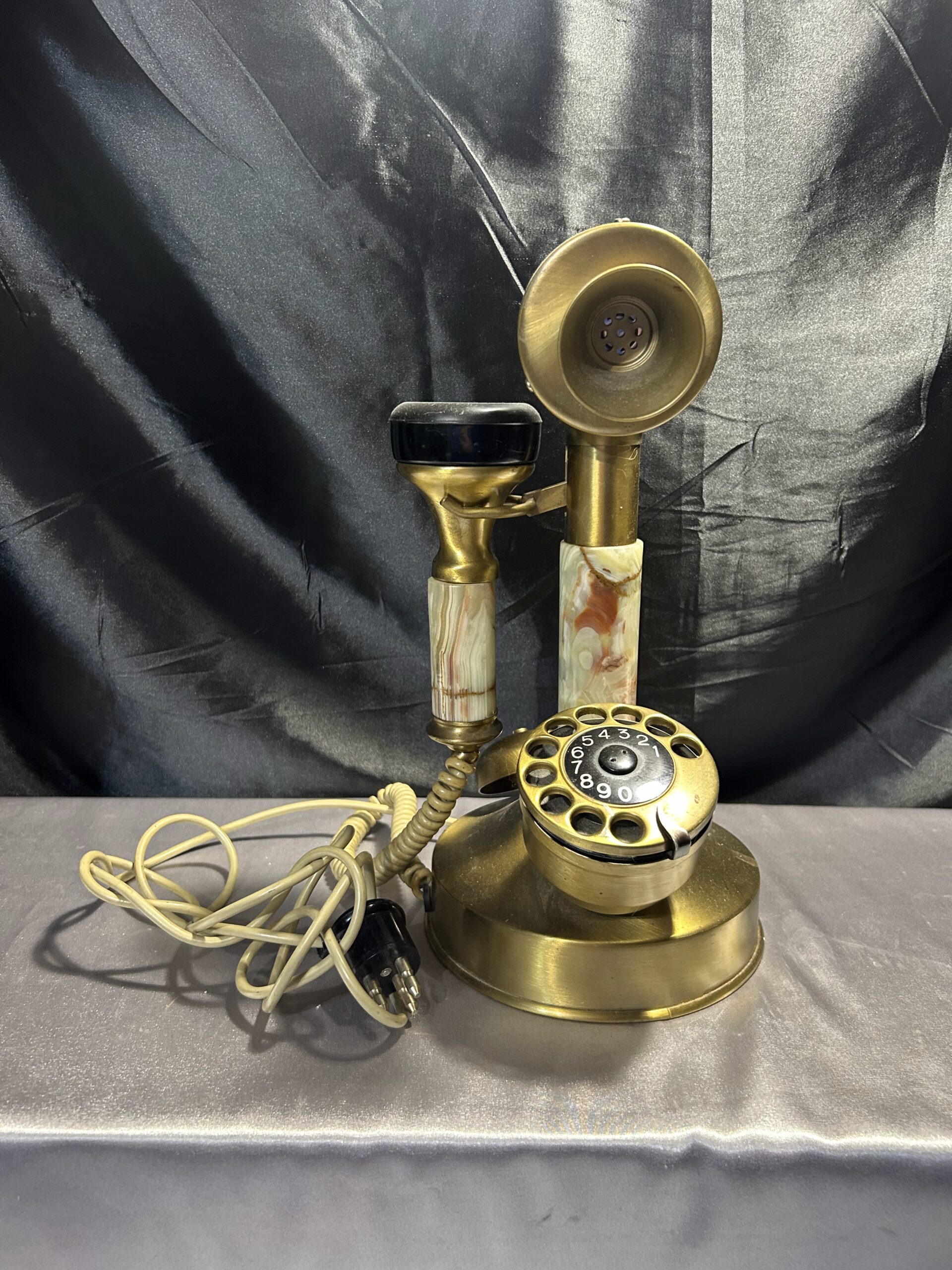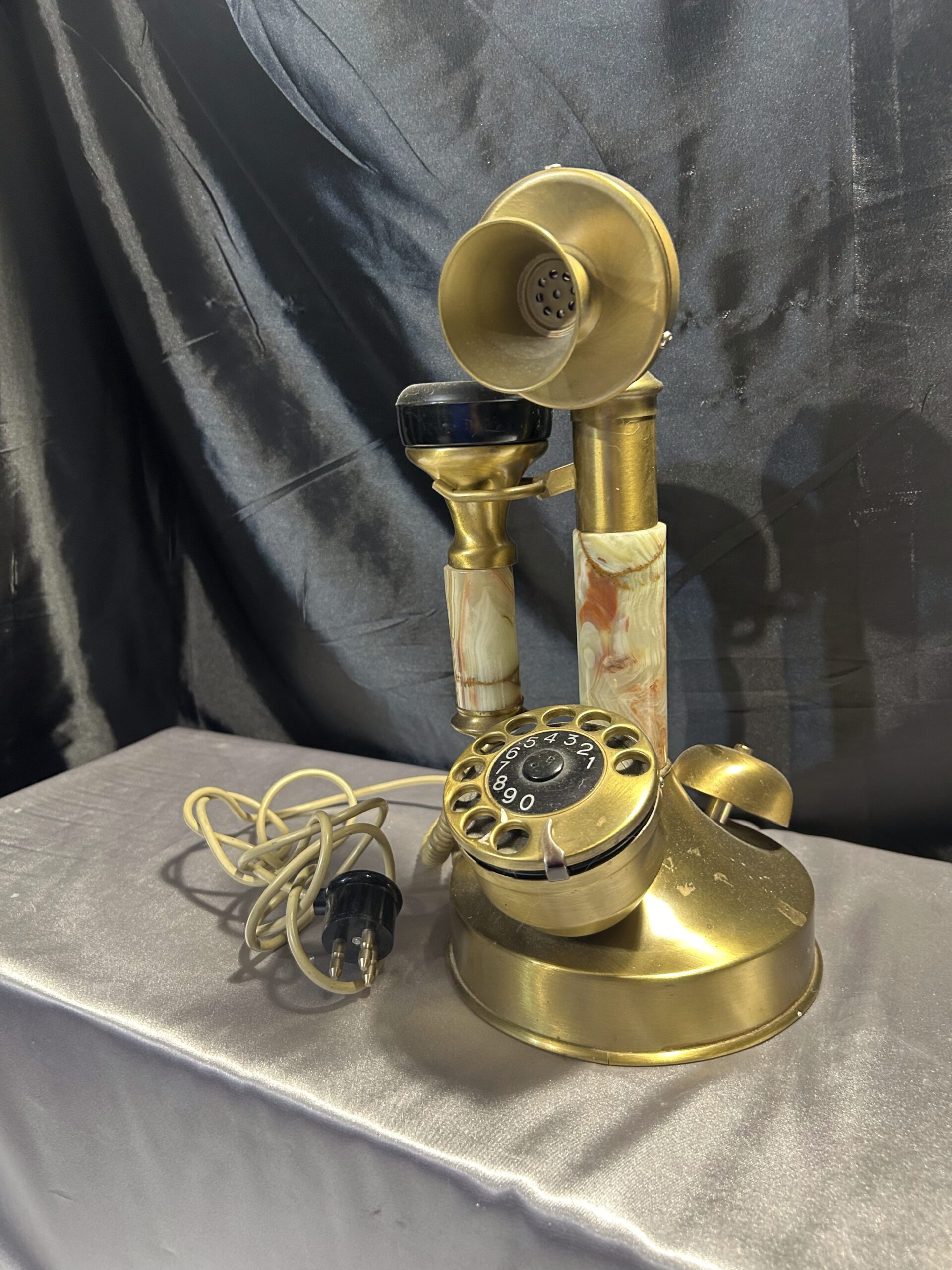 Telefon Antyk Vintage – Mosiądz i Onyks