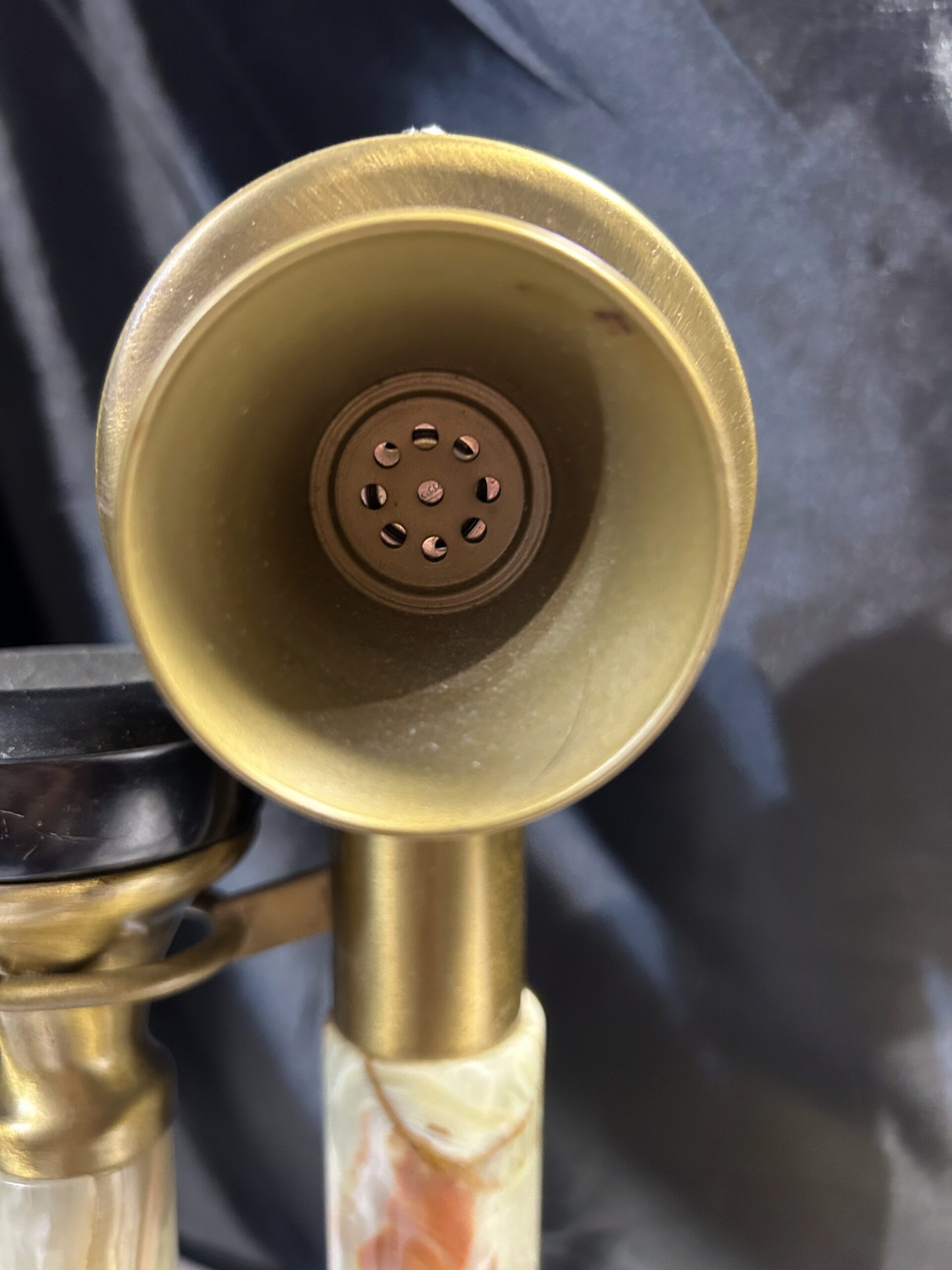 Ten antyczny telefon to doskonały dodatek do wnętrz w stylu retro lub vintage. Wykonany z solidnych materiałów, jak mosiądz i onyks, prezentuje się niezwykle elegancko i oryginalnie. Idealny dla kolekcjonerów, miłośników dawnych technologii oraz jako stylowa dekoracja, która przyciąga wzrok i dodaje pomieszczeniom wyjątkowego uroku.