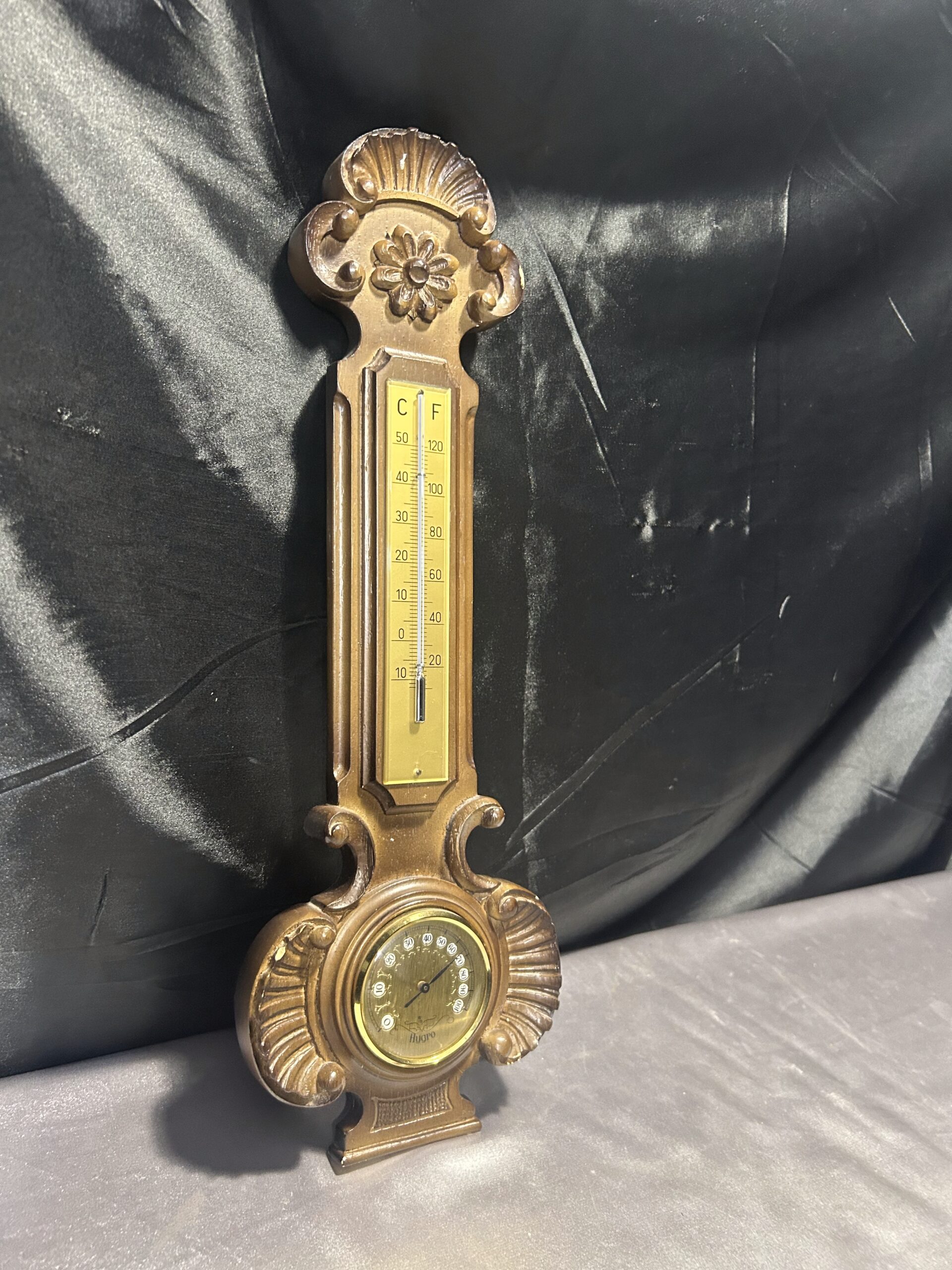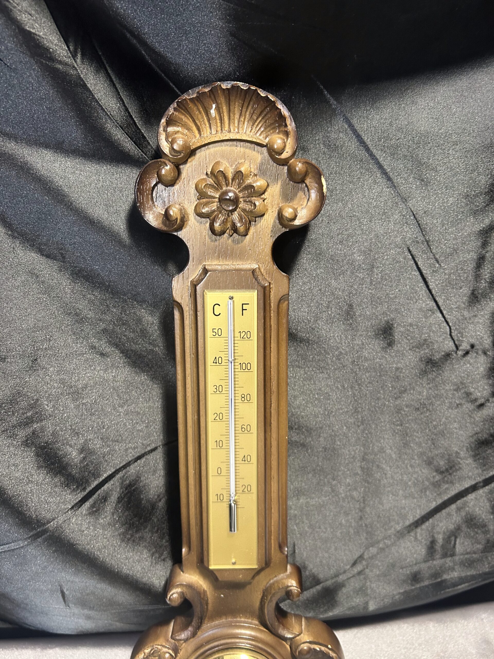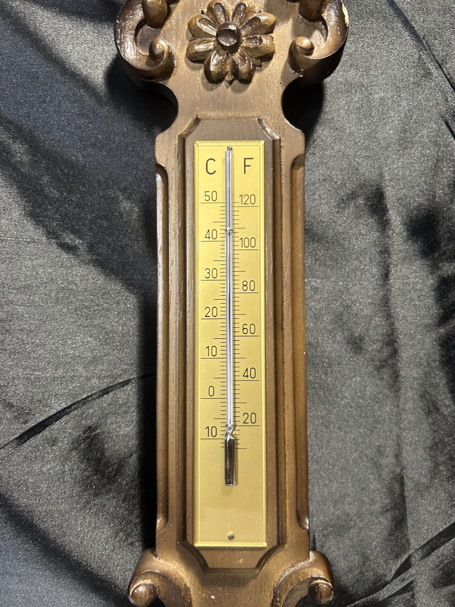 Stylowy zestaw mierników – termometr i higrometr – osadzony w eleganckiej, drewnopodobnej ramie o dekoracyjnym wykończeniu. Klasyczny design sprawia, że doskonale komponuje się z wnętrzami w stylu retro, rustykalnym czy vintage. Praktyczna możliwość zawieszenia na ścianie czyni go zarówno funkcjonalnym, jak i dekoracyjnym elementem każdego pomieszczenia.