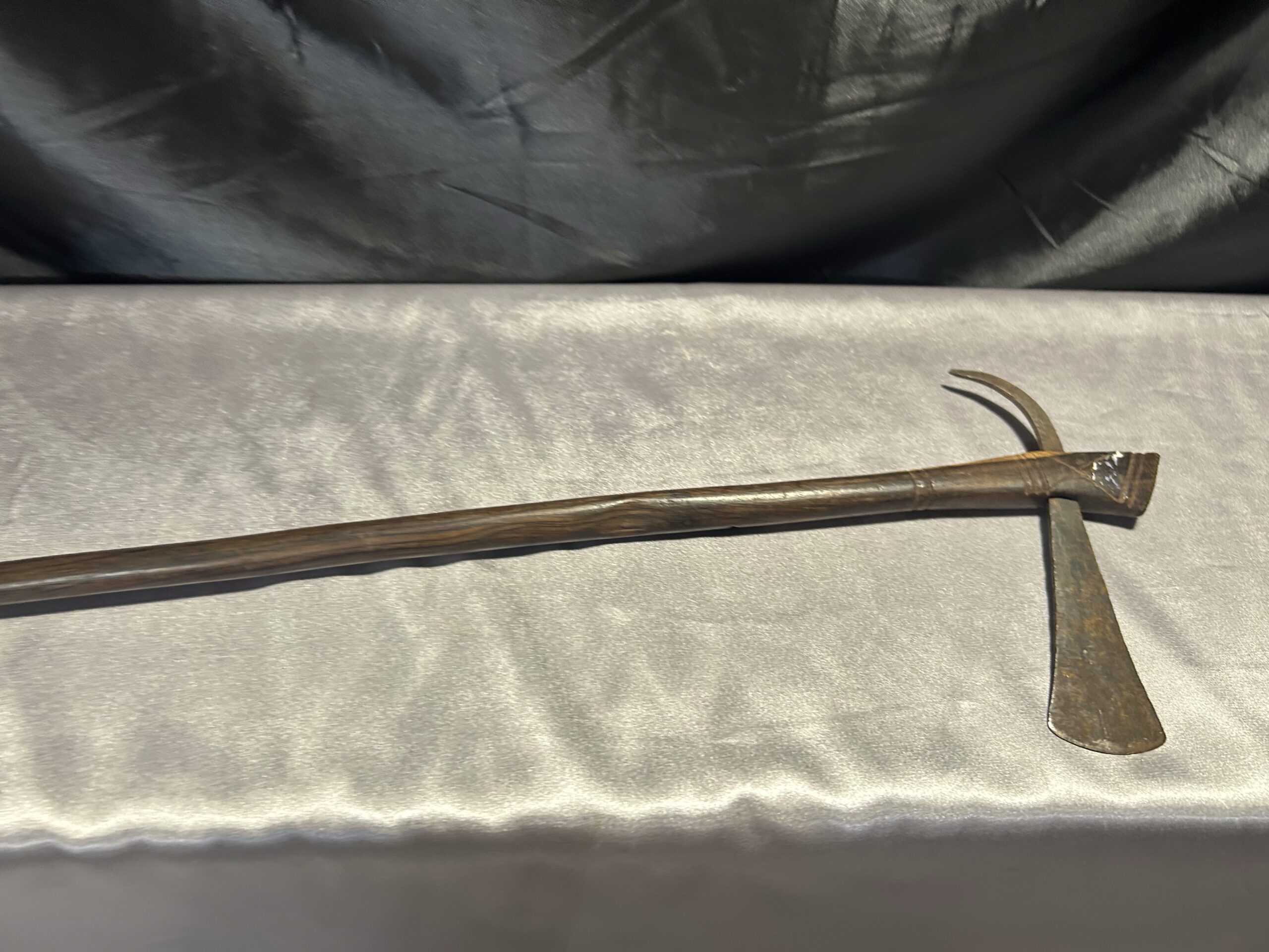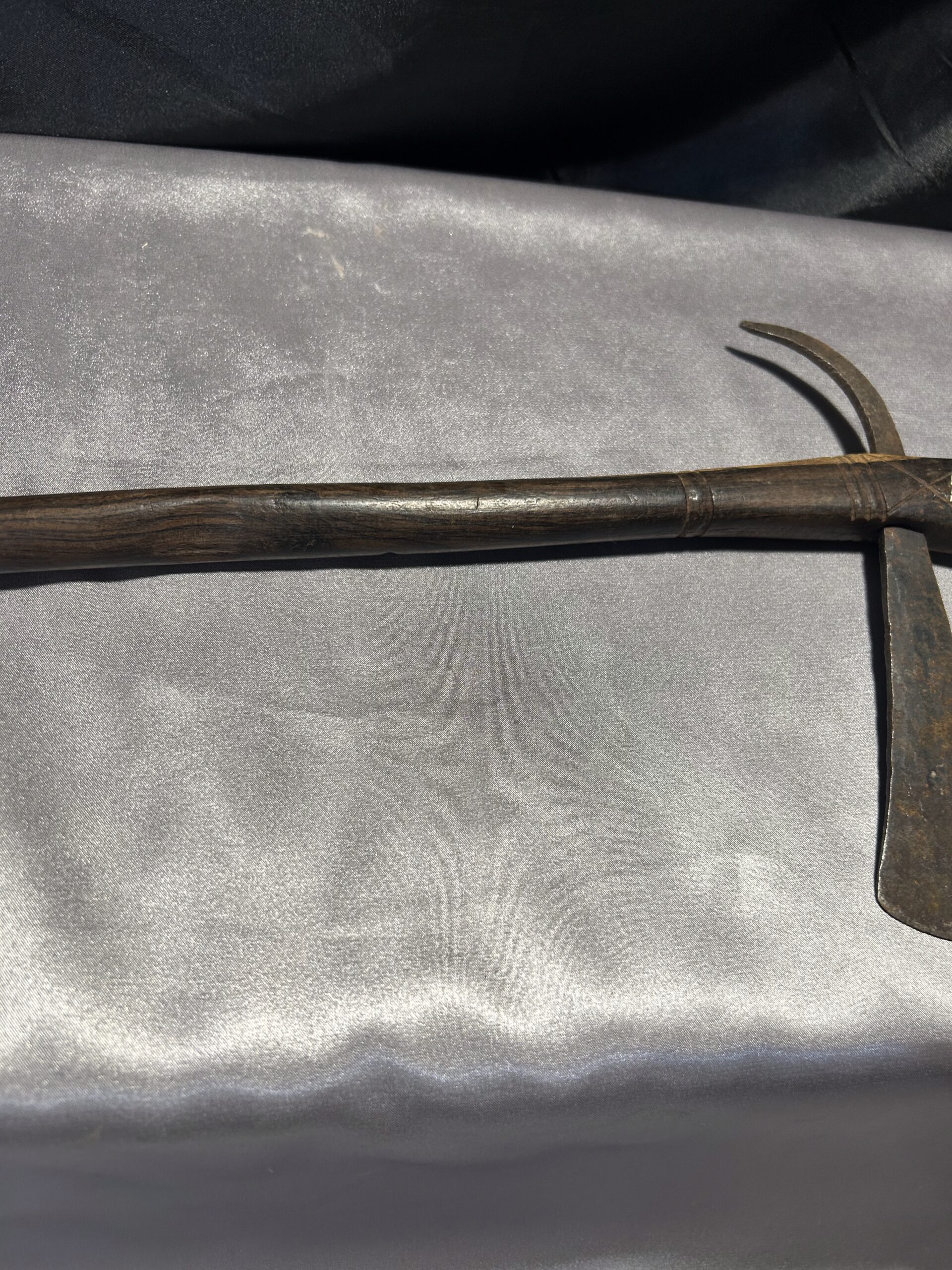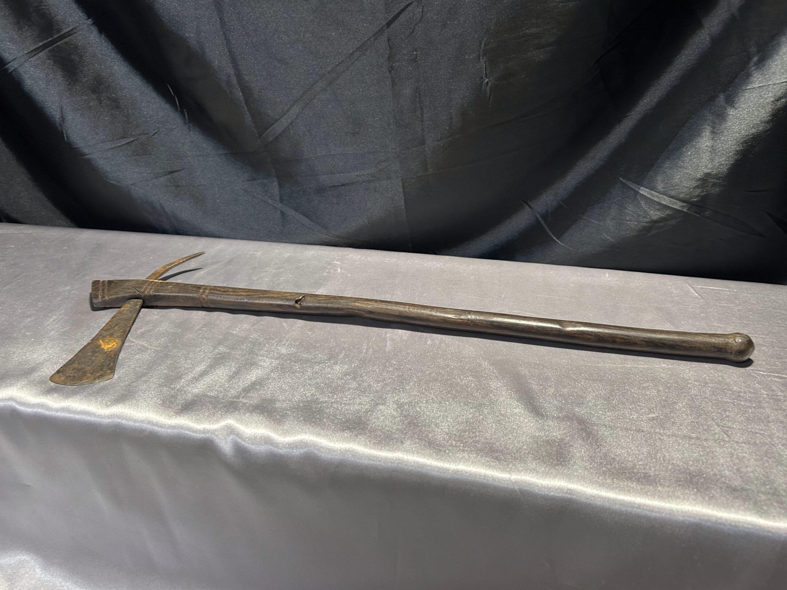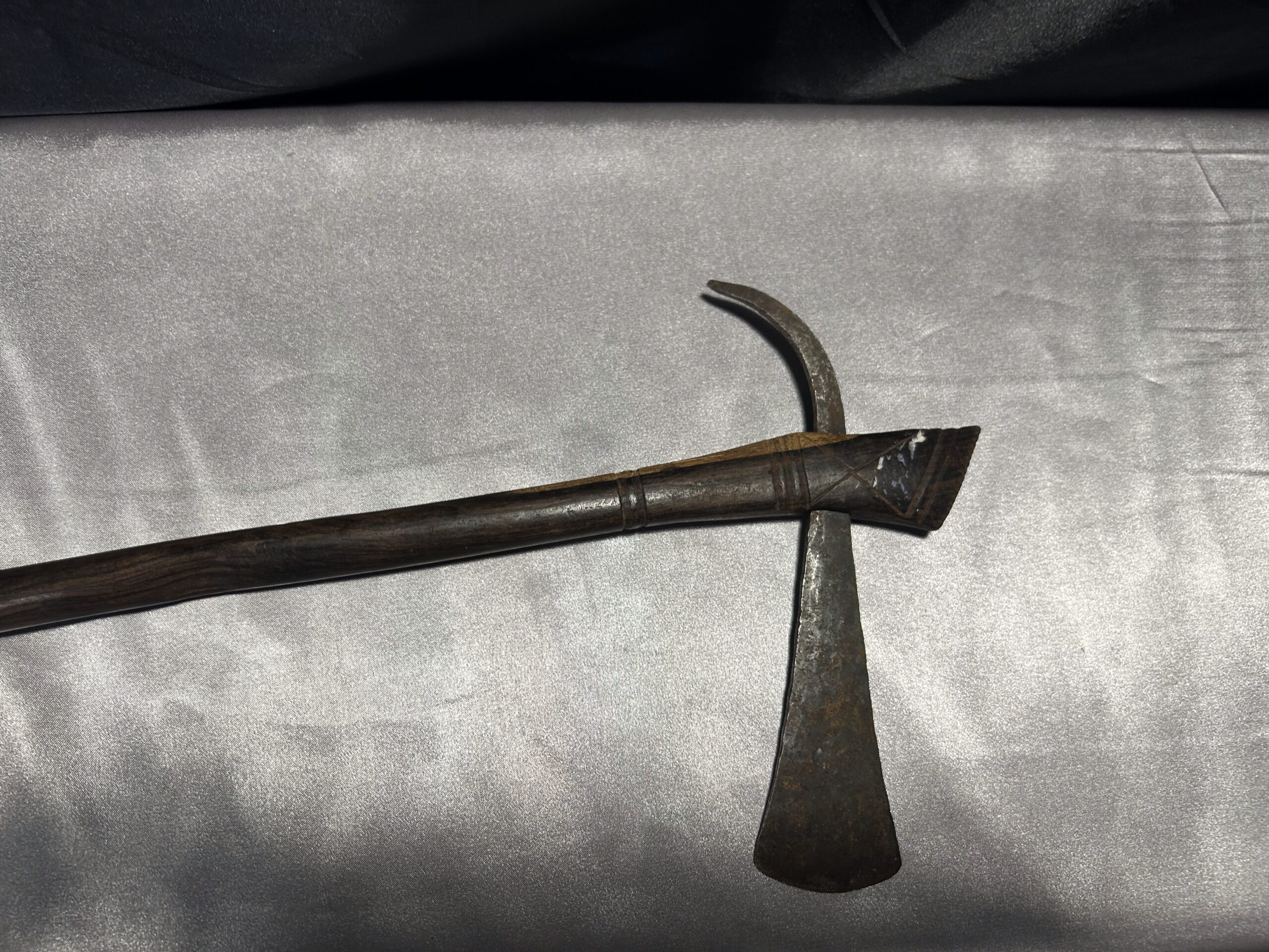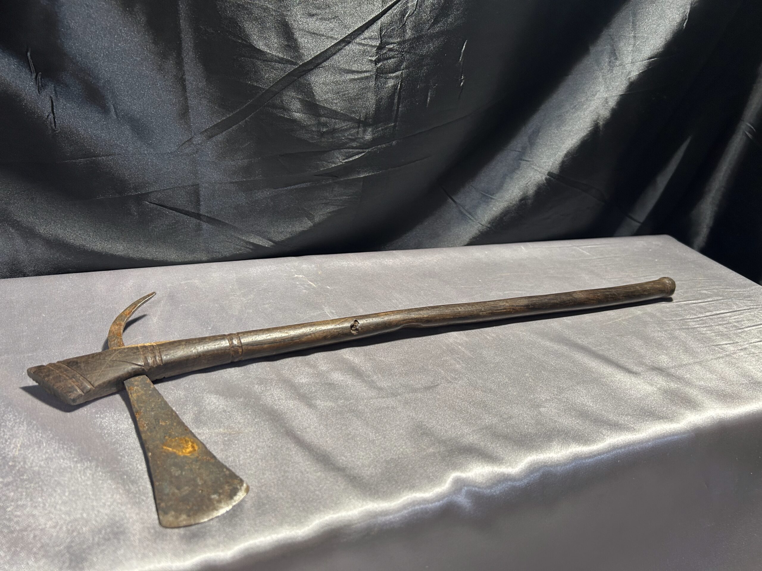 Piękny tomahawk inspirowany indiańską tradycją, wykonany z drewnianego rzeźbionego trzonka i stalowego ostrza. Doskonały zarówno jako element kolekcjonerski, jak i ozdoba wnętrza w stylu etnicznym lub historycznym.