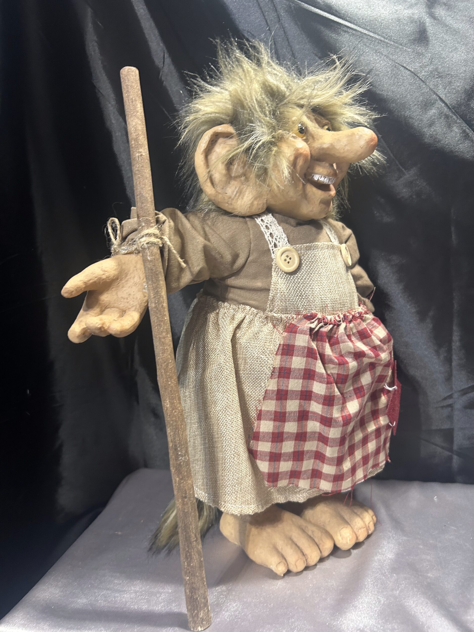 Troll gospodyni z drewnianym kijem – nowa figurka z metką, norweska pamiątka