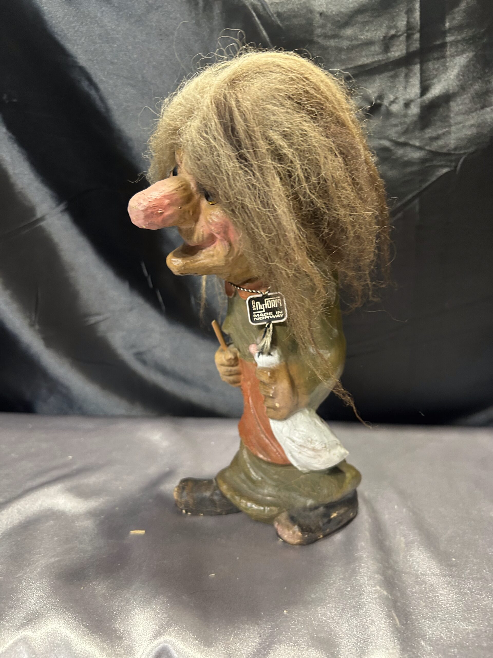 Przedstawiam norweską figurkę trolla, przywiezioną prosto z Norwegii, będącą klasyczną pamiątką nawiązującą do skandynawskiego folkloru. Figurka przedstawia kobietę trolla trzymającą kaczuszkę w rękach i kij w drugiej dłoni, ubrana jest w czerwony fartuszek, co nadaje jej wyjątkowego uroku.