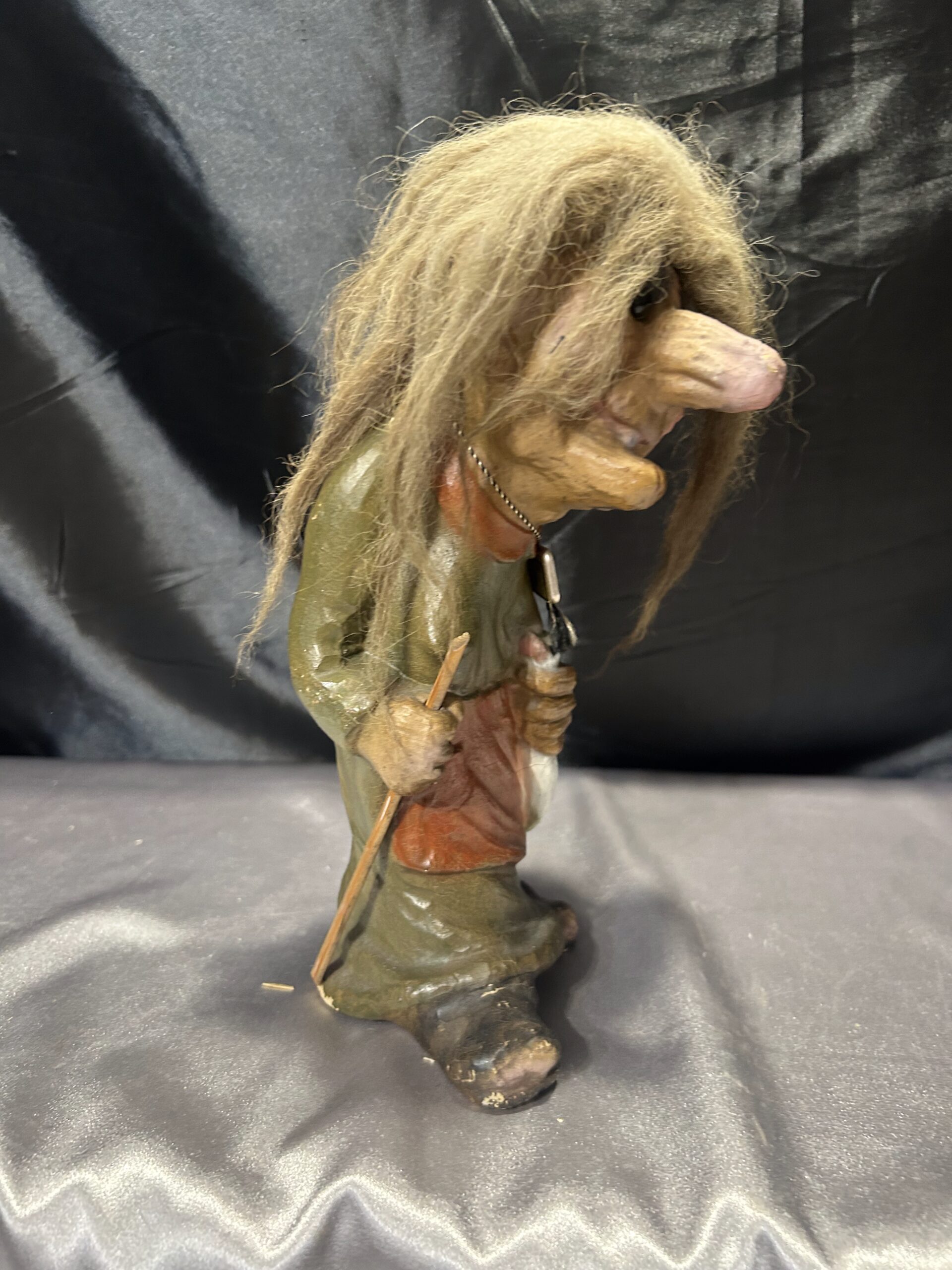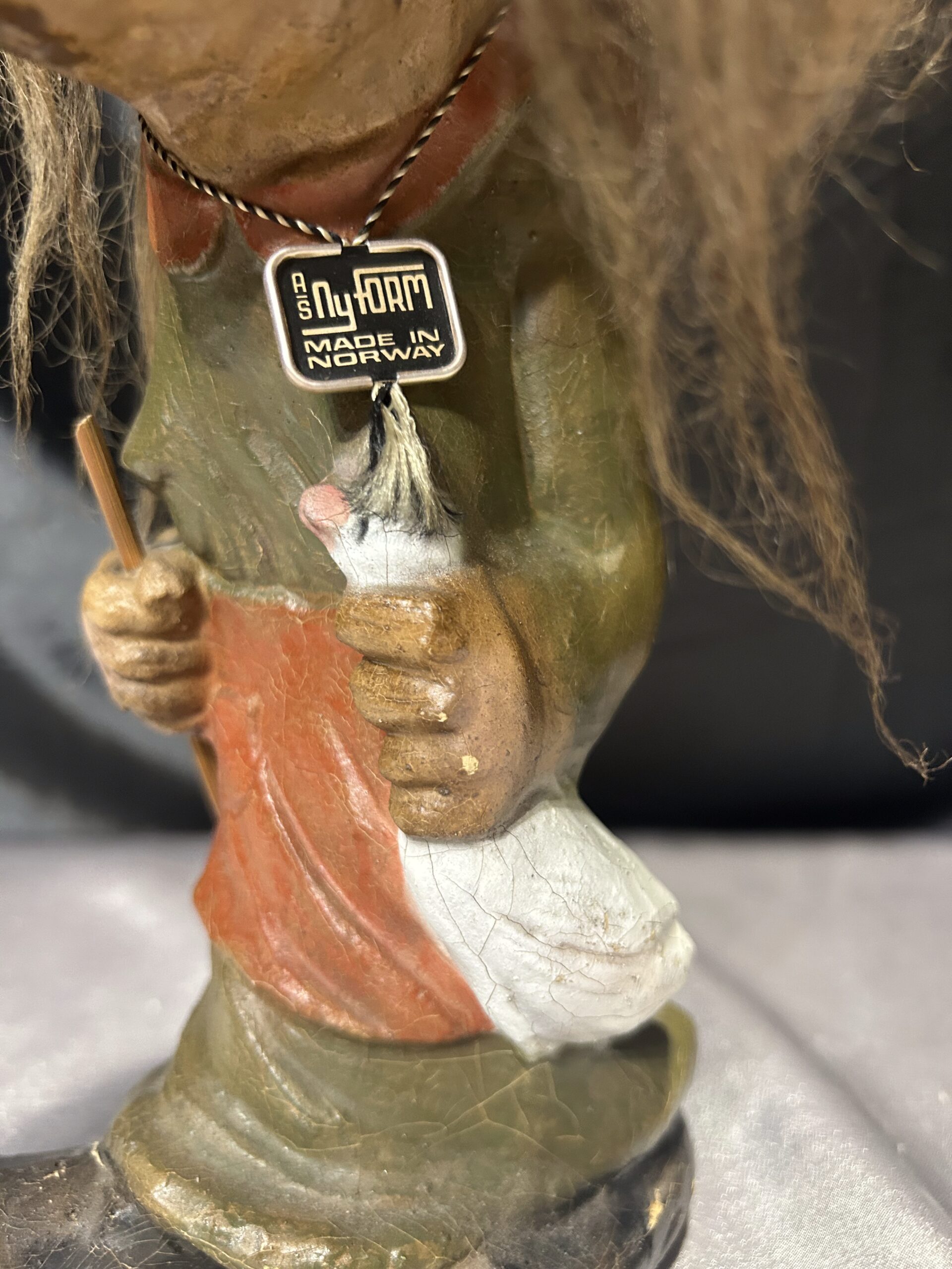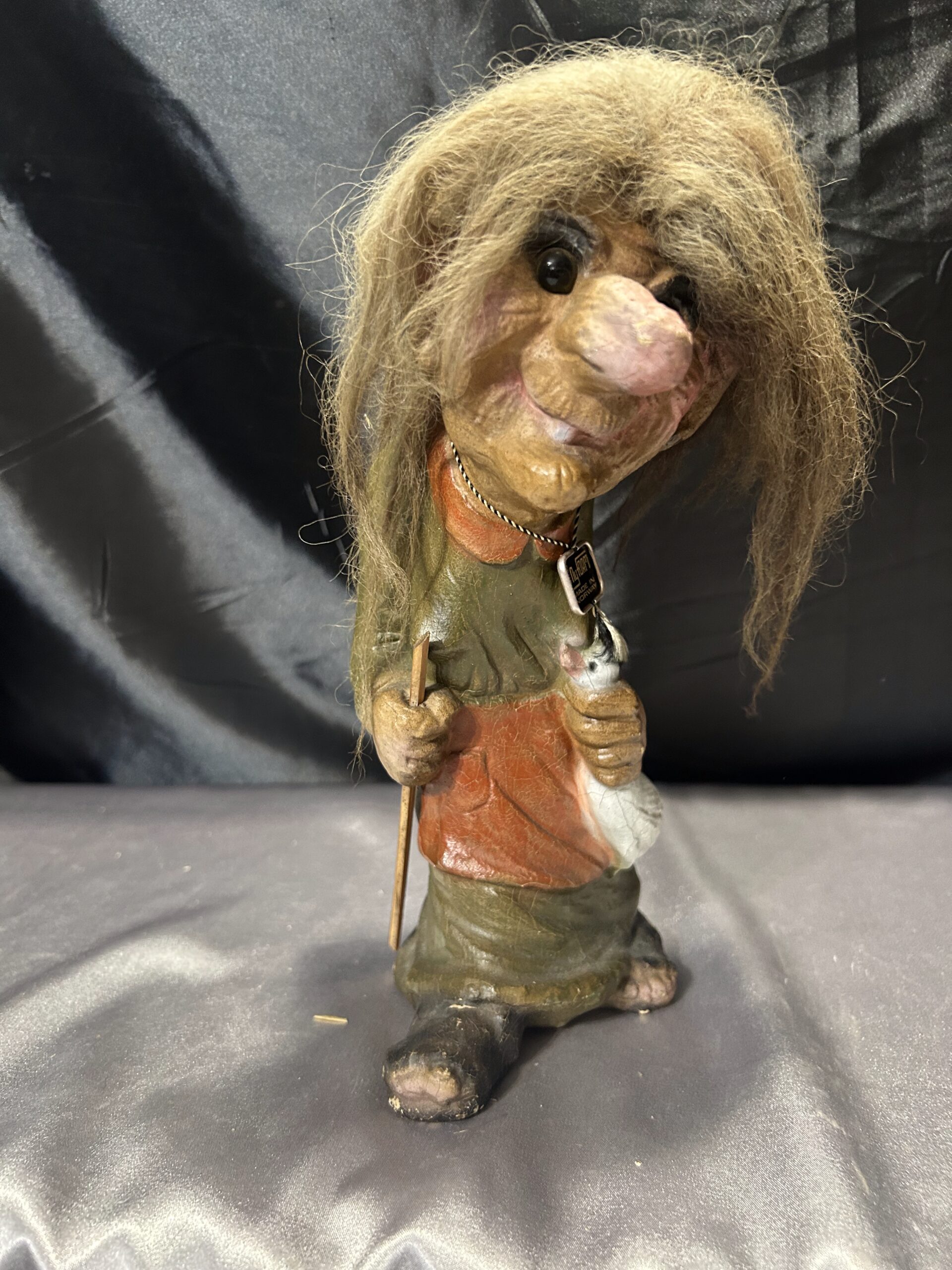 Troll kobieta z kijem i kaczuszką – norweska figurka, autentyczna pamiątka