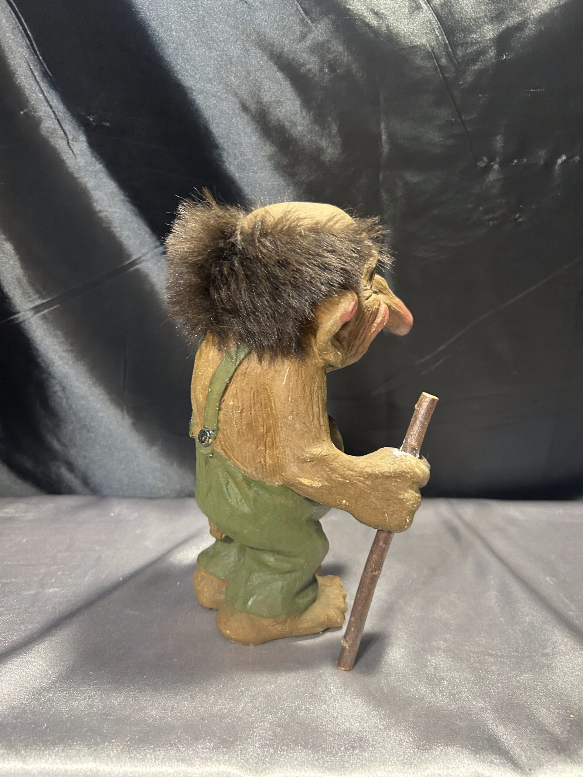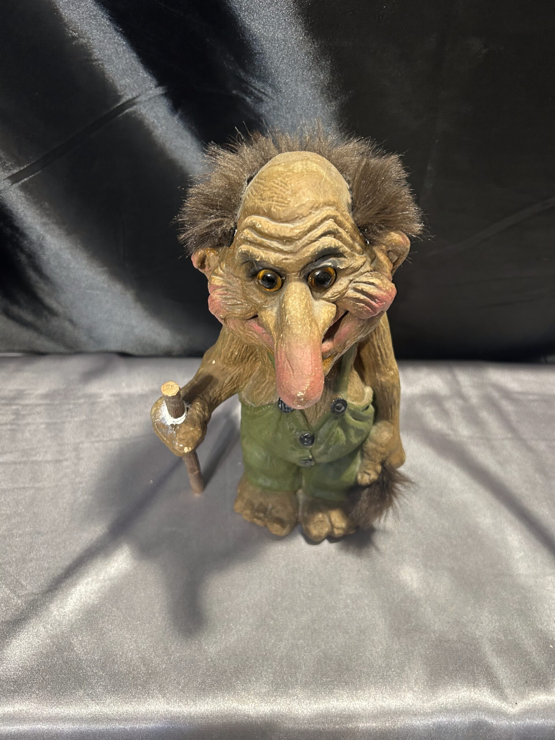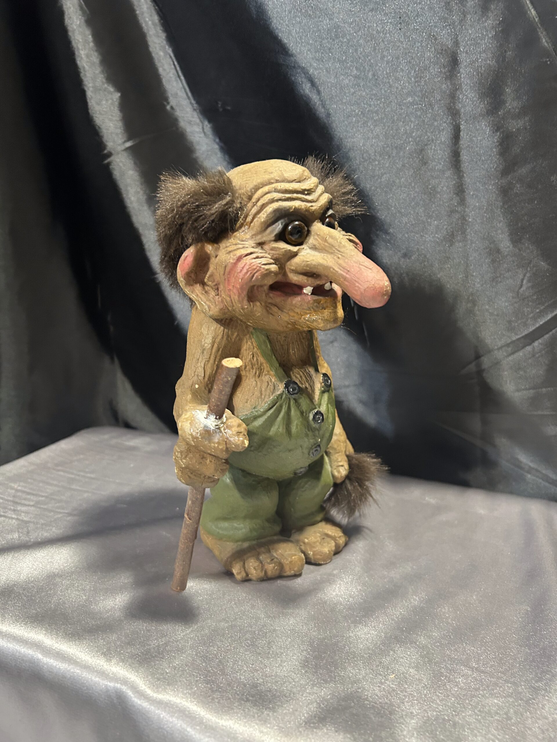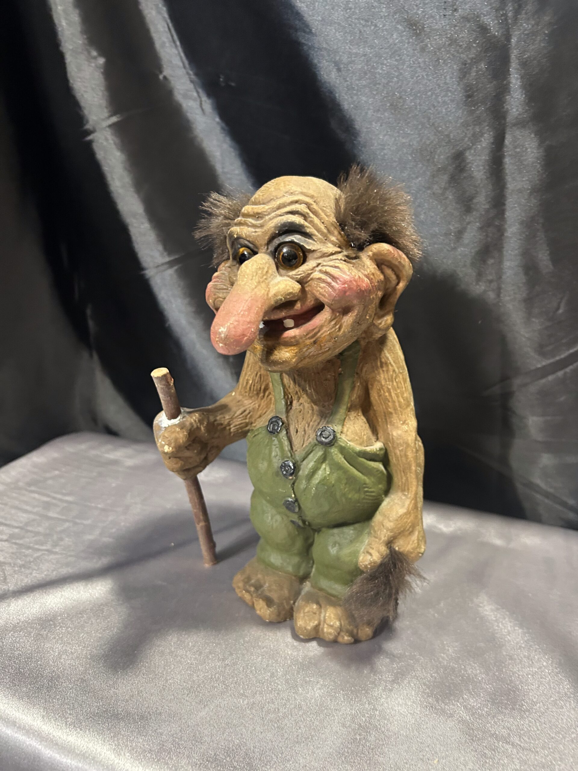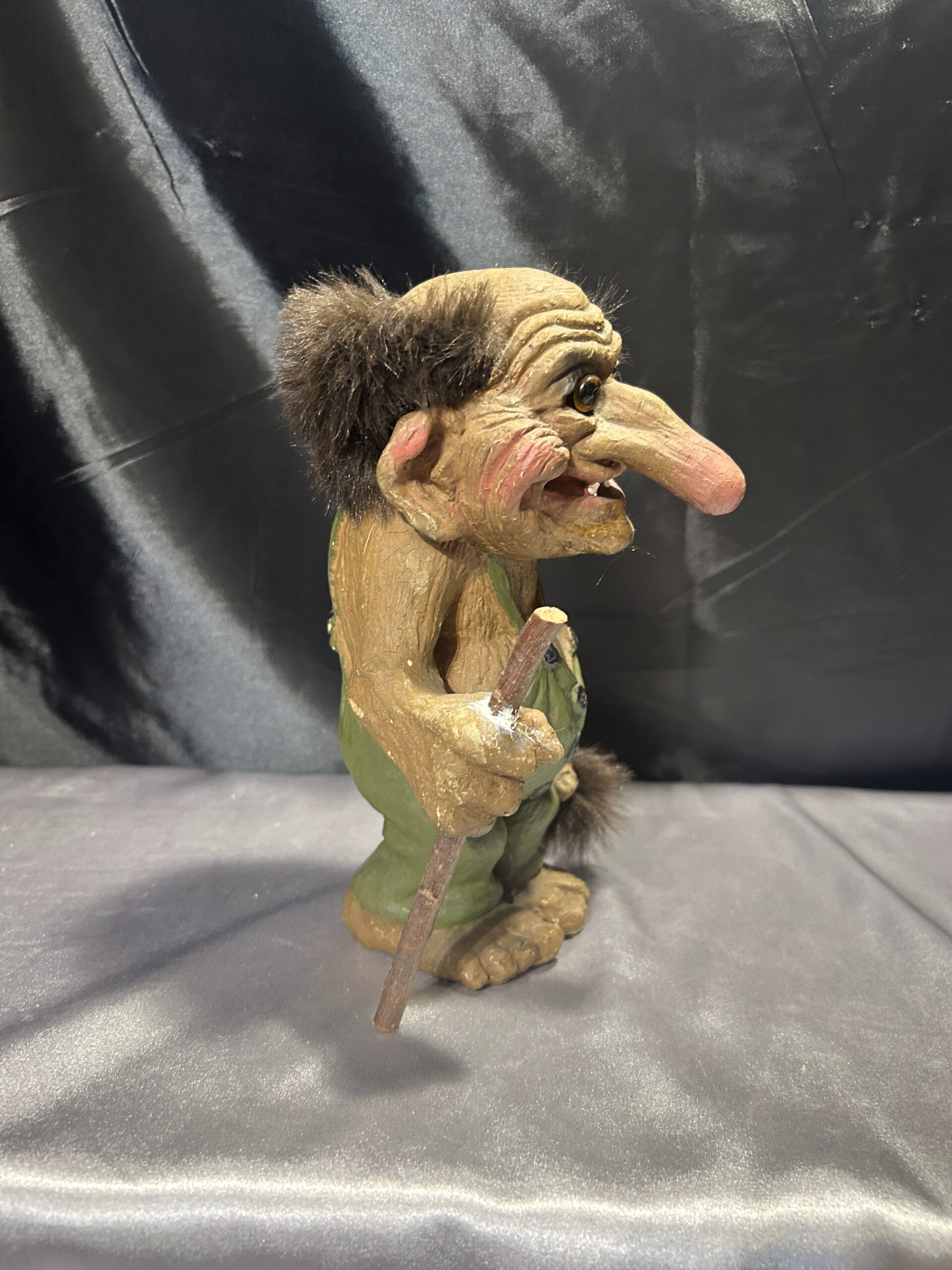 Przedstawiam unikalną figurkę norweskiego trolla, przywiezioną prosto z Norwegii, będącą autentyczną pamiątką inspirowaną skandynawskim folklorem. Figurka przedstawia starego trolla z widocznymi zmarszczkami, ubranego w zielony kubraczek, trzymającego kij do podpierania się. Dzięki realistycznym detalom oraz wyjątkowej formie, troll oddaje mistyczny klimat legend północy.