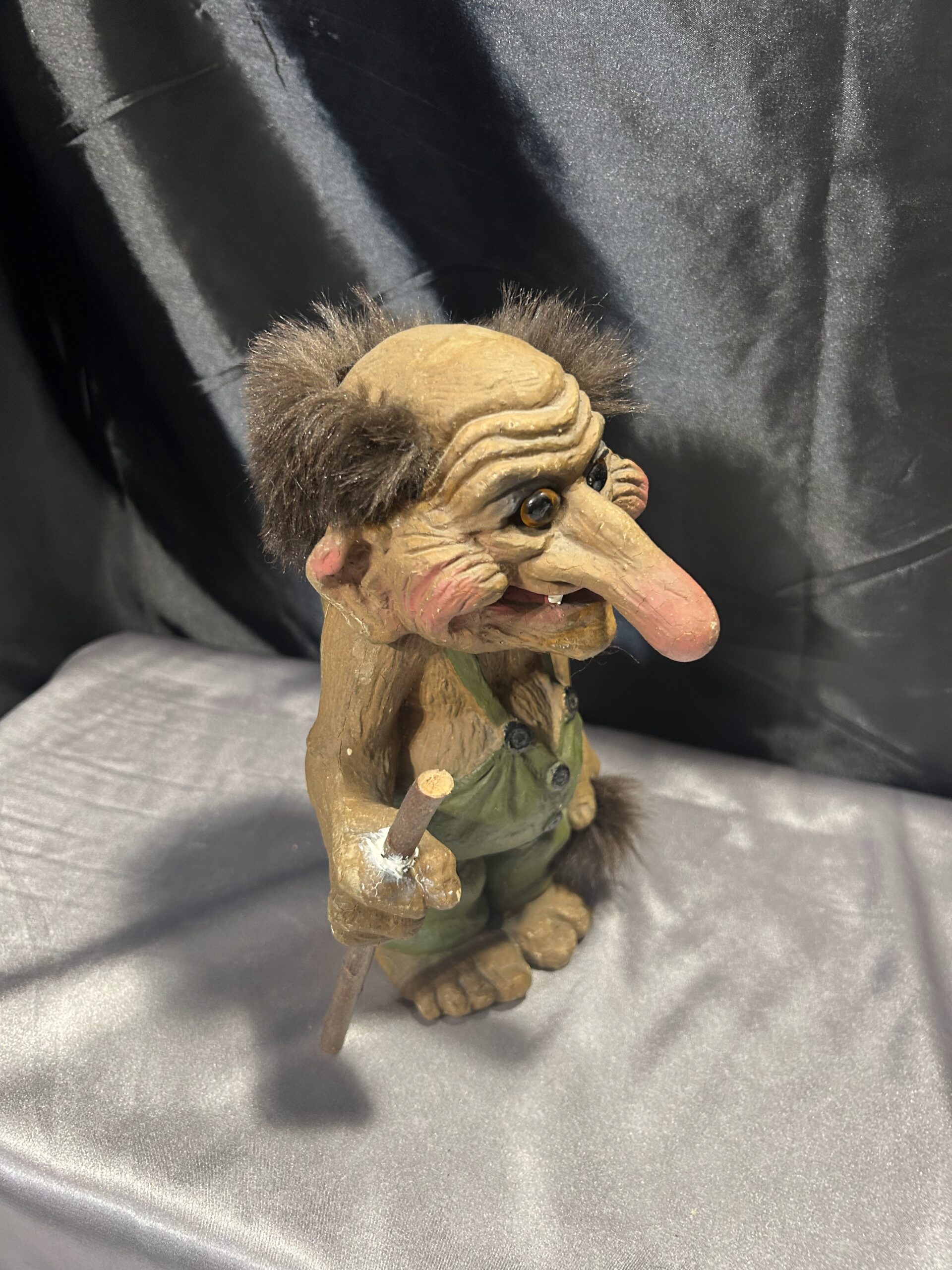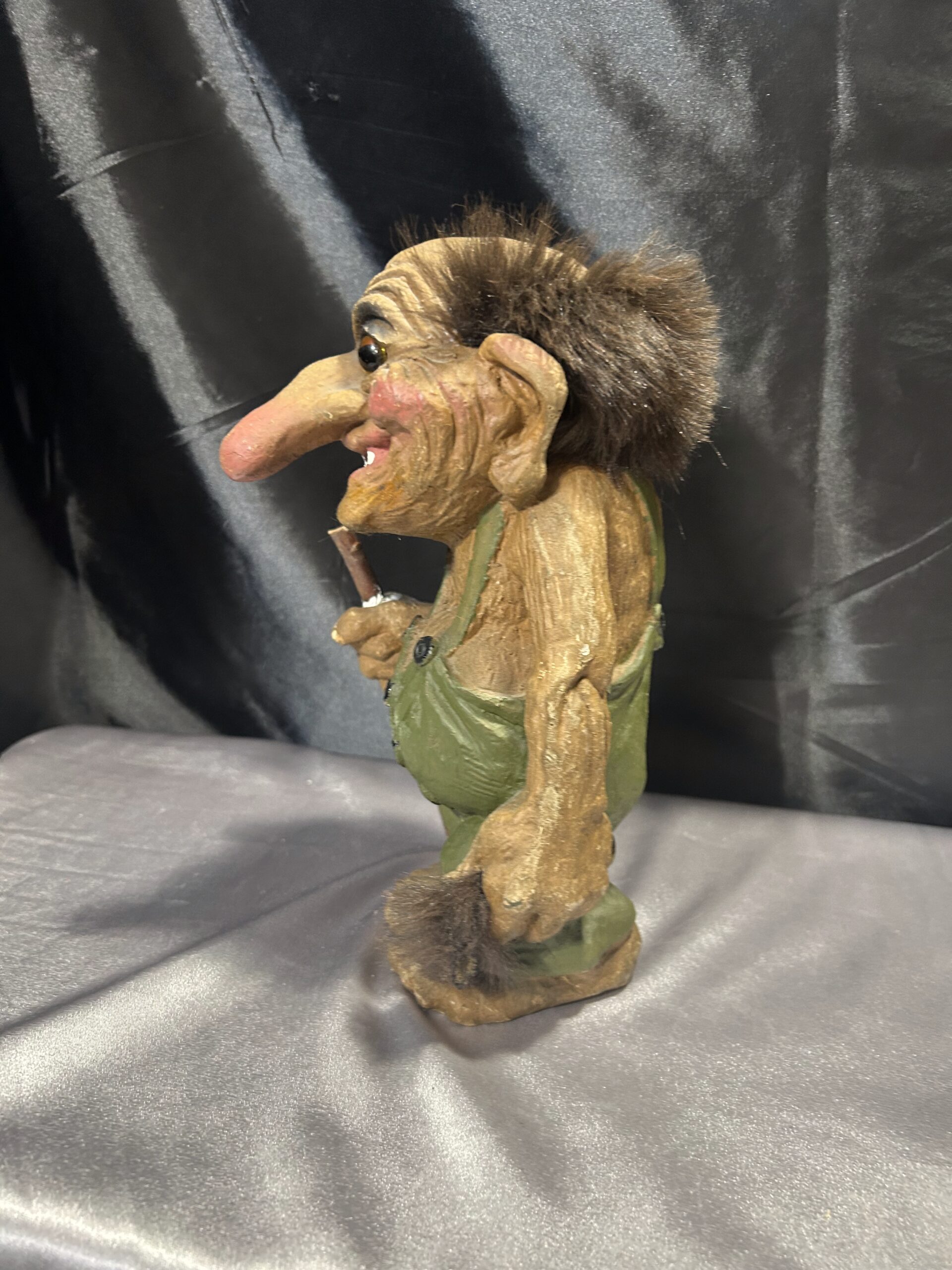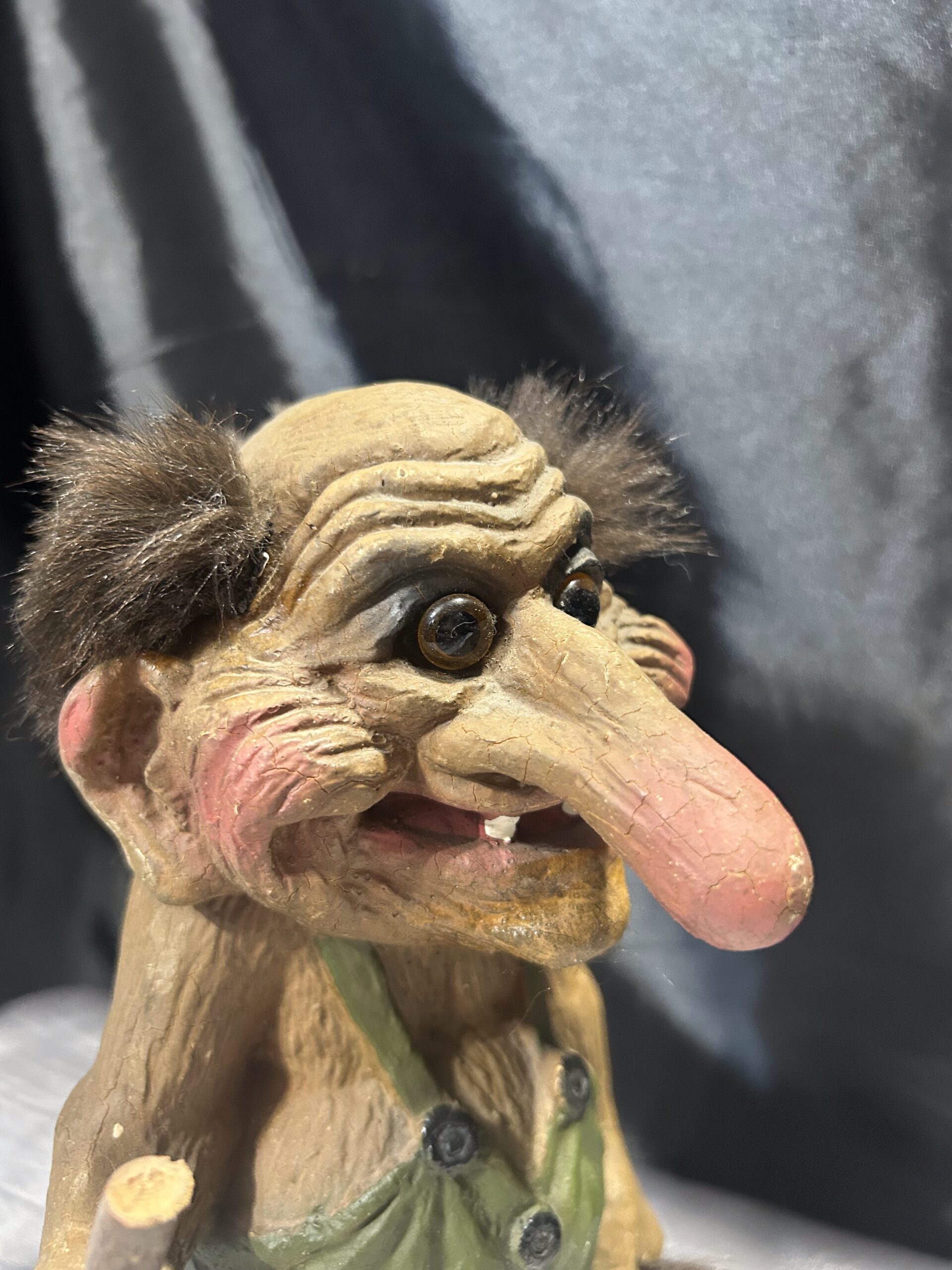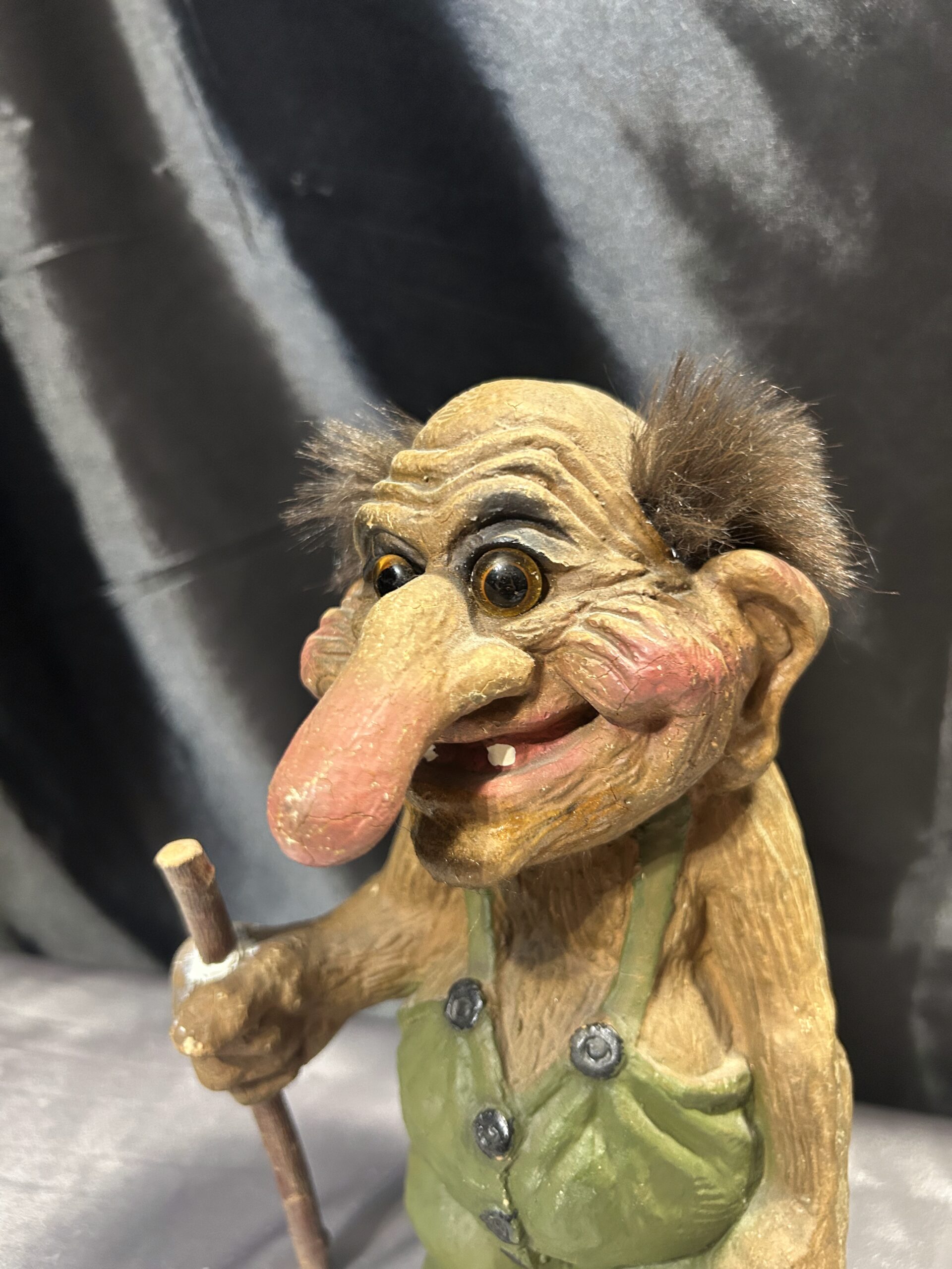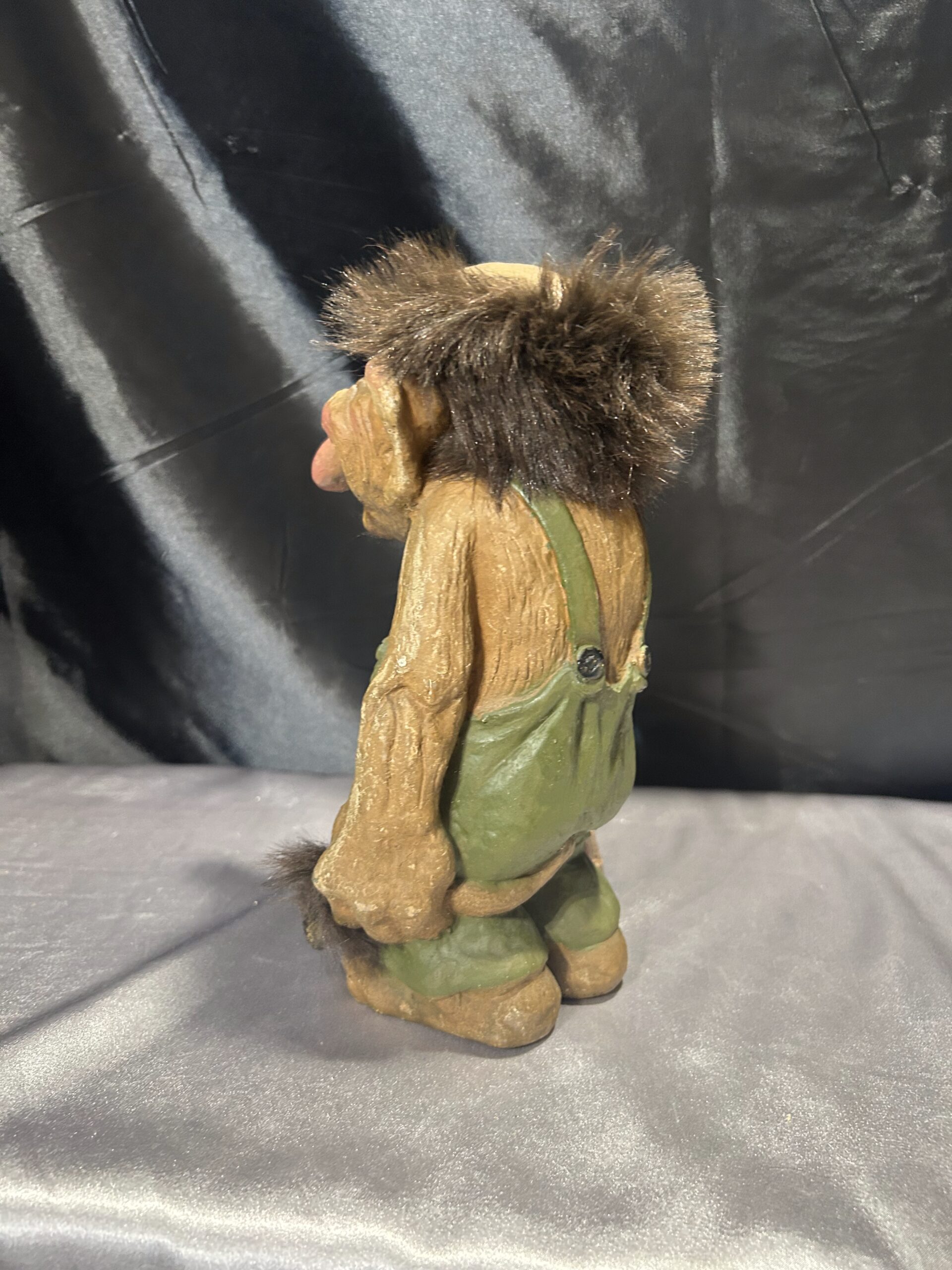 Przedstawiam unikalną figurkę norweskiego trolla, przywiezioną prosto z Norwegii, będącą autentyczną pamiątką inspirowaną skandynawskim folklorem. Figurka przedstawia starego trolla z widocznymi zmarszczkami, ubranego w zielony kubraczek, trzymającego kij do podpierania się. Dzięki realistycznym detalom oraz wyjątkowej formie, troll oddaje mistyczny klimat legend północy.