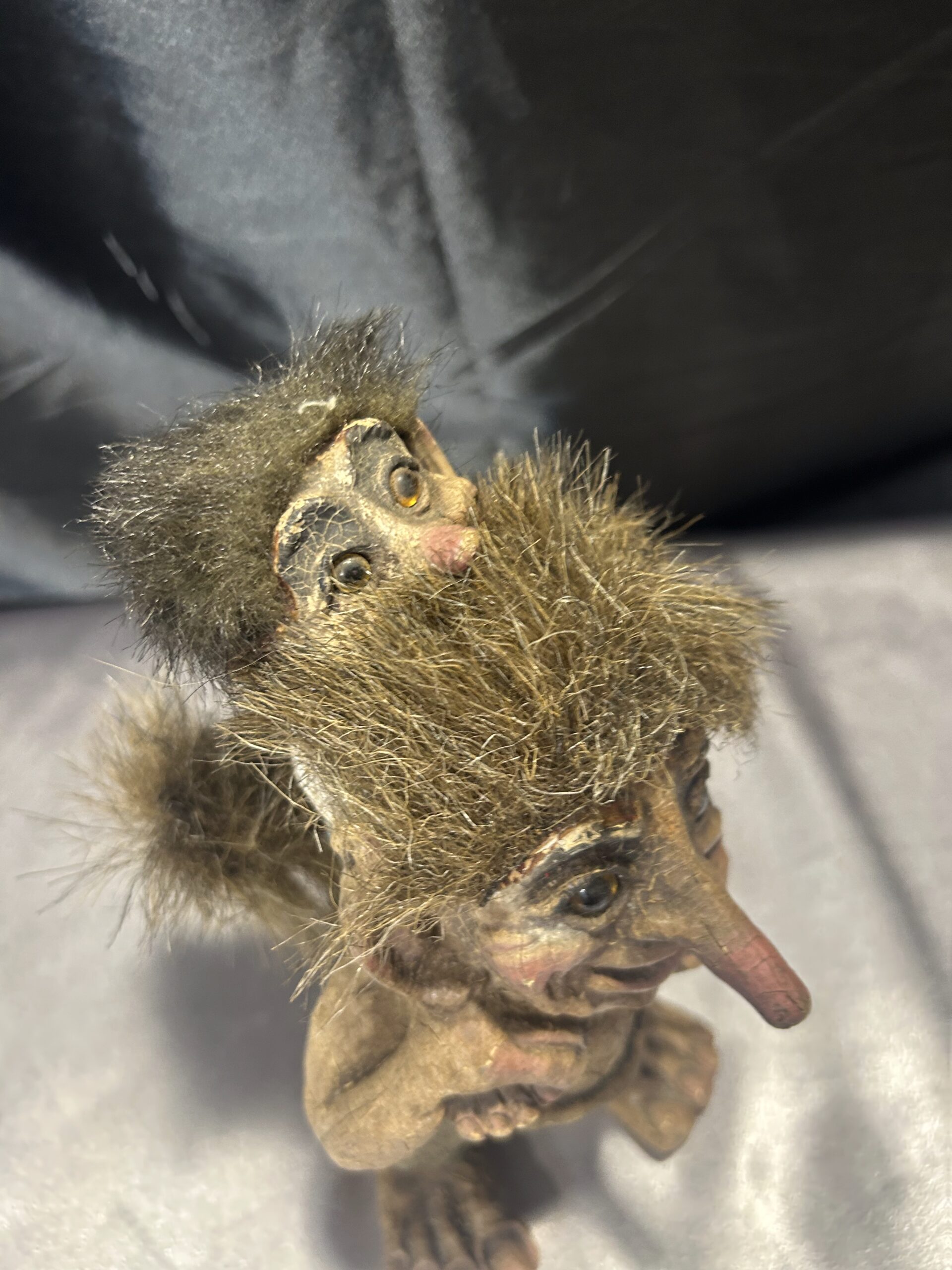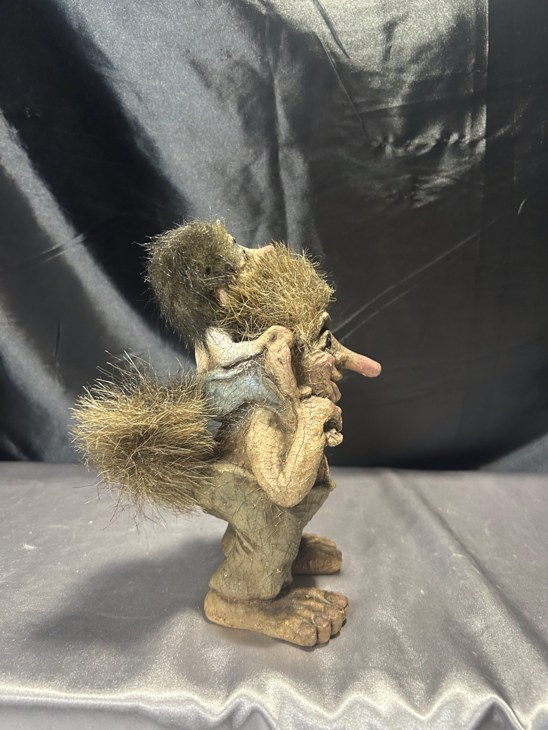 Troll z małym dzieckiem na barana – norweska figurka, autentyczna pamiątka z Norwegii