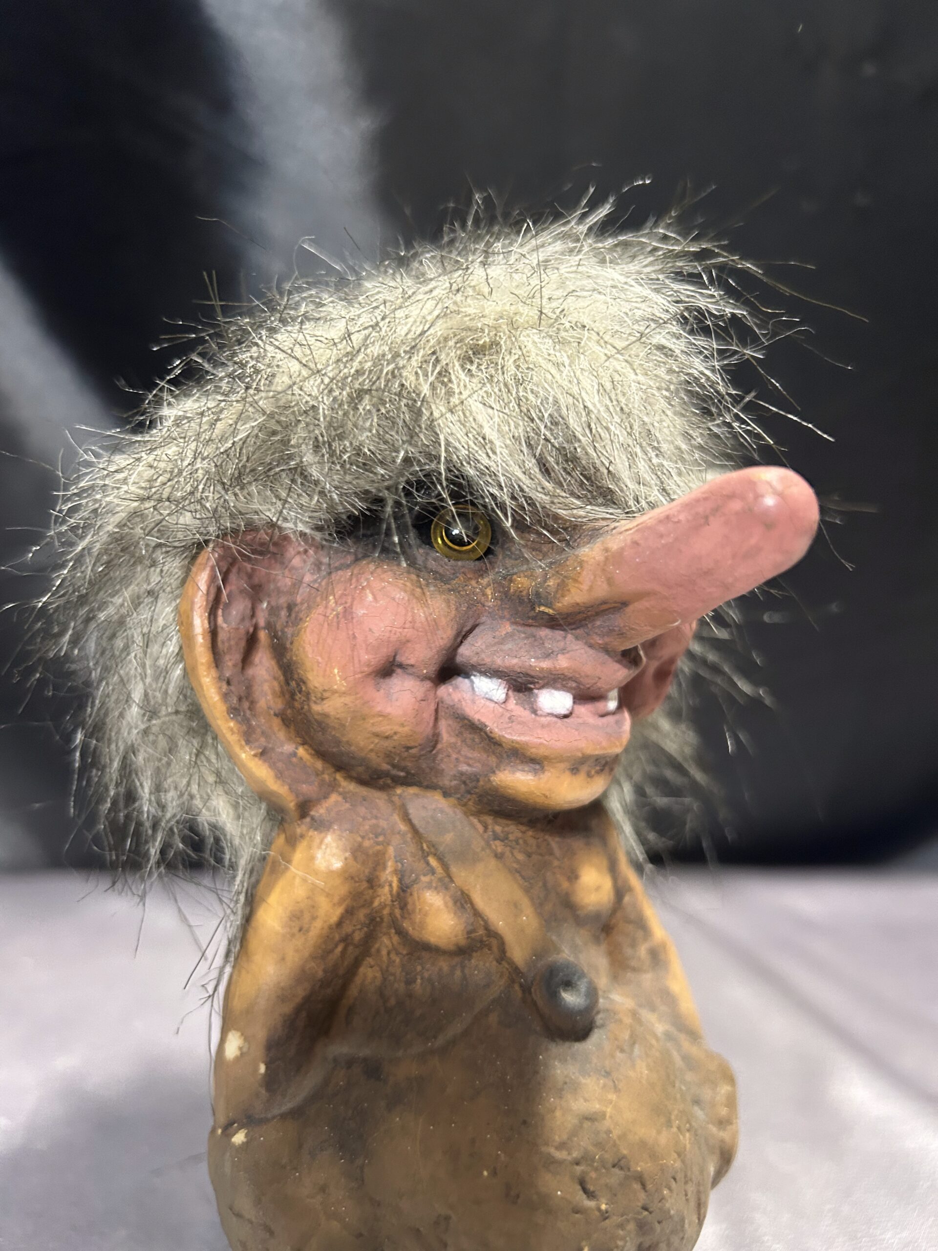 - Troll z długim nosem i rozwichrzonymi włosami, klasyczny wygląd rodem z nordyckich baśni