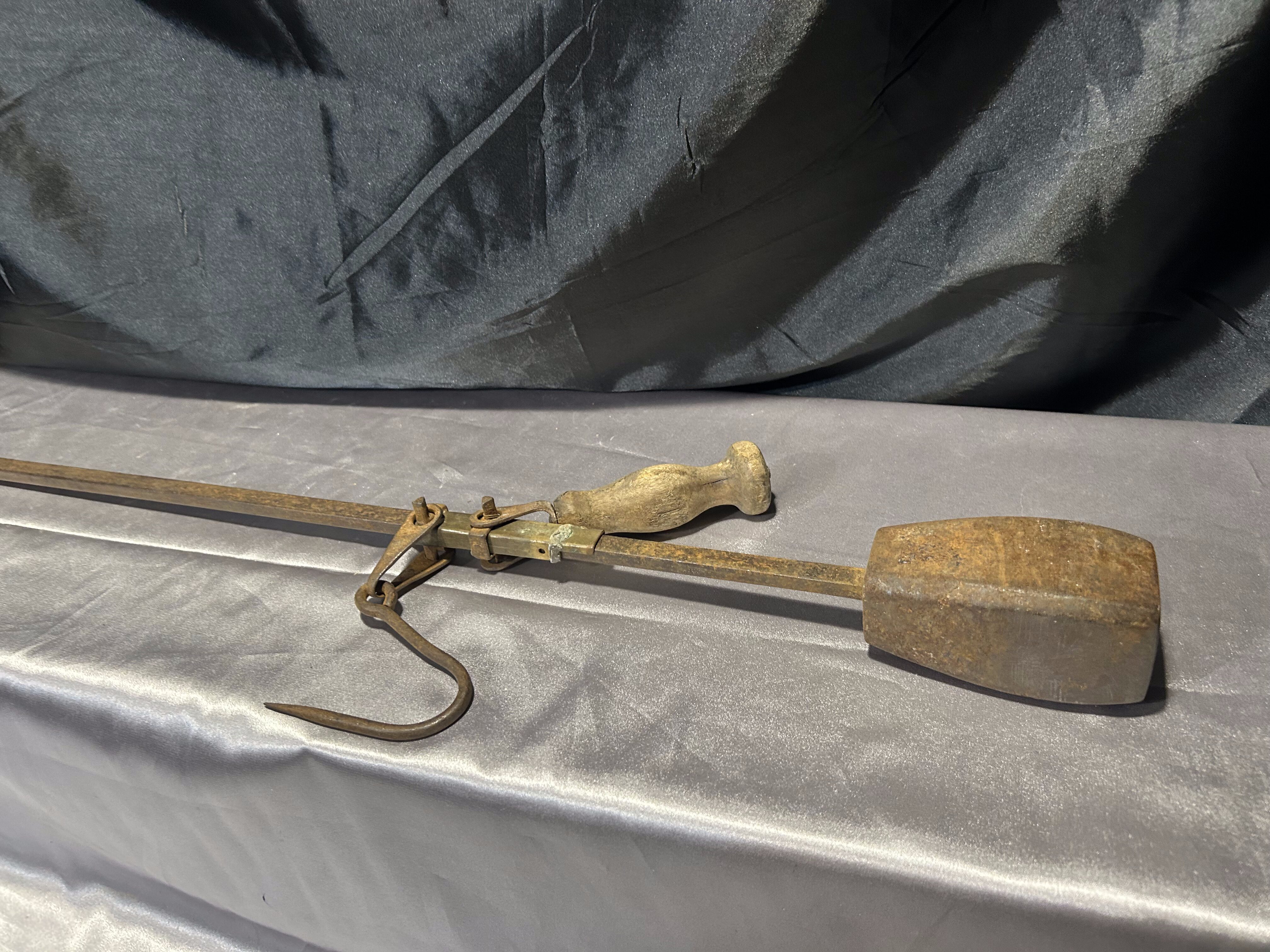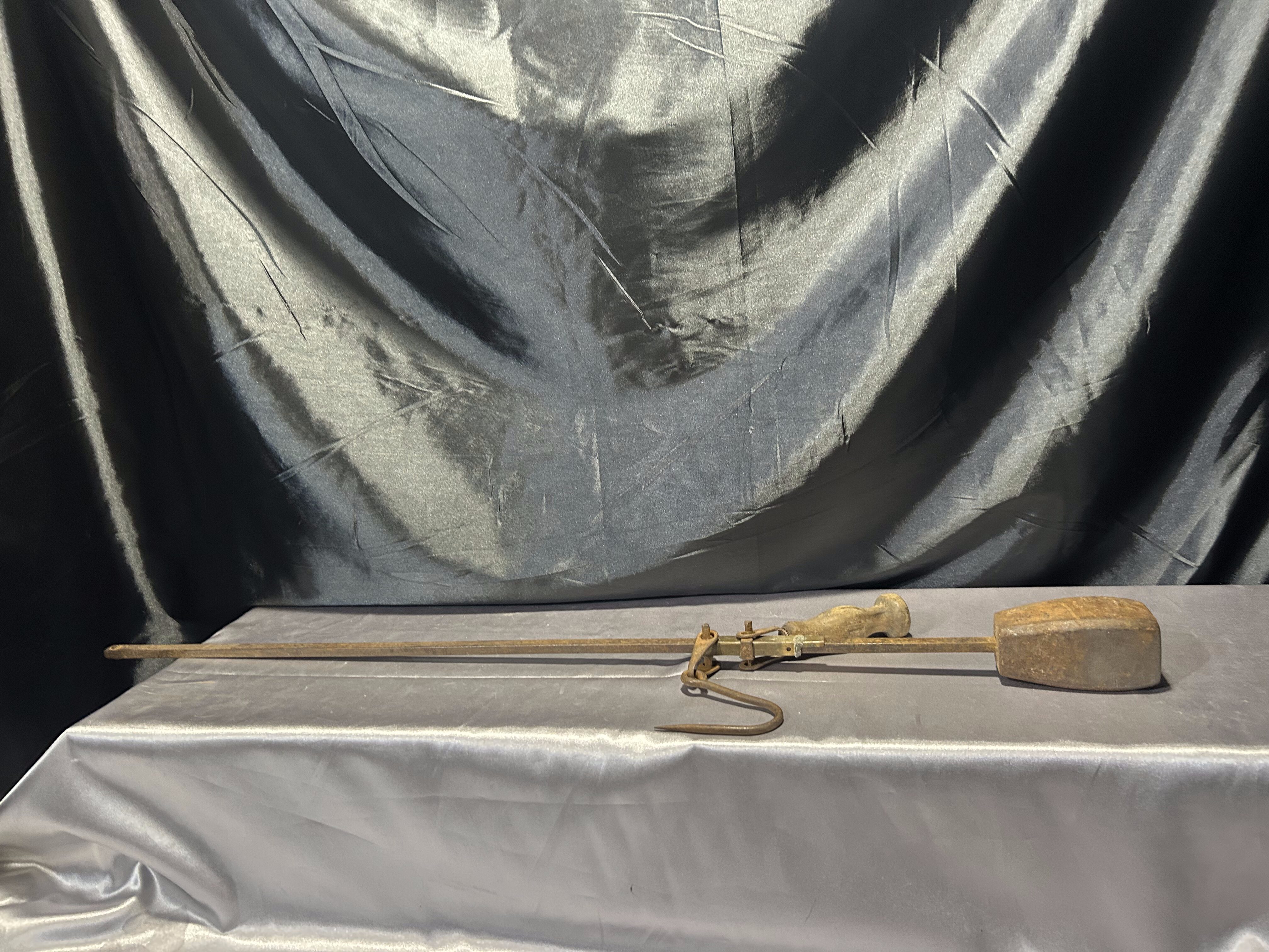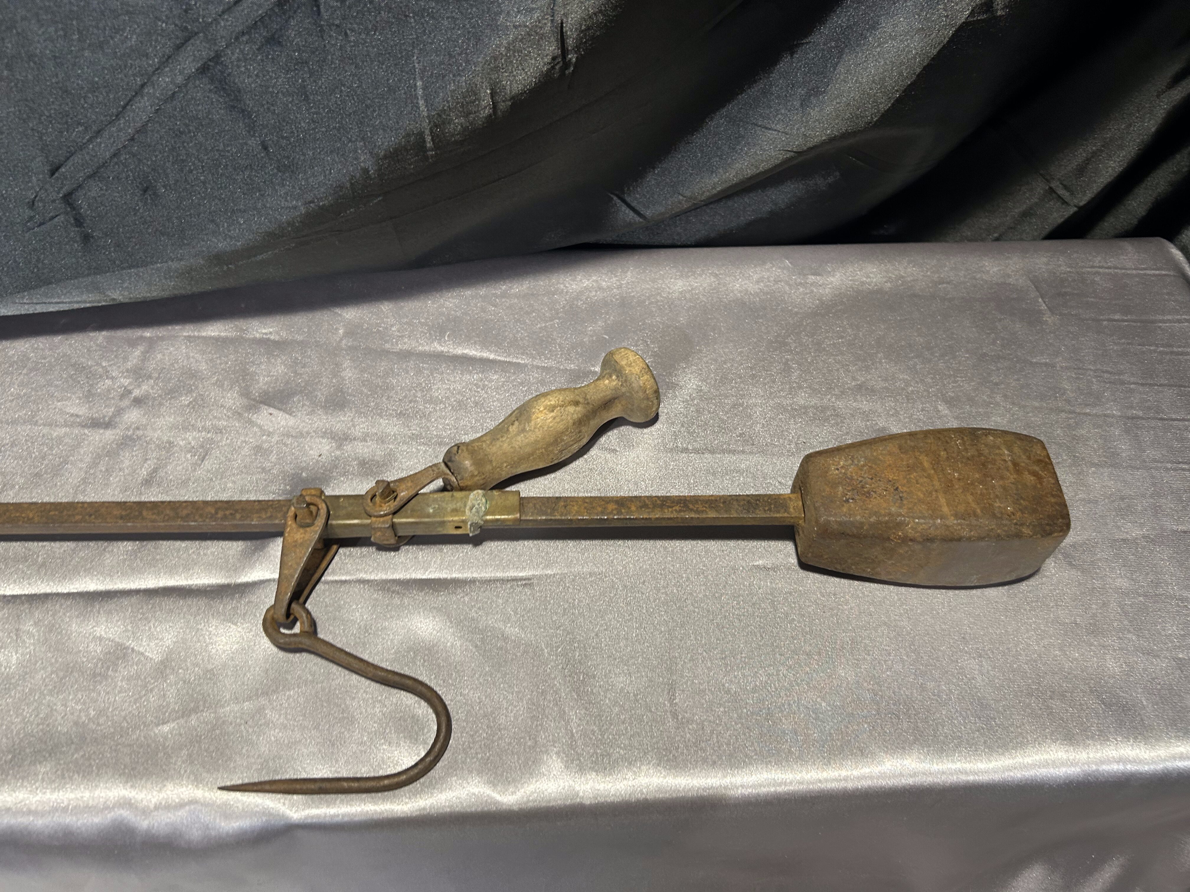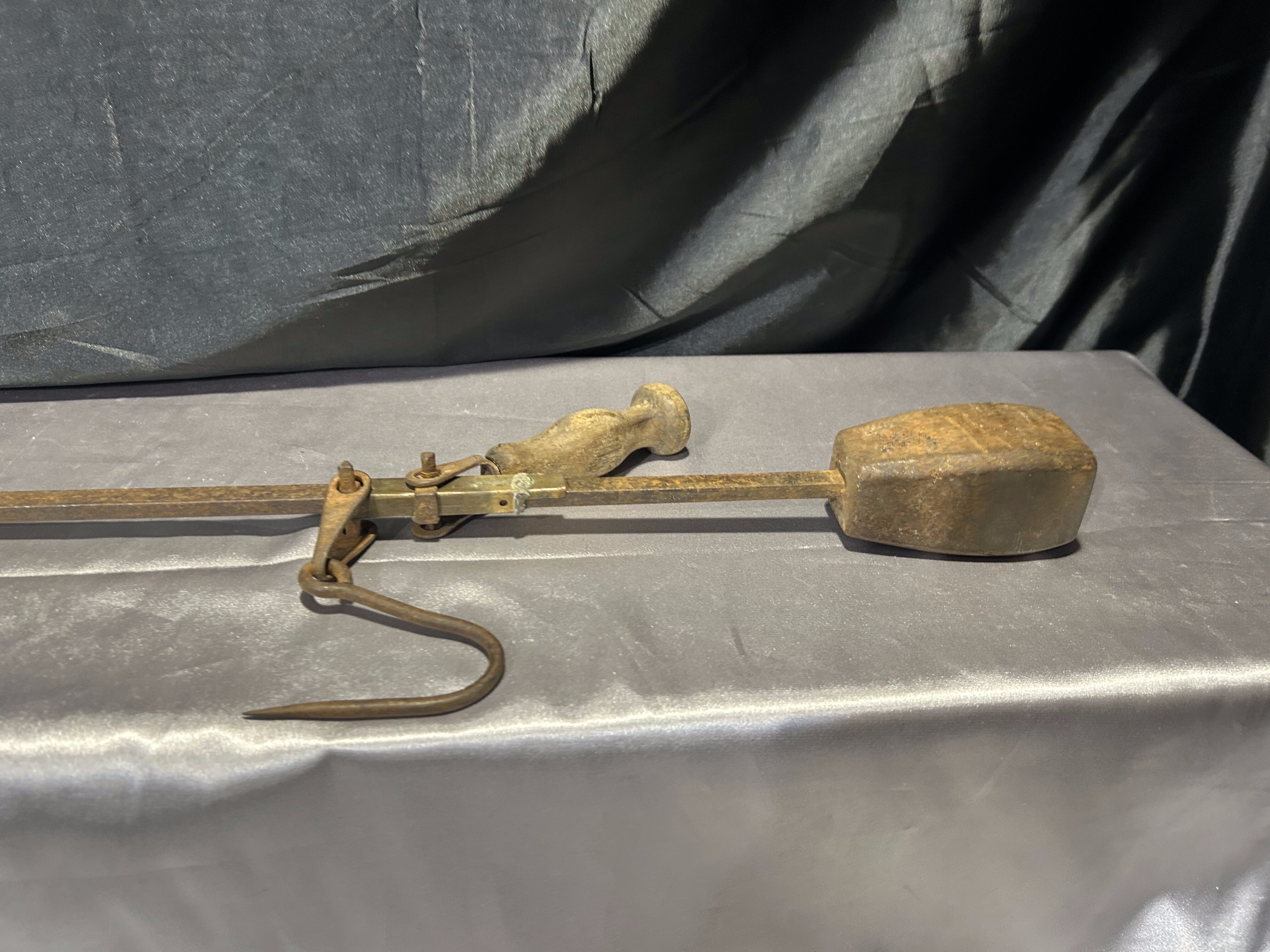 Na sprzedaż unikalna waga bezmianowa wykonana z żelaza, z charakterystycznym hakiem i drewnianym uchwytem. To tradycyjne narzędzie pomiarowe, używane dawniej w gospodarstwach rolnych i rzeźniach, dziś stanowi cenną ozdobę o wyjątkowym charakterze.