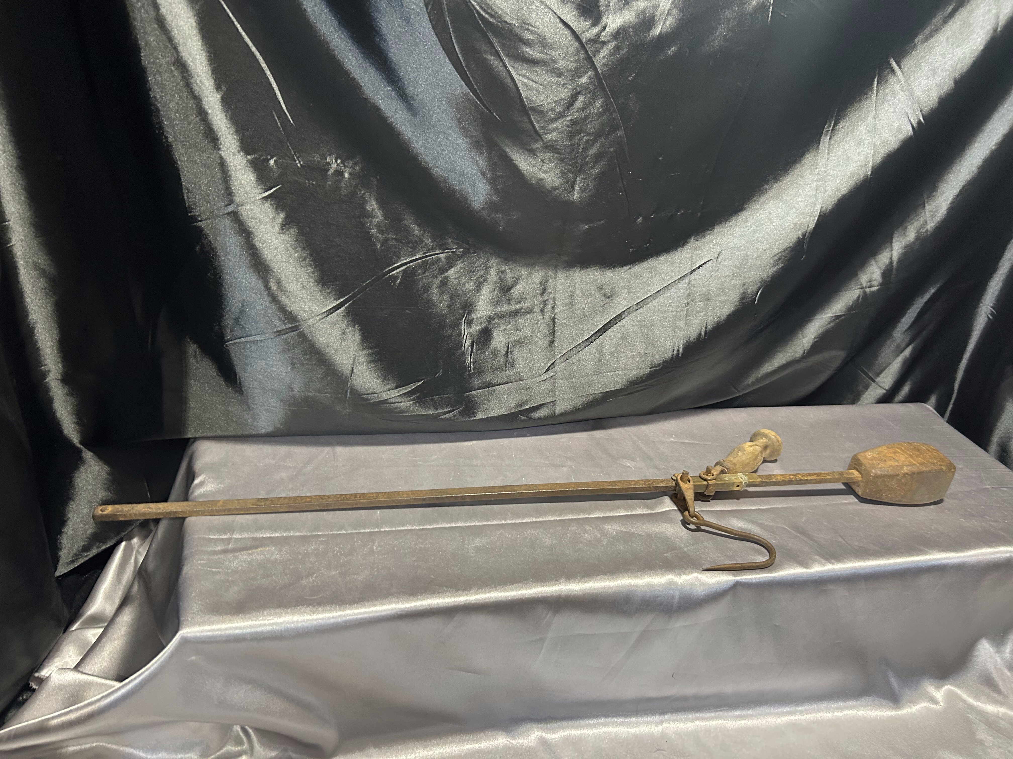 Ta stara waga bezmianowa to fascynujący przykład praktycznego rzemiosła z przeszłości. Wykonana z solidnego żelaza, z piękną, naturalną patyną i klasycznym hakiem, zachwyca swoją autentycznością. Świetnie sprawdzi się jako dekoracyjny akcent w przestrzeni stylizowanej na dawną kuźnię, stodołę lub kuchnię w klimacie retro.