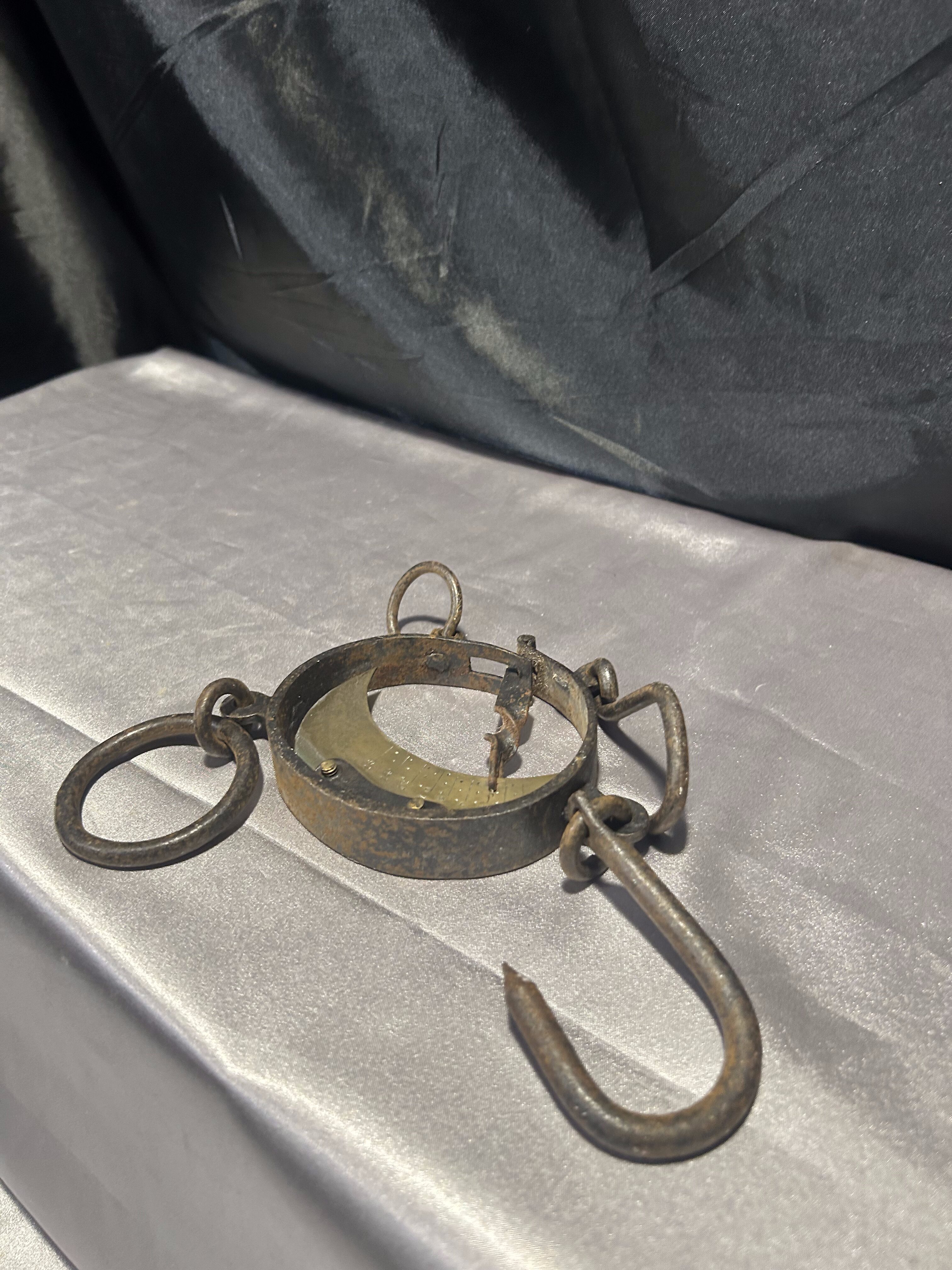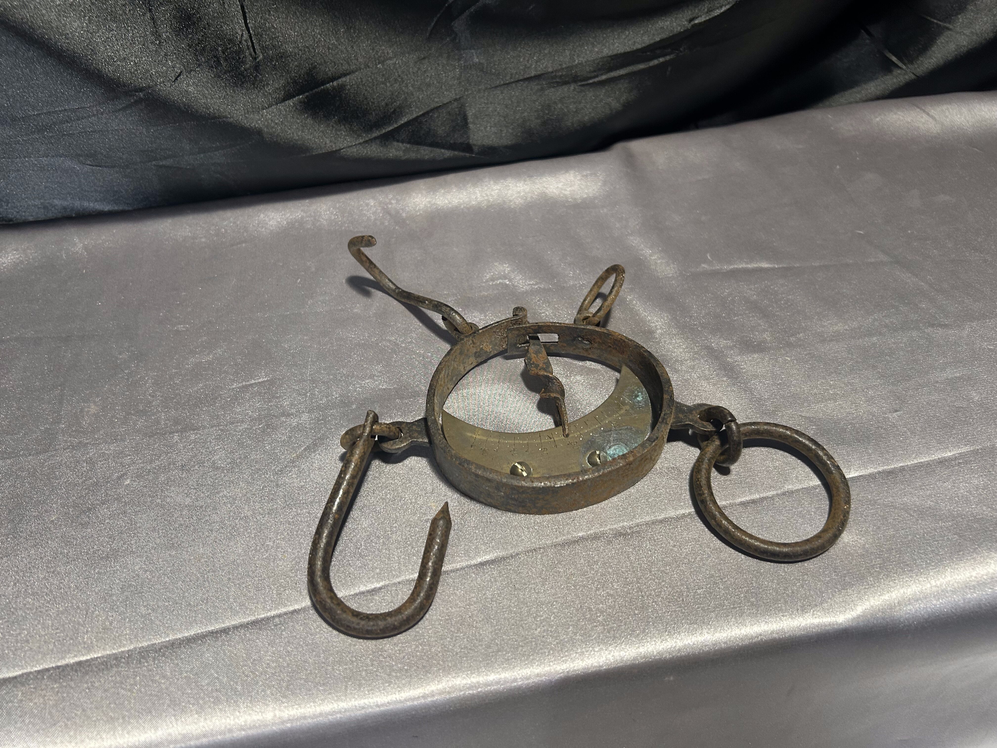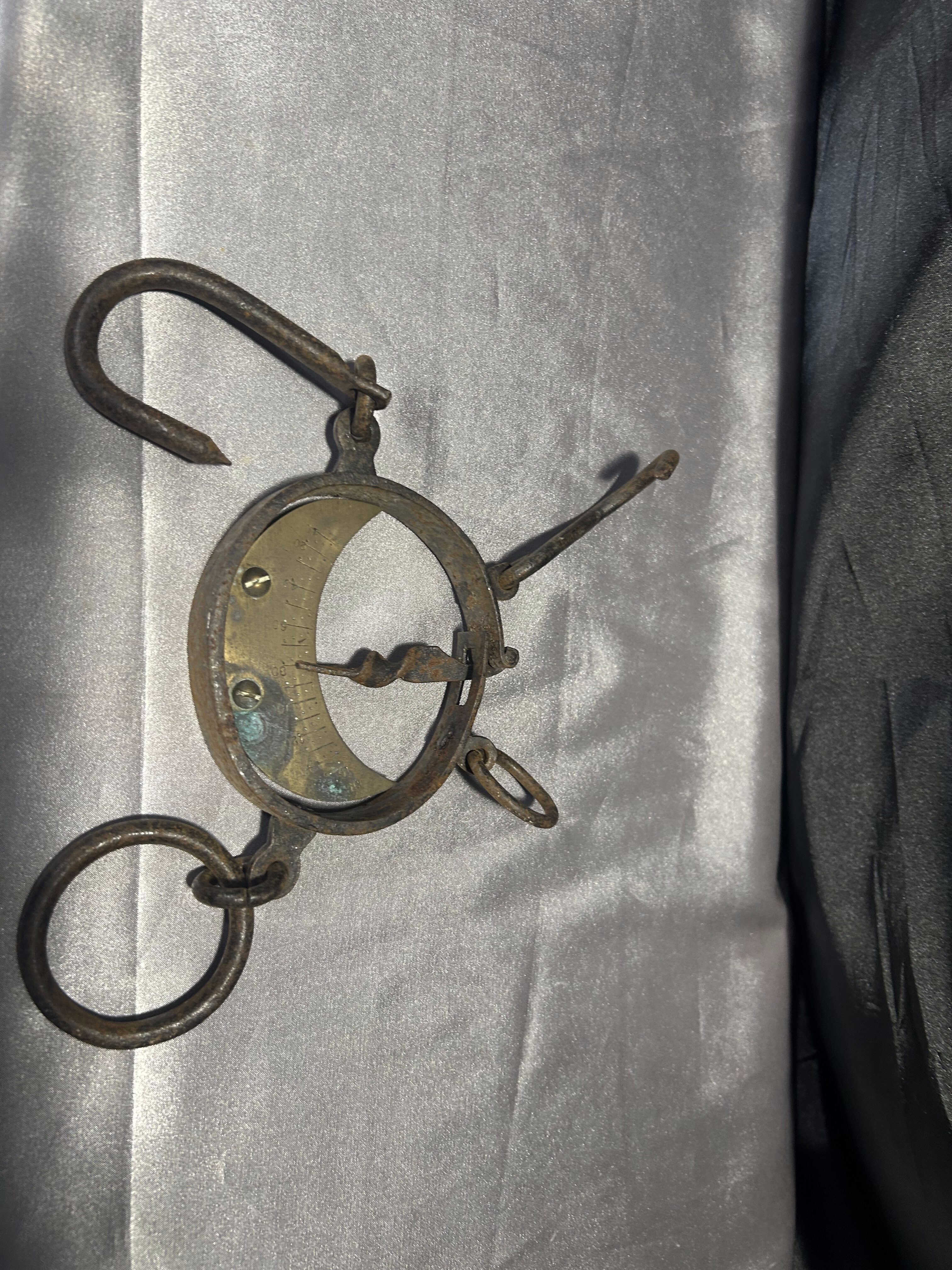 Waga hakowa – zabytkowa waga ręczna – stalowa z mosiężnym cyferblatem