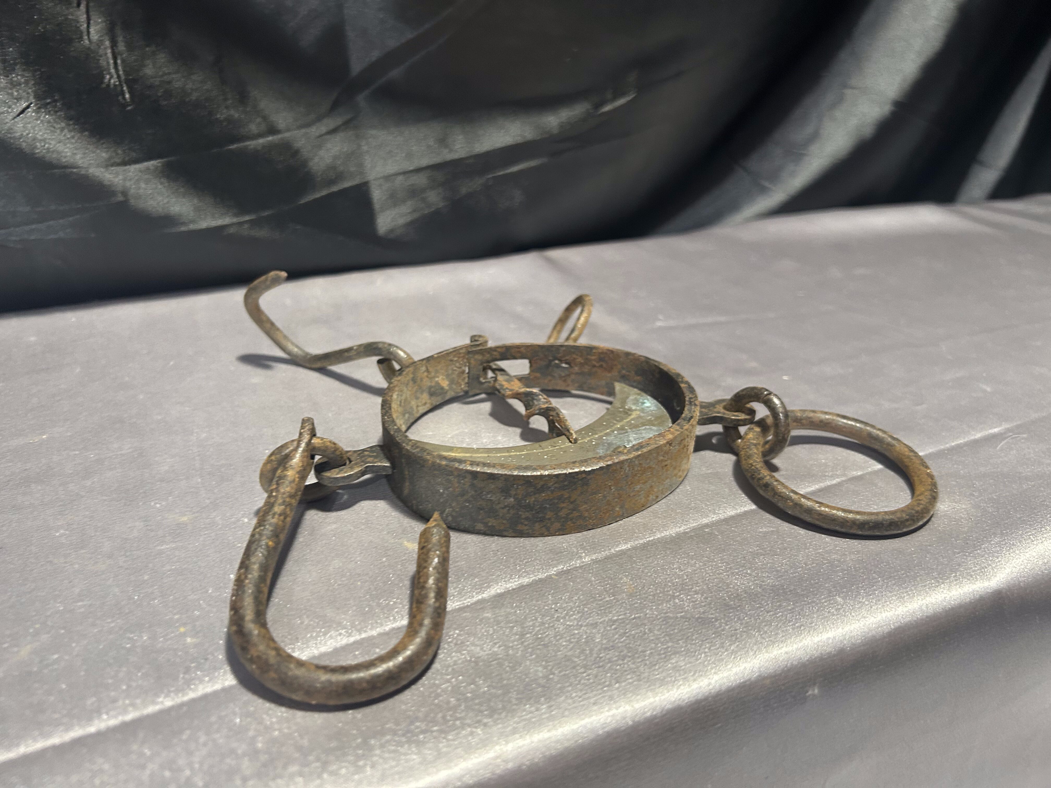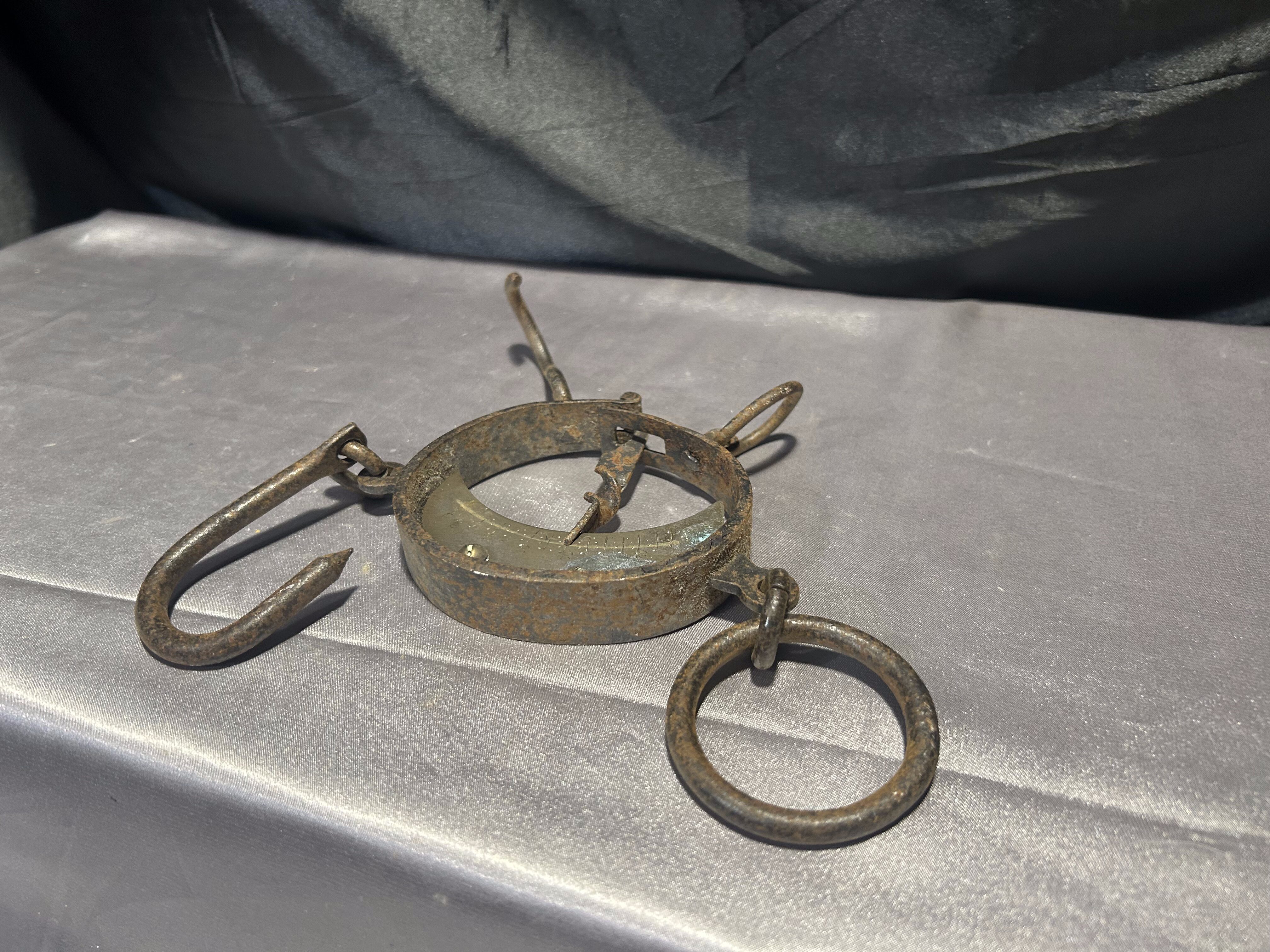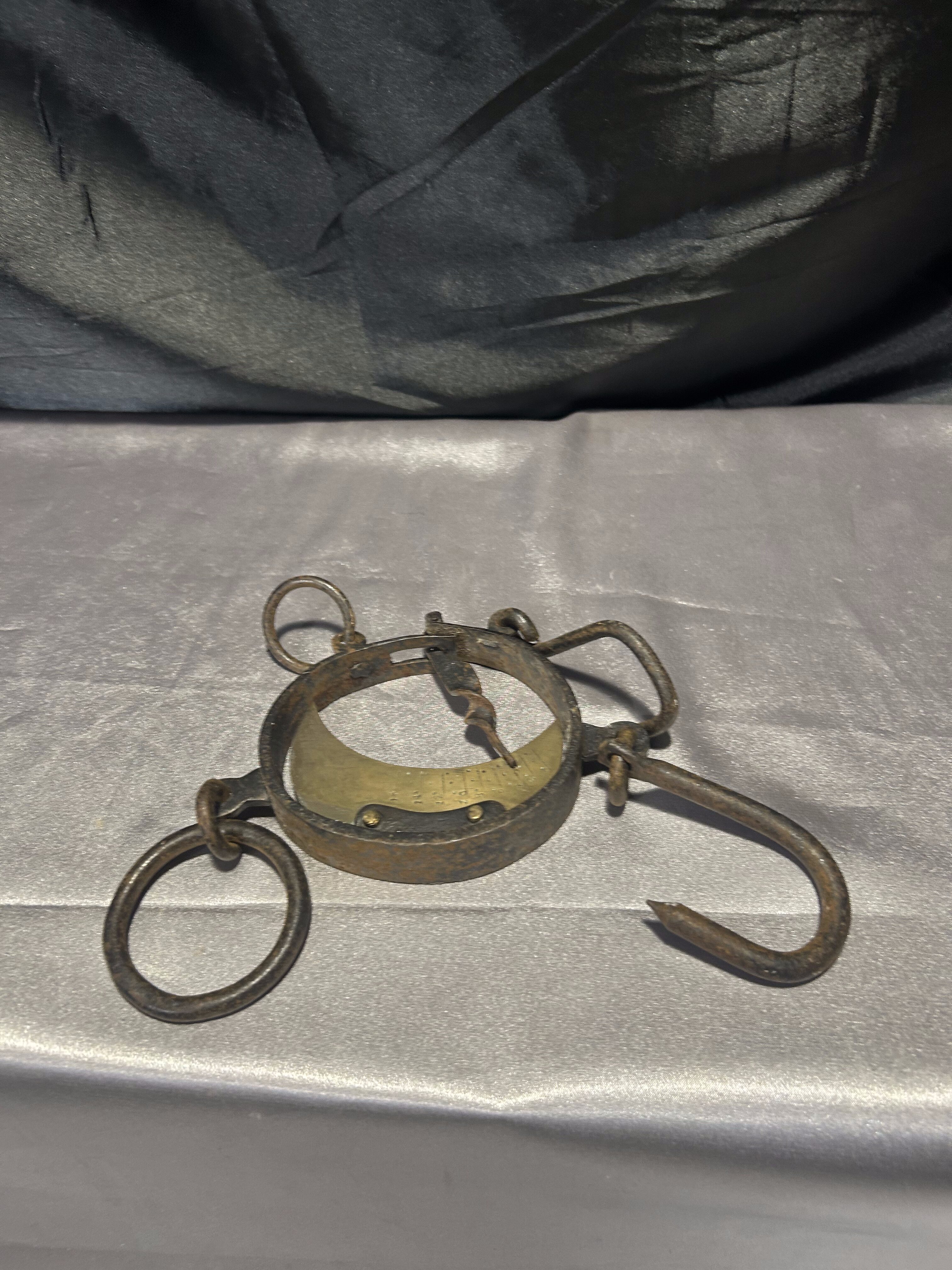 Unikatowa, stara waga hakowa z żeliwa i stali z mosiężnym cyferblatem, używana niegdyś do ważenia mięsa, worków czy ryb. Prosty, solidny mechanizm sprężynowy i klasyczny design z widocznymi śladami użytkowania nadają jej niepowtarzalnego uroku. Idealna jako dekoracja do wnętrz w stylu rustykalnym, industrialnym czy vintage, a także do kolekcji dawnych narzędzi rzemieślniczych.