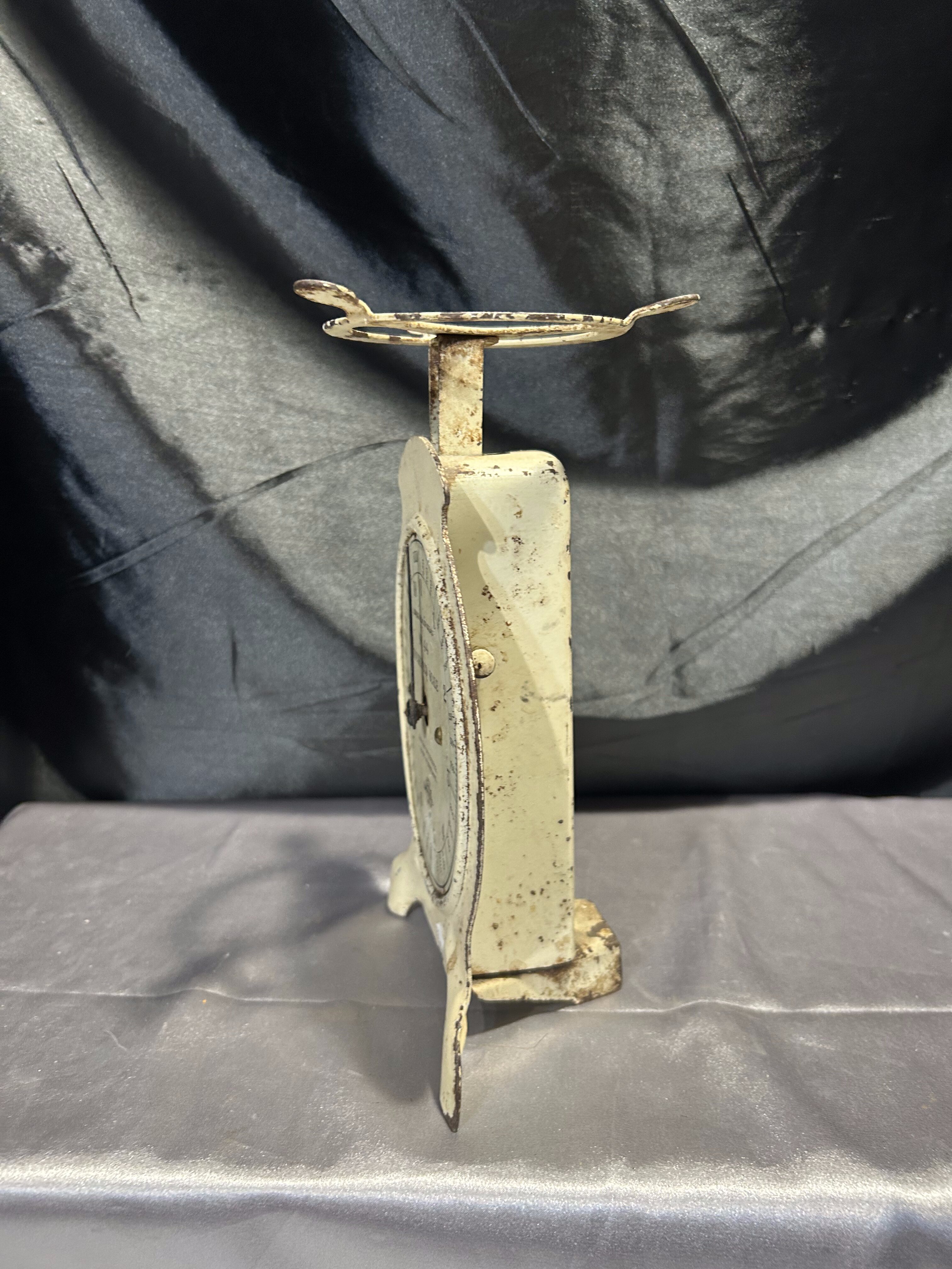 Ta waga HOUSEHOLD SCALE to nie tylko przyrząd kuchenny, ale przede wszystkim klimatyczna pamiątka minionych dekad. Brak talerzyka nie odbiera jej uroku – wręcz przeciwnie, dodaje autentycznego, industrialnego charakteru. Idealna do dekoracji kuchni, pracowni lub jako uzupełnienie kolekcji dawnych sprzętów.