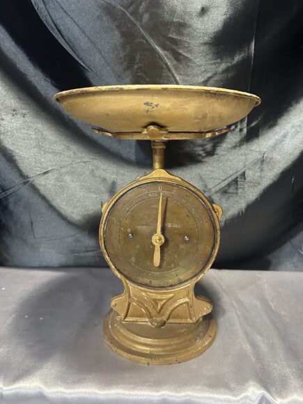 Stara Waga Kuchenna – Złoty Kolor – Skala do 10 kg – Okrągły Talerzyk