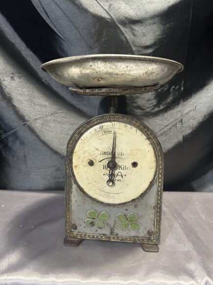 Stara Waga Kuchenna – Z Ręcznie Malowanymi Zielonymi Koniczynkami – Skala do 10 kg