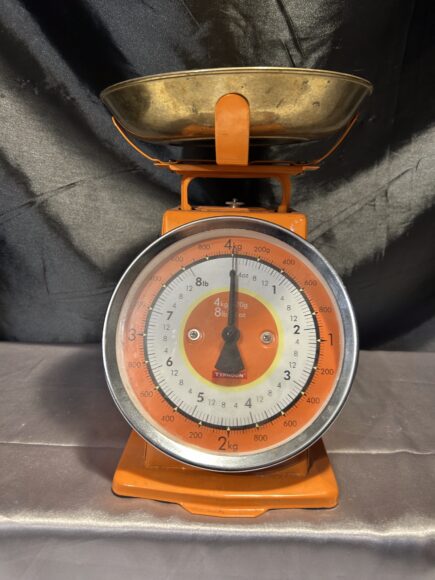 Kuchenna waga TYPHOON – Pomarańczowa obudowa – Mosiężny talerz – Skala do 4 kg