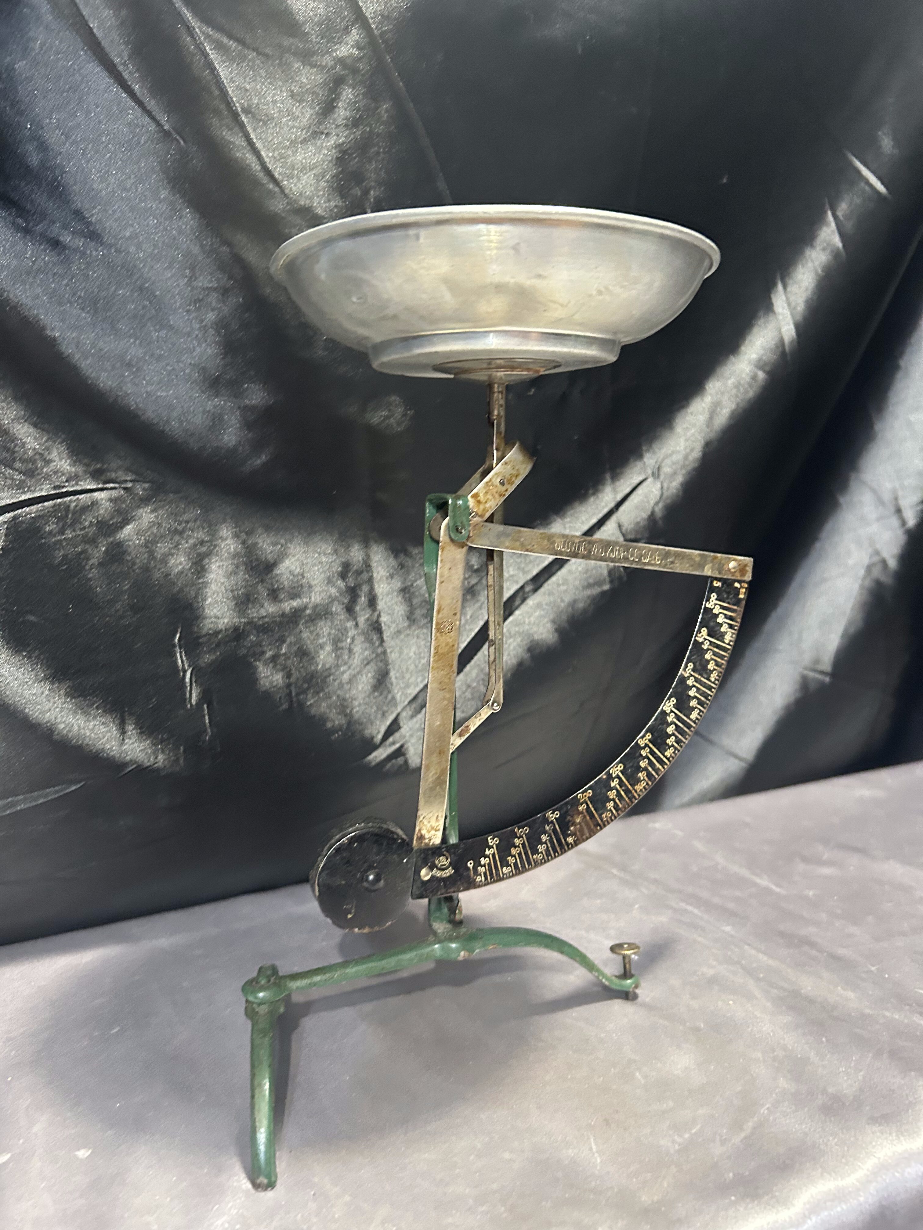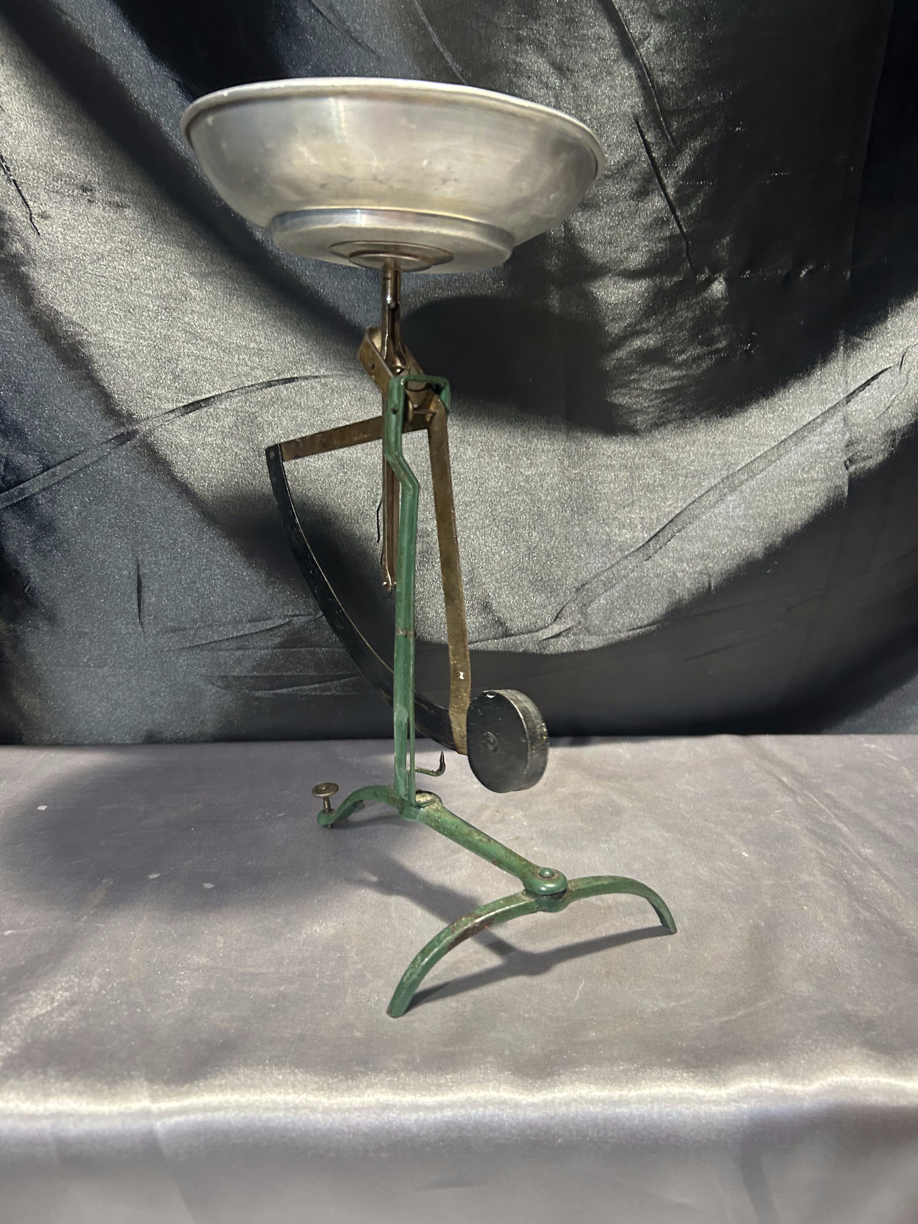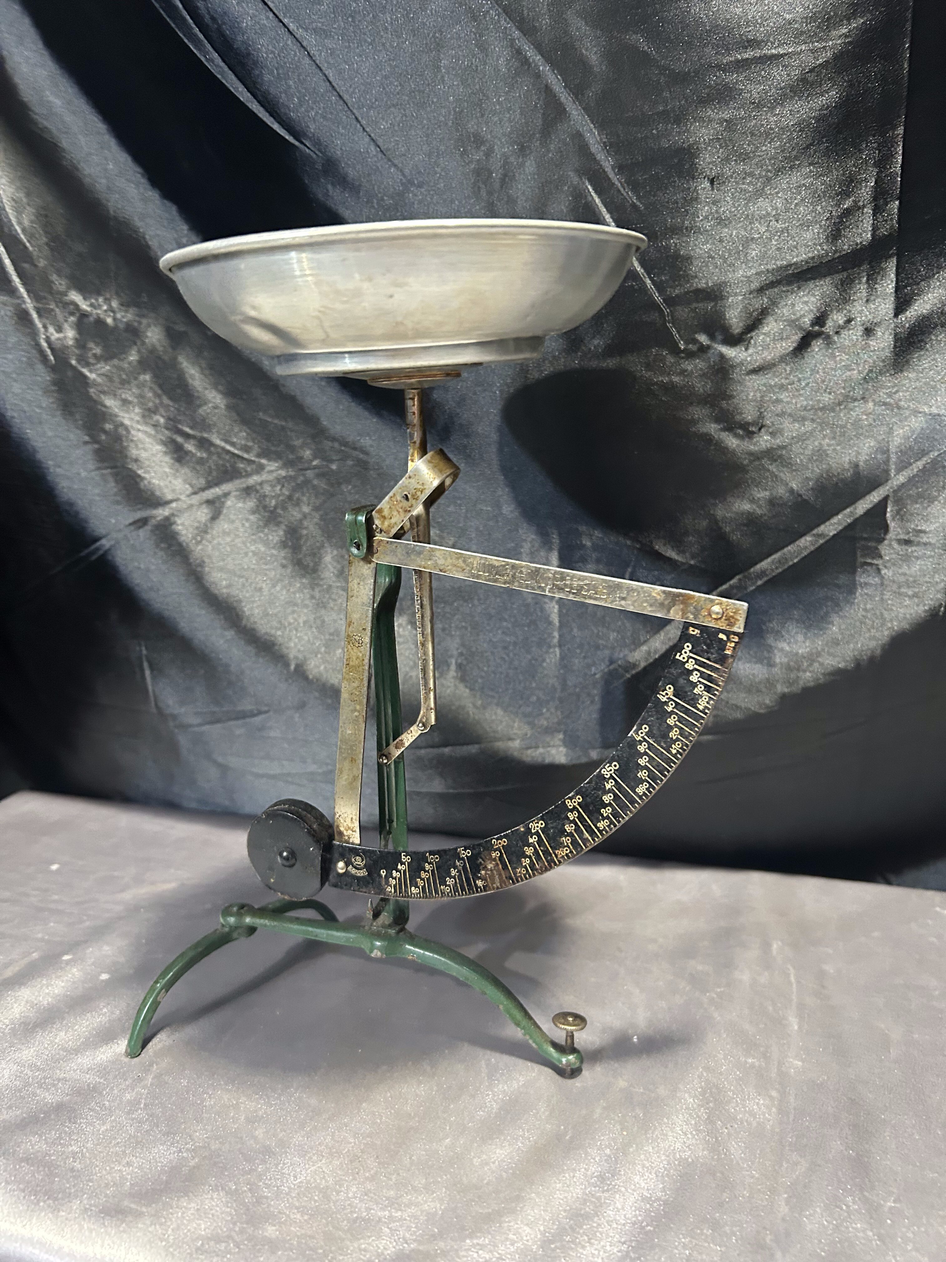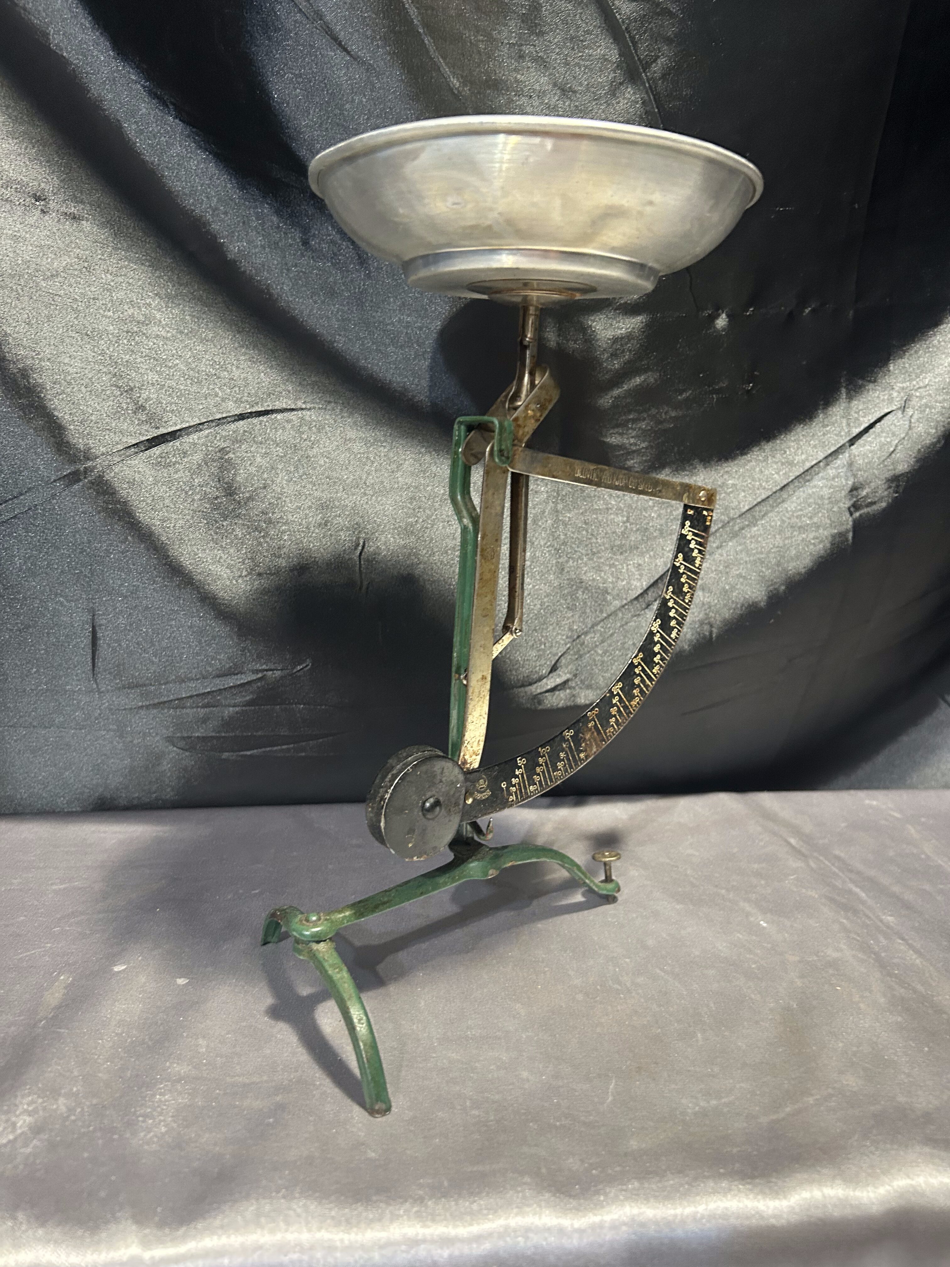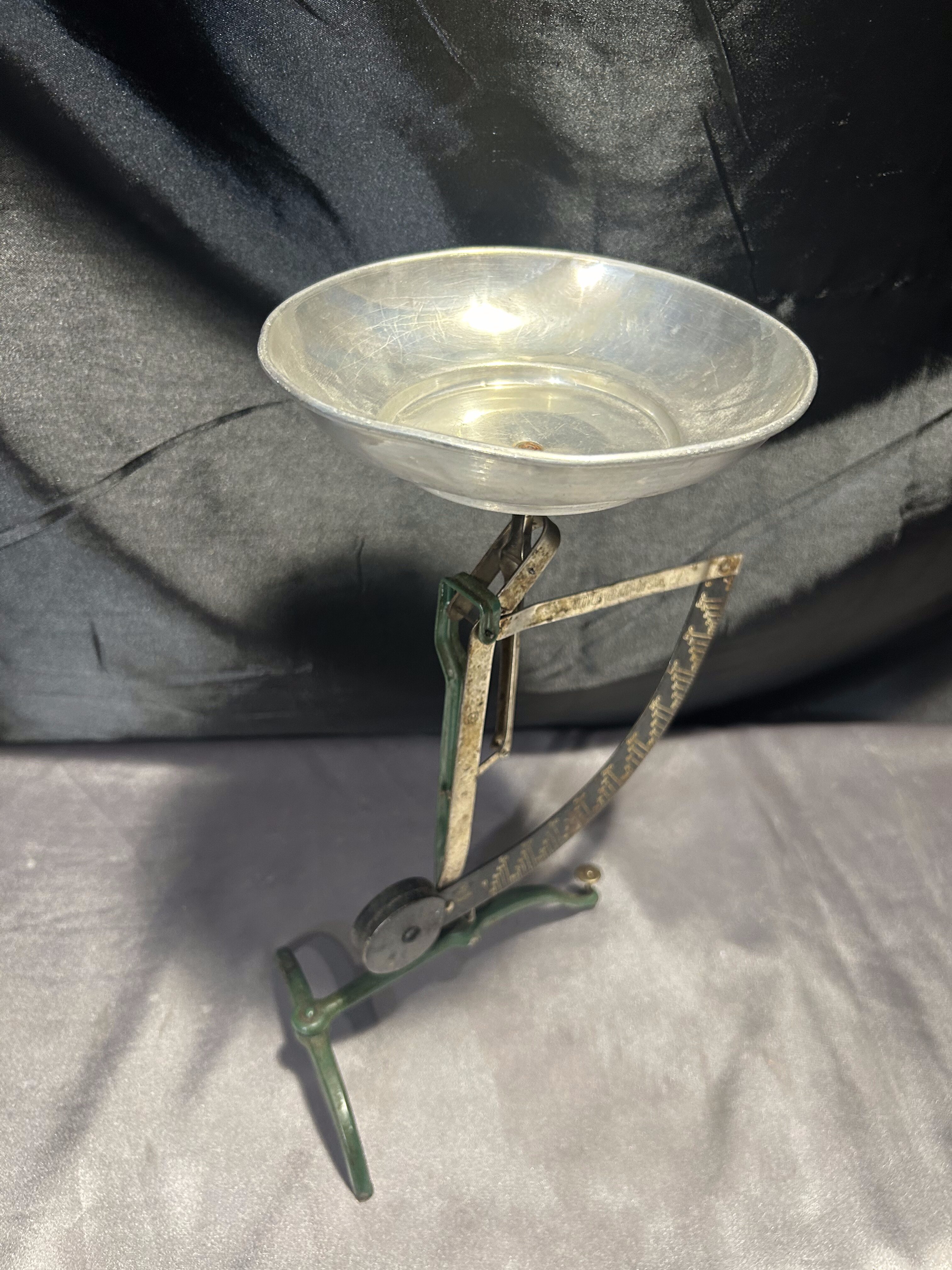 Na sprzedaż kompaktowa waga pocztowa w zielonym kolorze, wyposażona w okrągły talerzyk i skalę do 500 g. Dzięki lekkiej formie i klasycznemu wykończeniu, idealnie sprawdzi się jako funkcjonalne narzędzie lub urokliwa dekoracja w stylu vintage, retro czy industrialnym.