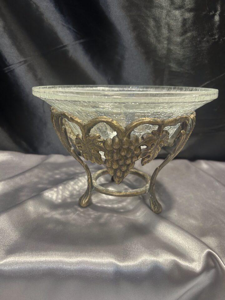 Misa / Patera z Popękanego Szkła i Zdobionego Mosiądzu – Motyw Winogron