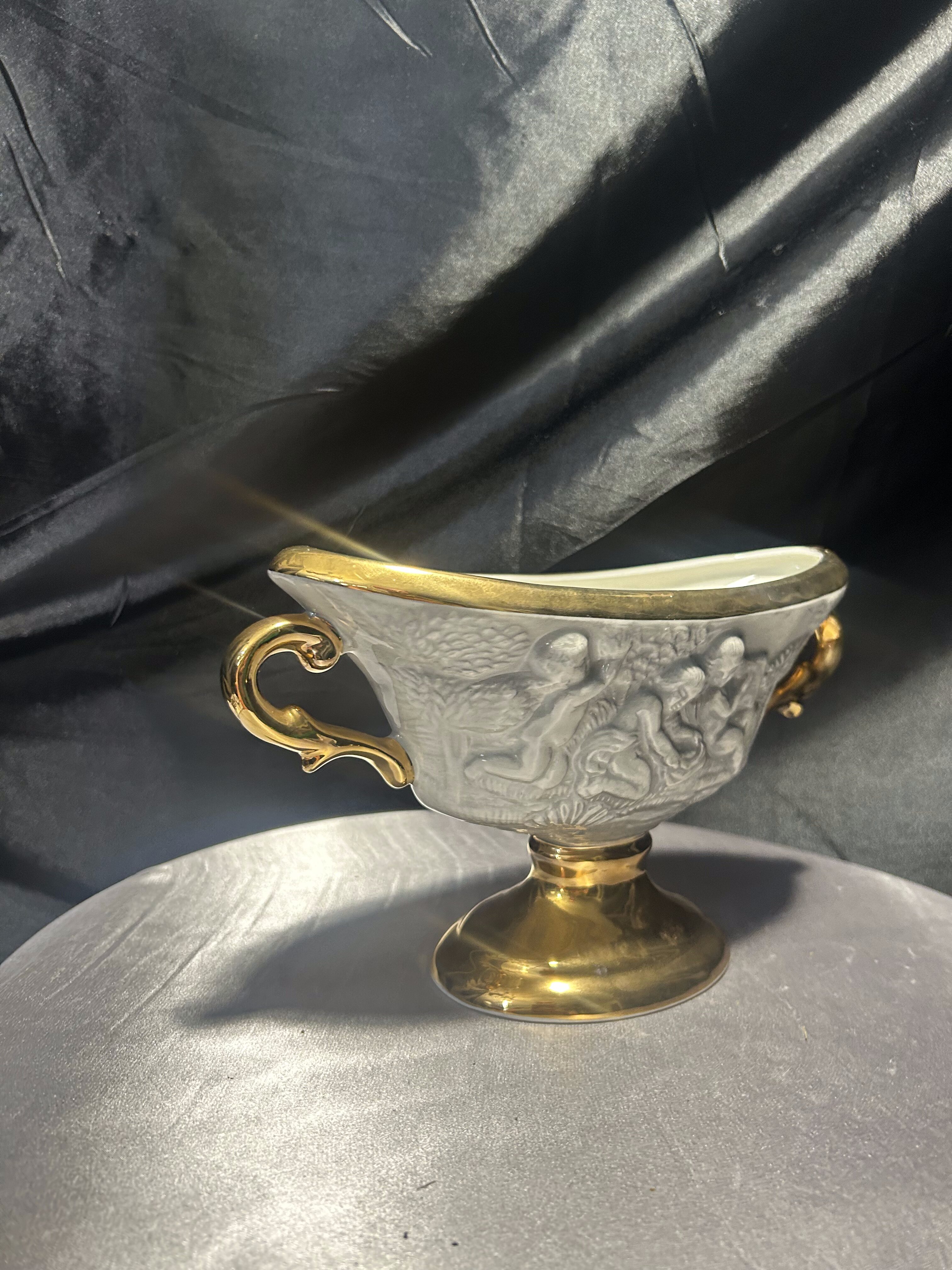 Waza zachwyca proporcją, detalem i harmonią formy – to doskonały wybór dla miłośników włoskiego rzemiosła i dekoracji z charakterem. Może pełnić funkcję ozdobnej misy lub stanowić samodzielny akcent artystyczny na komodzie, konsoli czy stole.