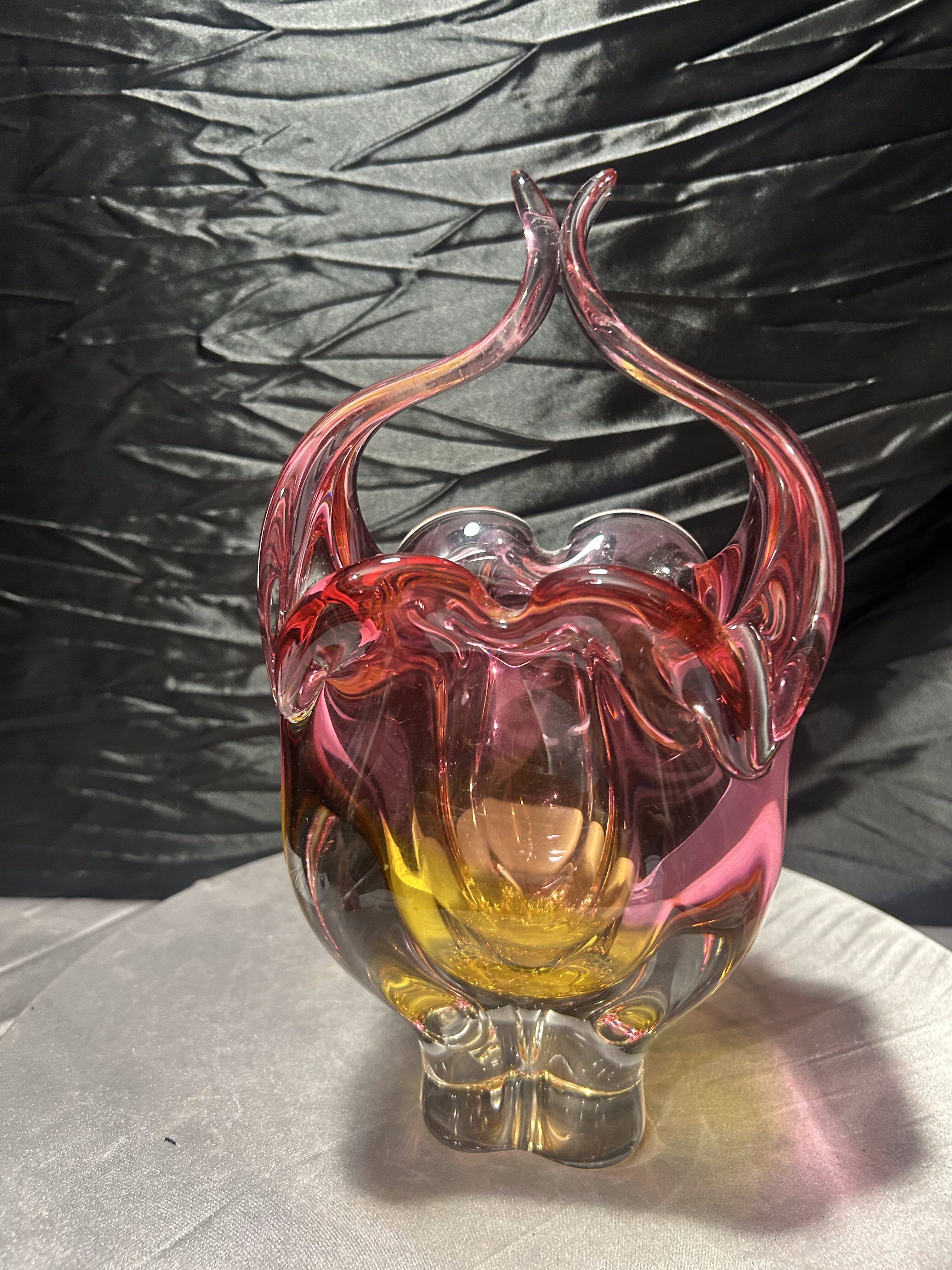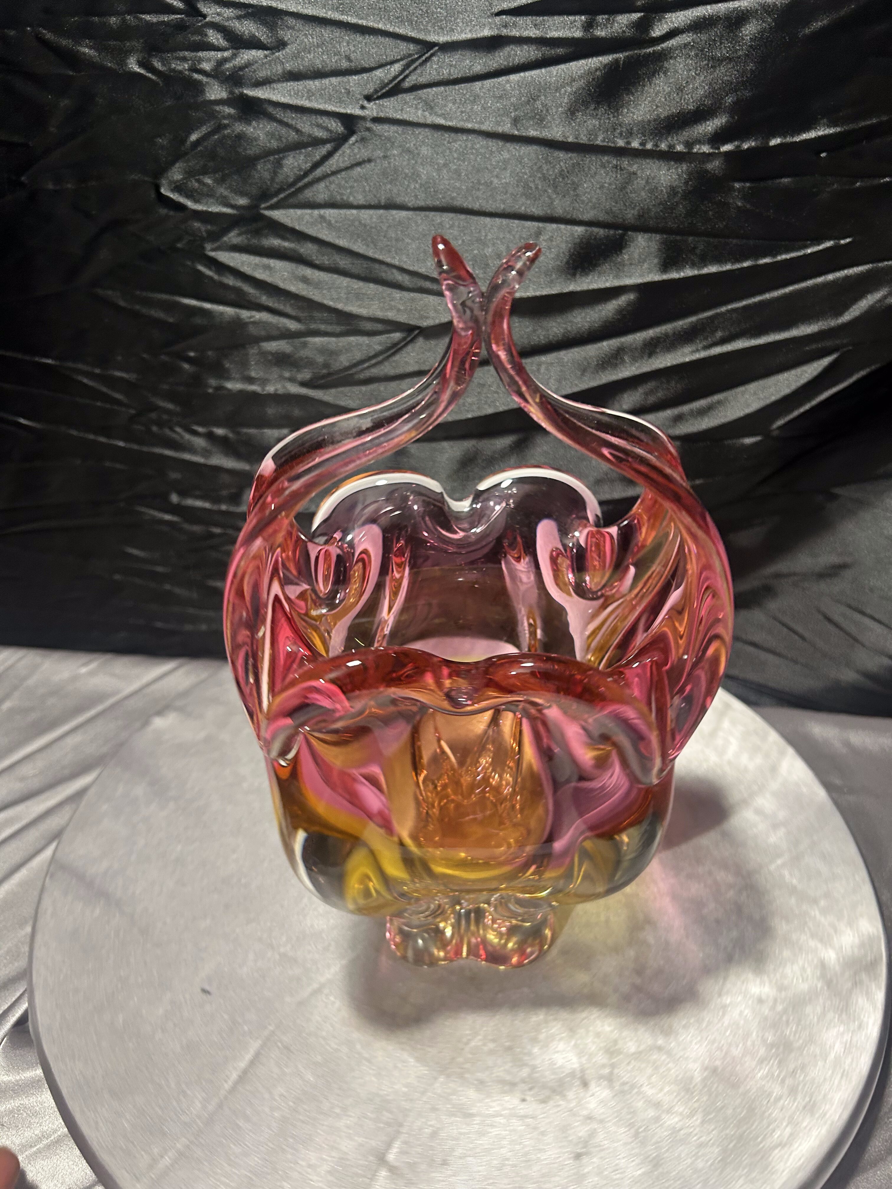 Wazon Bohemia – projekt Józef Hospodka – forma koszyczka – szkło artystyczne
