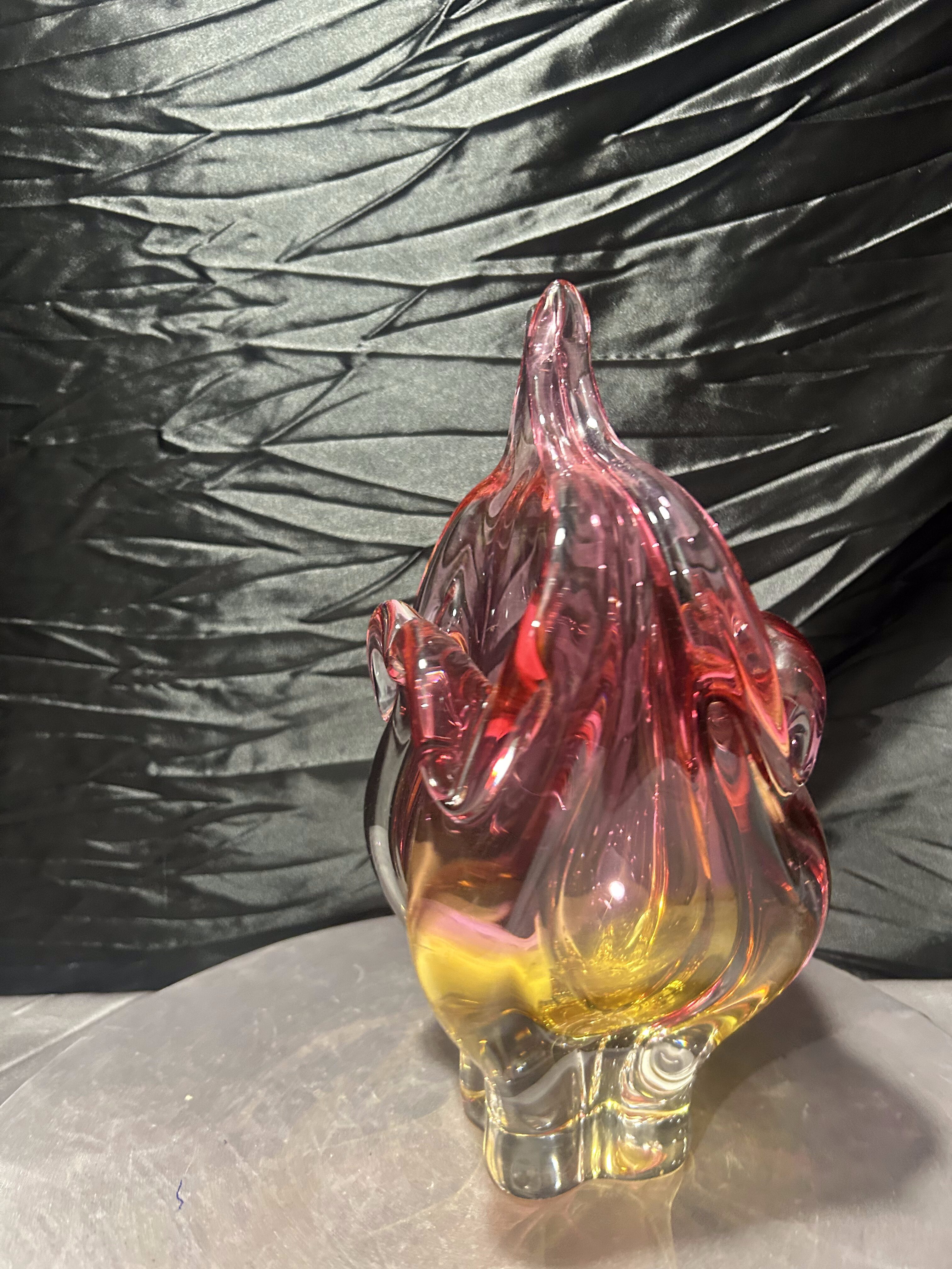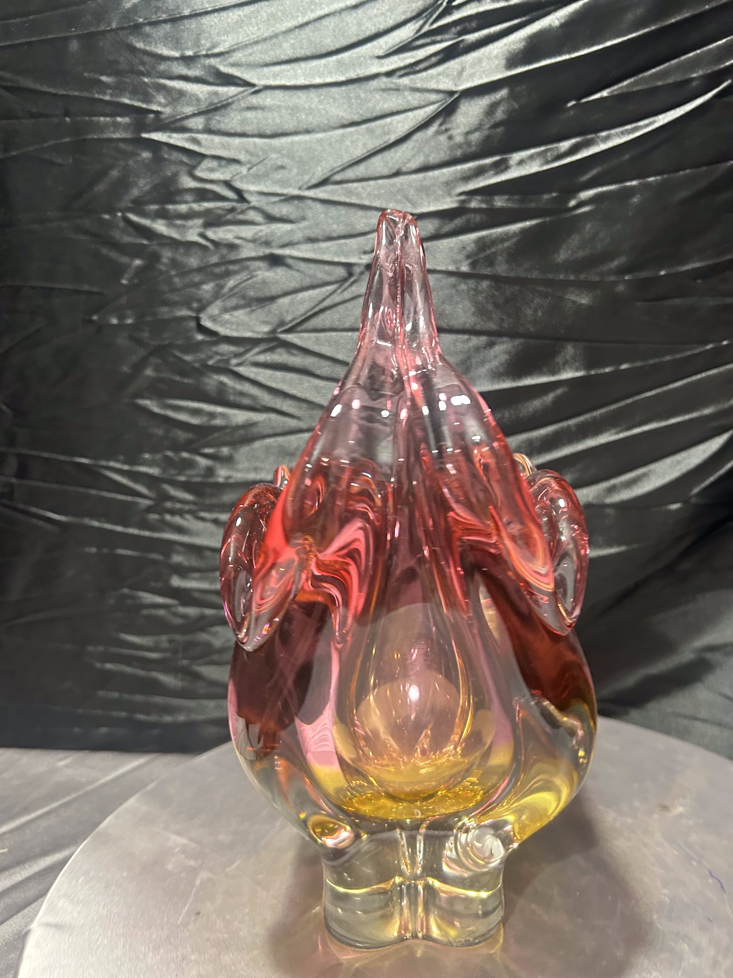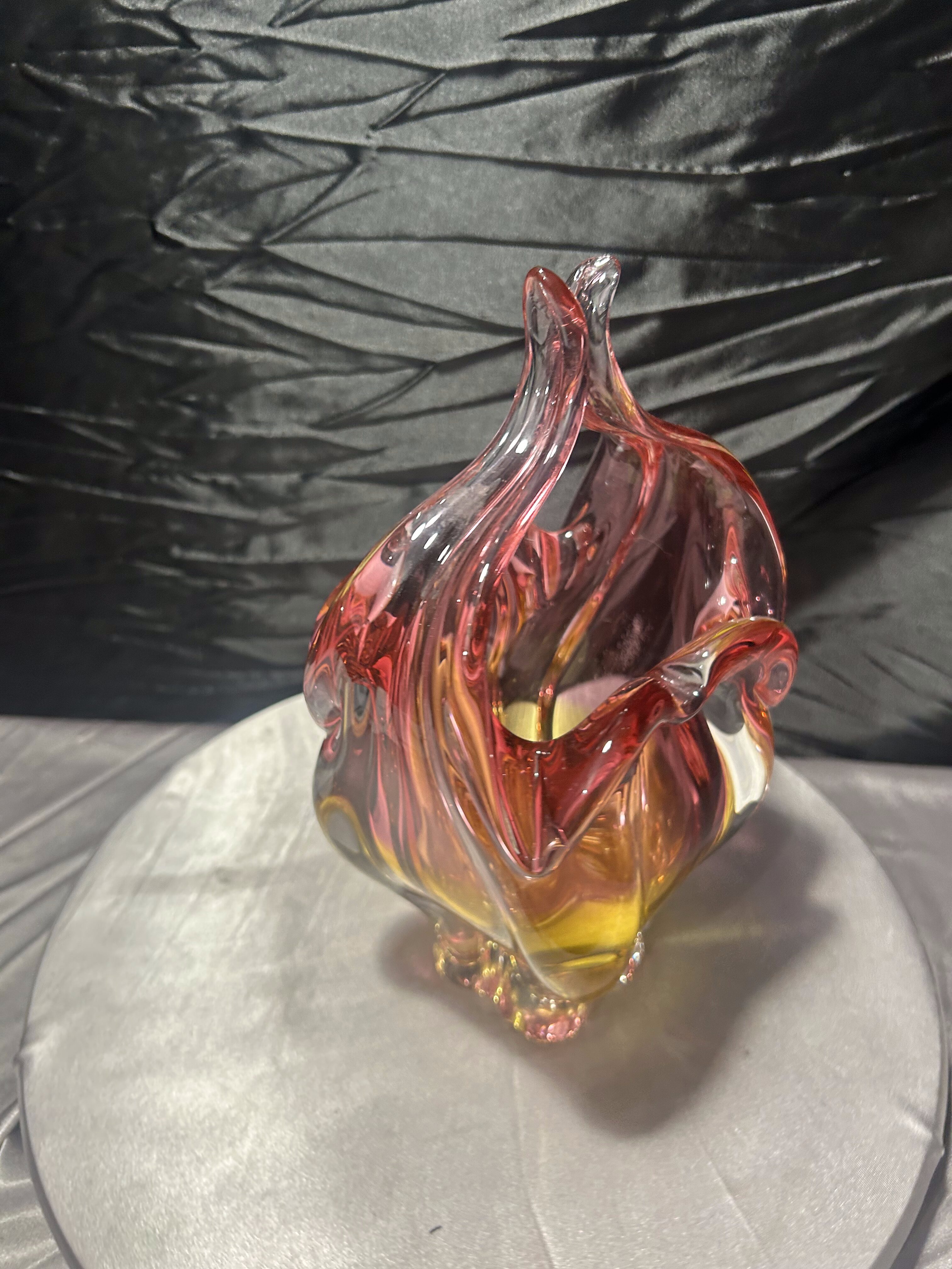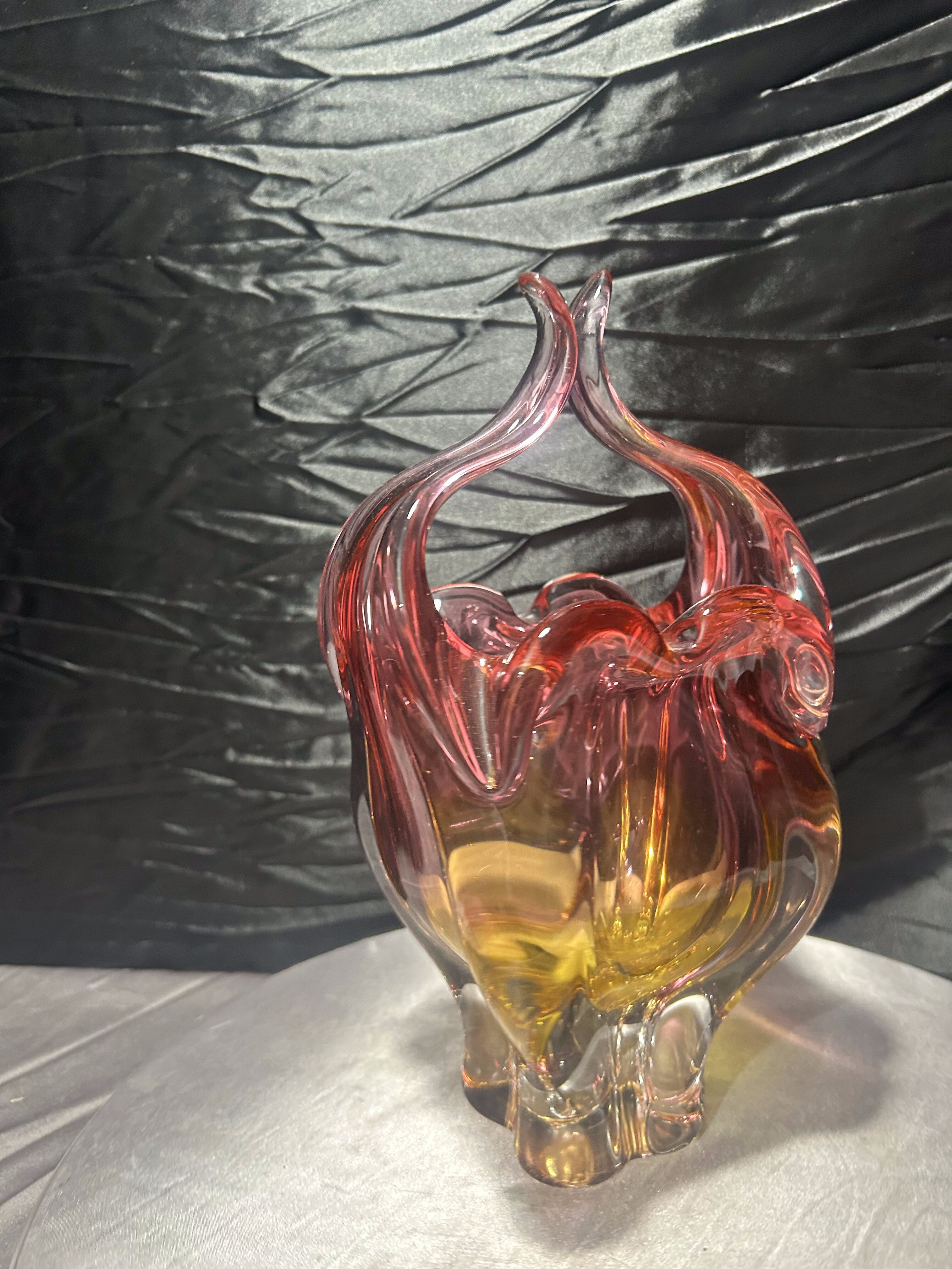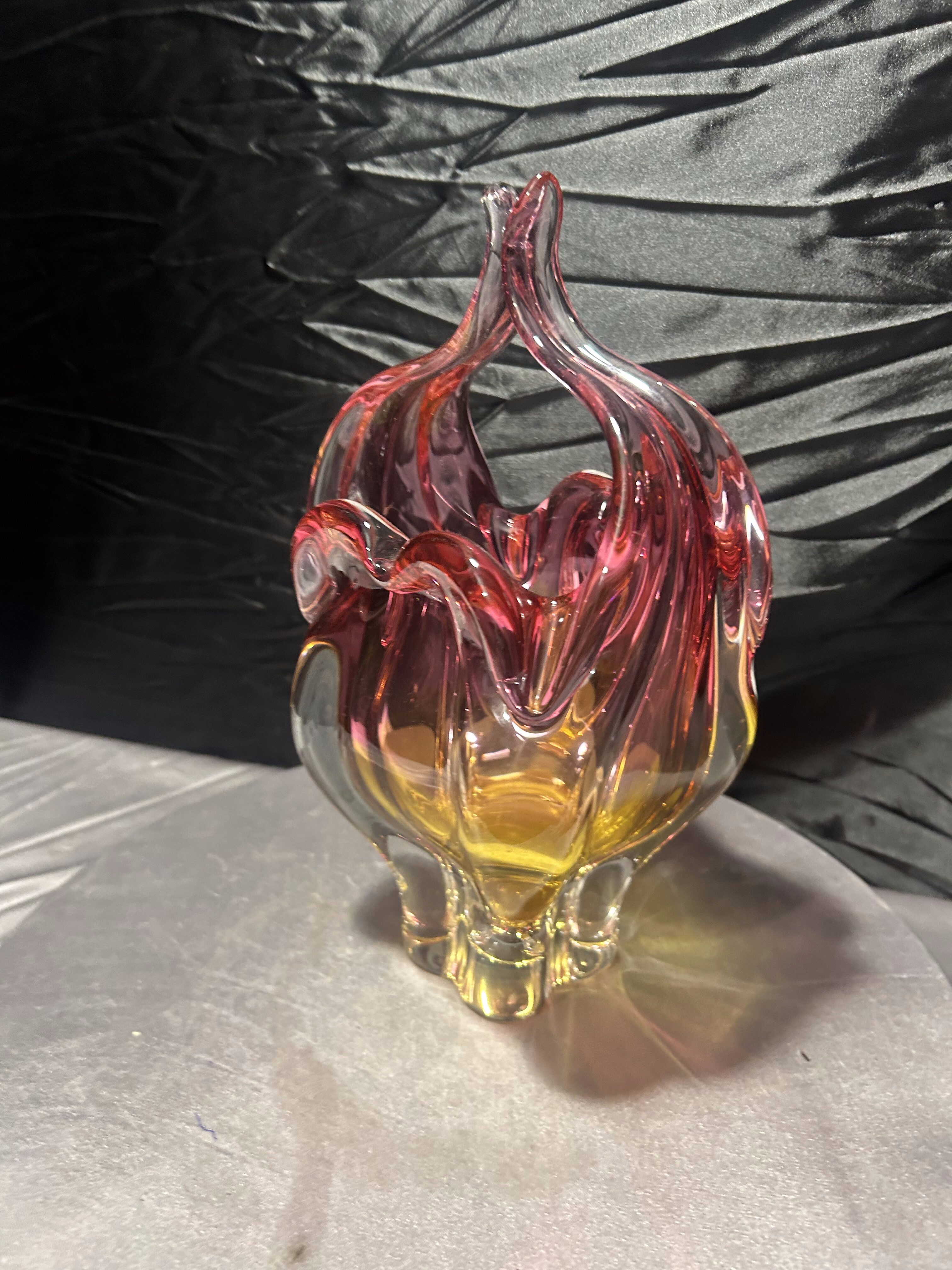To wyrazisty przykład czeskiego designu lat 60–70. Rzeźbiarska forma, bogata kolorystyka i masywna konstrukcja sprawiają, że wazon stanowi zarówno efektowną dekorację, jak i wartościowy element kolekcji szkła artystycznego.