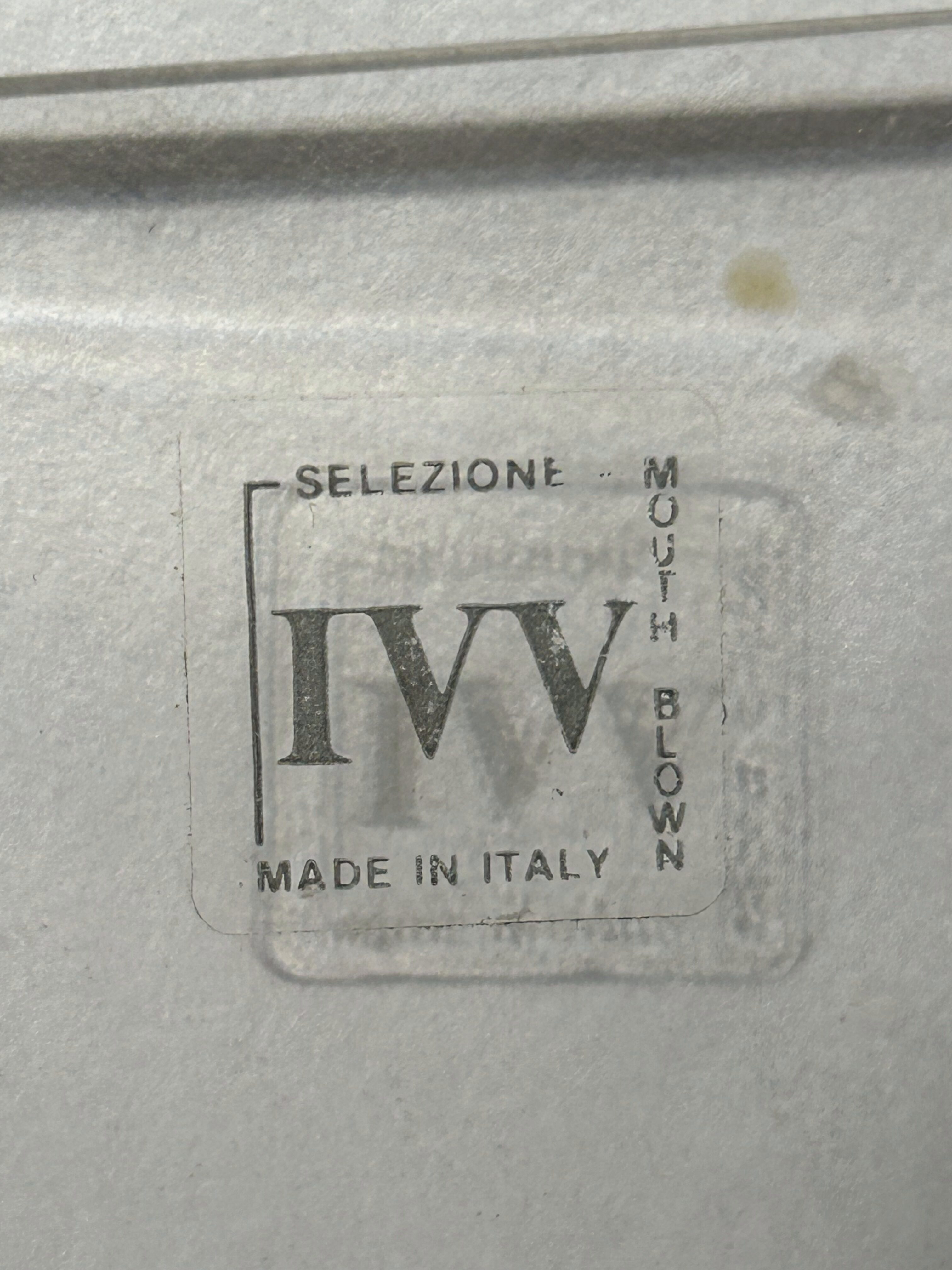 Naklejka IVV – Selezione Murano Blown – Made in Italy wskazuje na włoską hutę Industria Vetraria Valdarnese (IVV) – renomowanego producenta szkła artystycznego. Oznaczenie „Murano Blown” odnosi się do techniki ręcznego formowania szkła inspirowanej tradycją Murano, stosowanej w wyselekcjonowanych kolekcjach IVV.