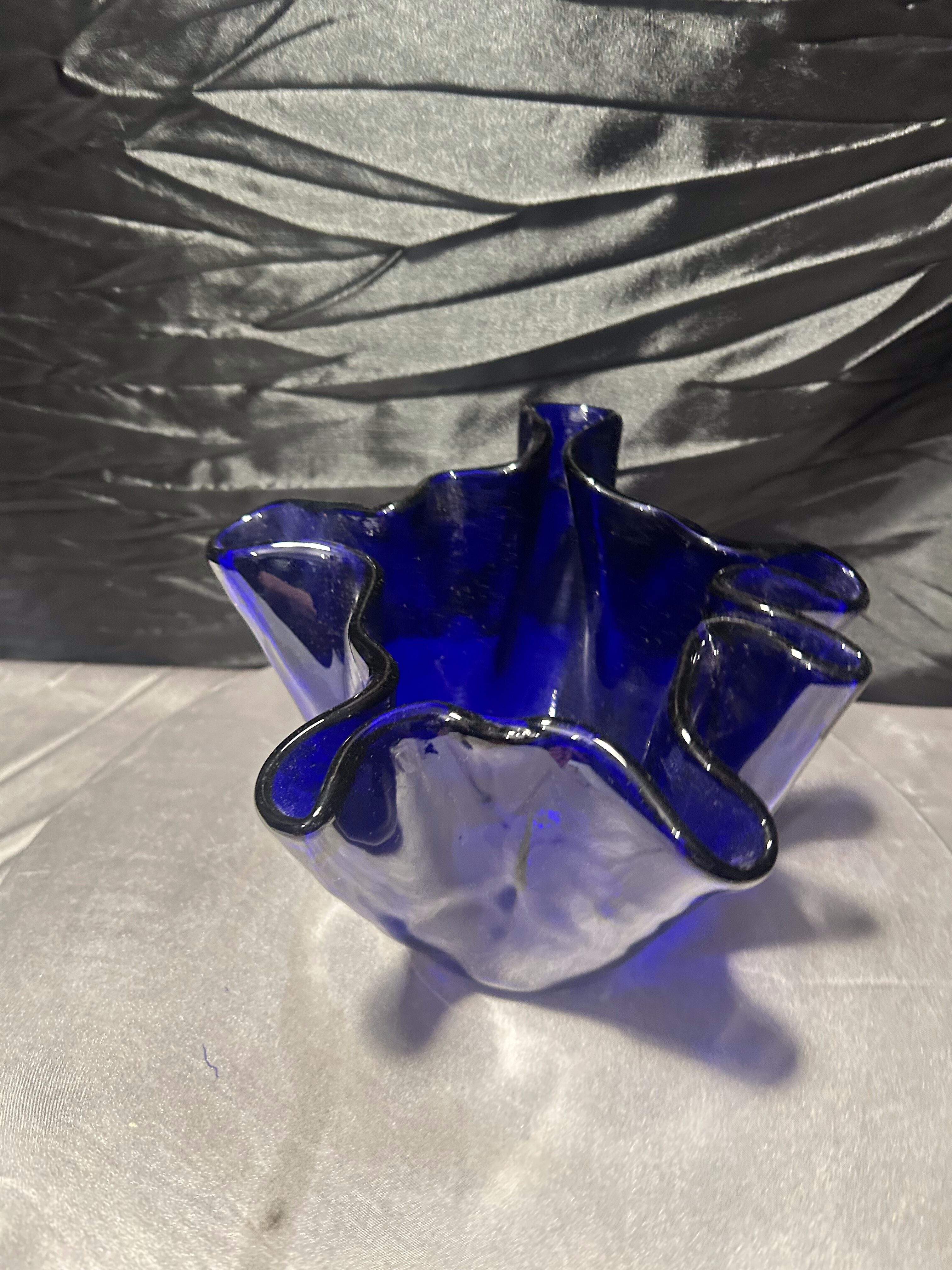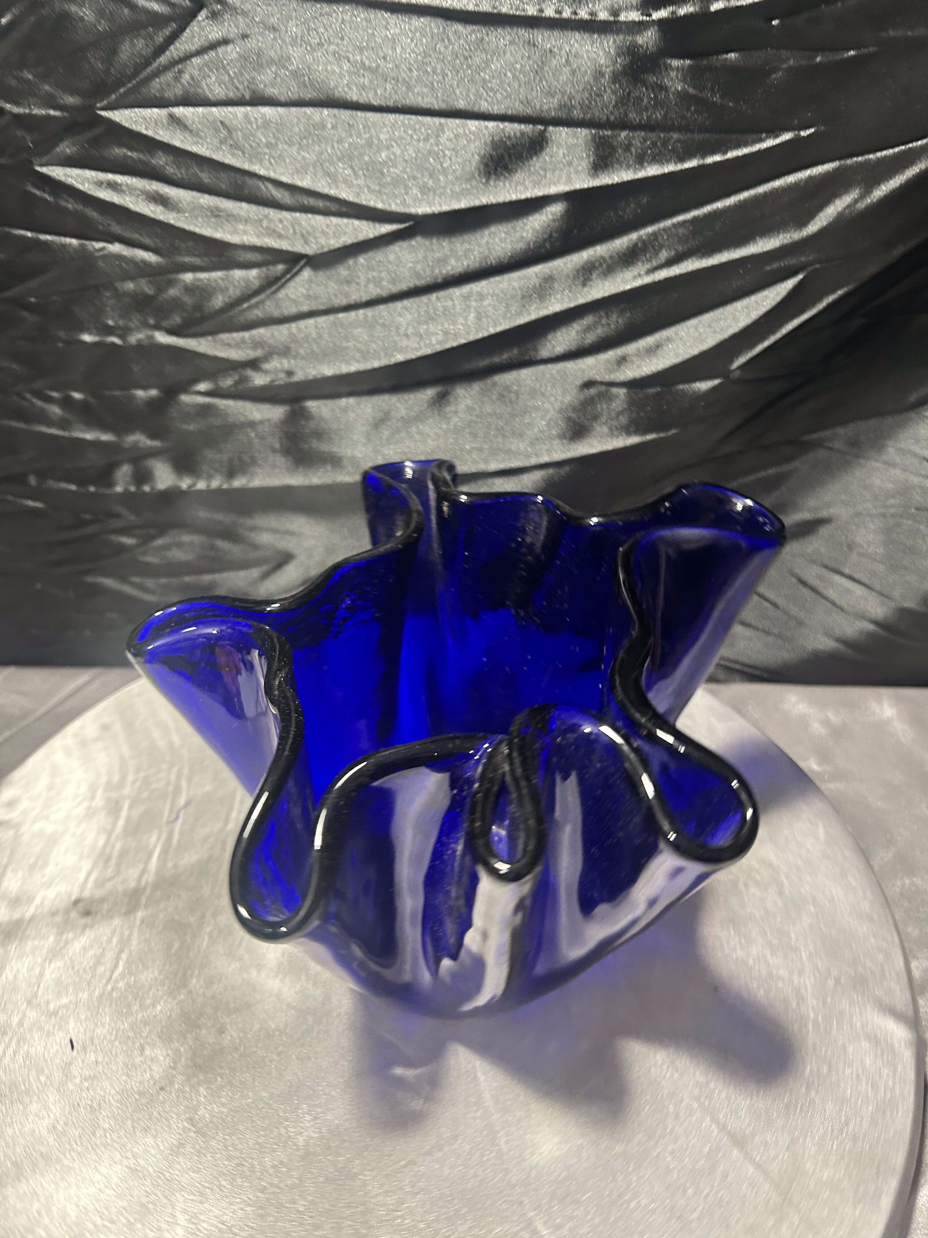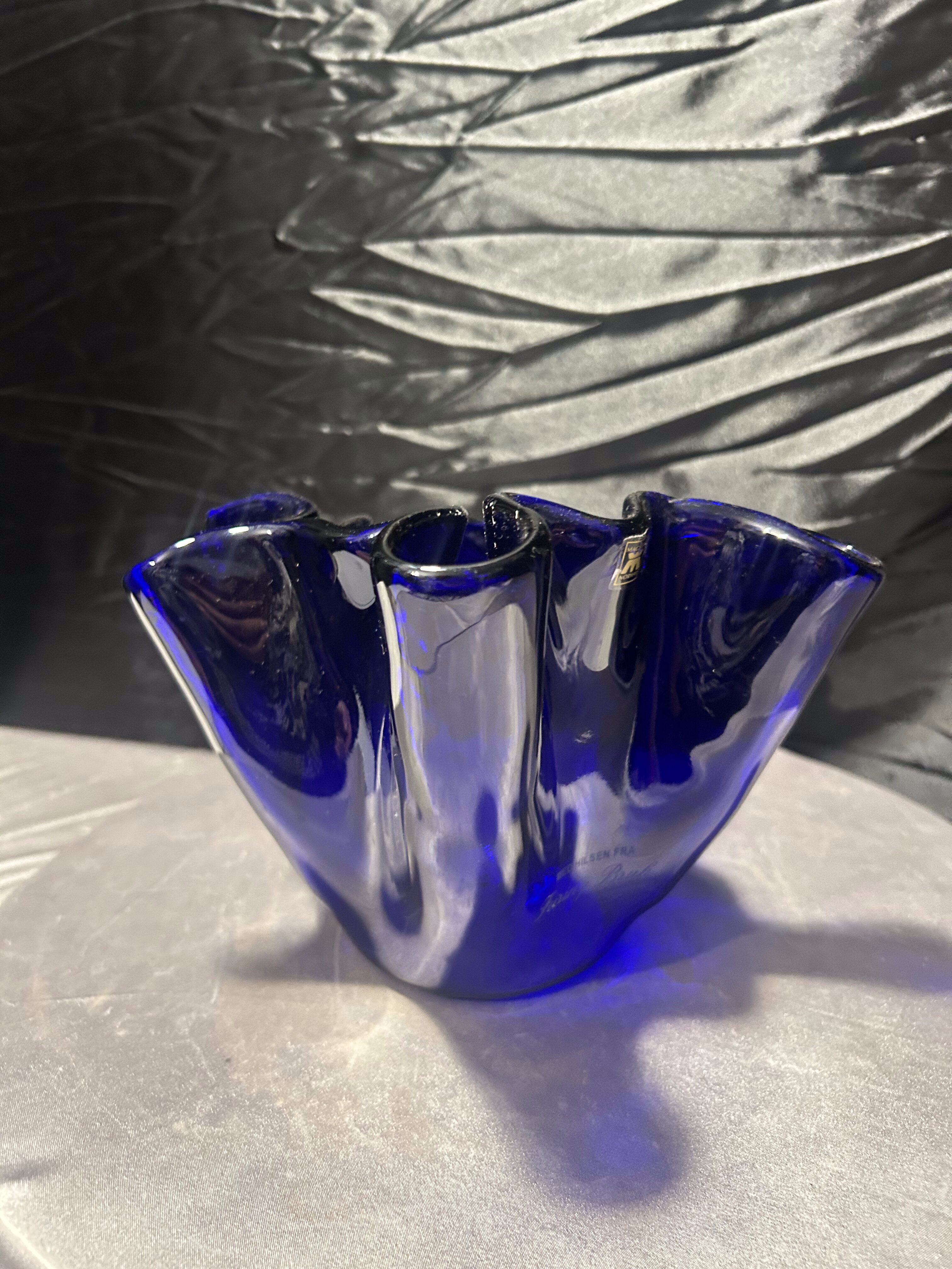 Wazon Magnor Norway – granatowe szkło artystyczne – sygnowany – styl skandynawski