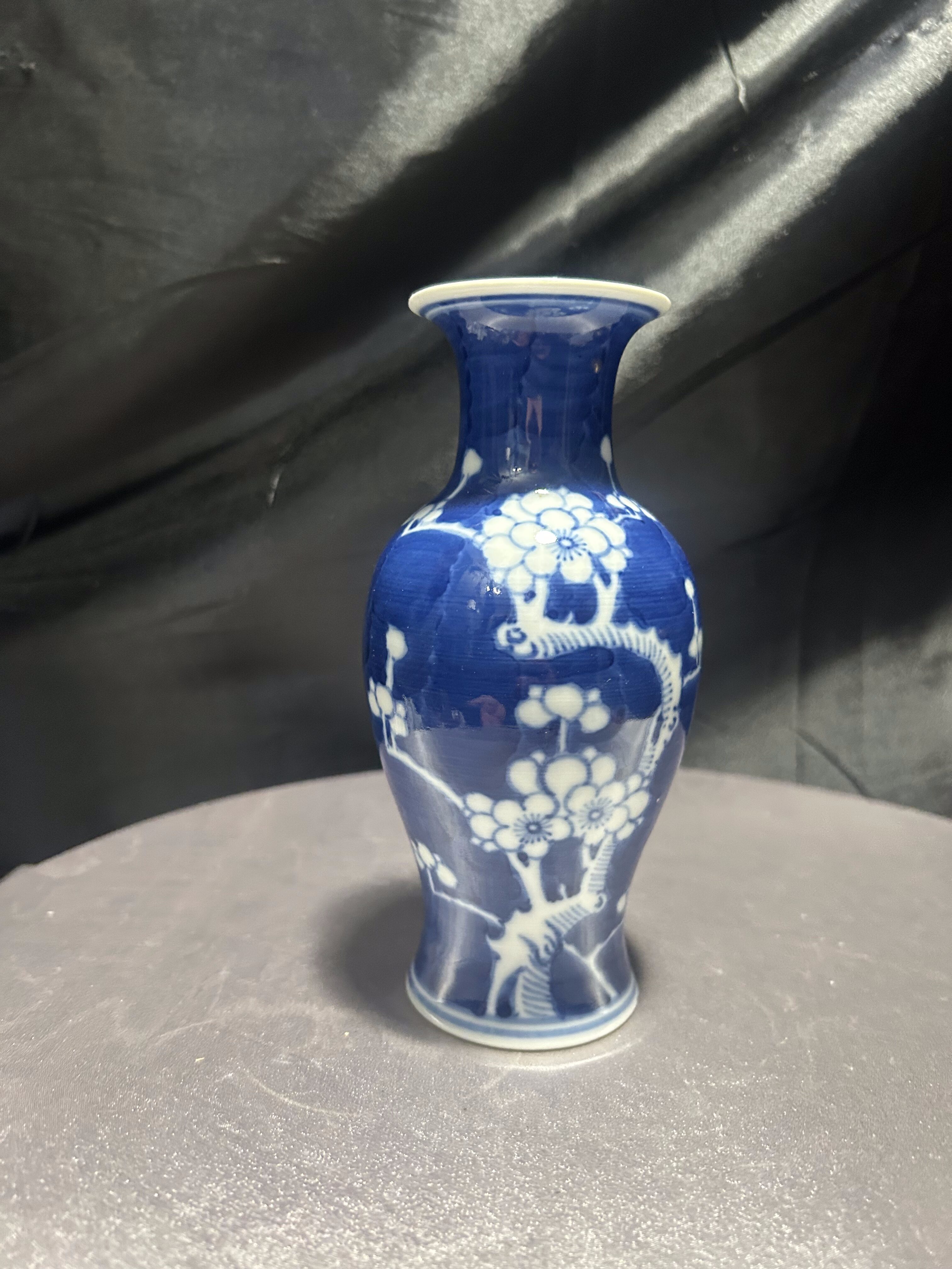 Elegancki wazon porcelanowy w charakterystycznej kobaltowej tonacji z ręcznie malowanym motywem kwitnącej śliwy – symbolu odnowy i siły. Forma oraz dekoracja nawiązują do estetyki chińskiej porcelany z okresu dynastii Ming, co nadaje przedmiotowi wyrafinowany i kolekcjonerski charakter. Zastosowana technika malarska oraz szkliwiona powierzchnia dodają całości lekkości i głębi, a smukła sylwetka idealnie komponuje się zarówno z nowoczesnym, jak i klasycznym wnętrzem.