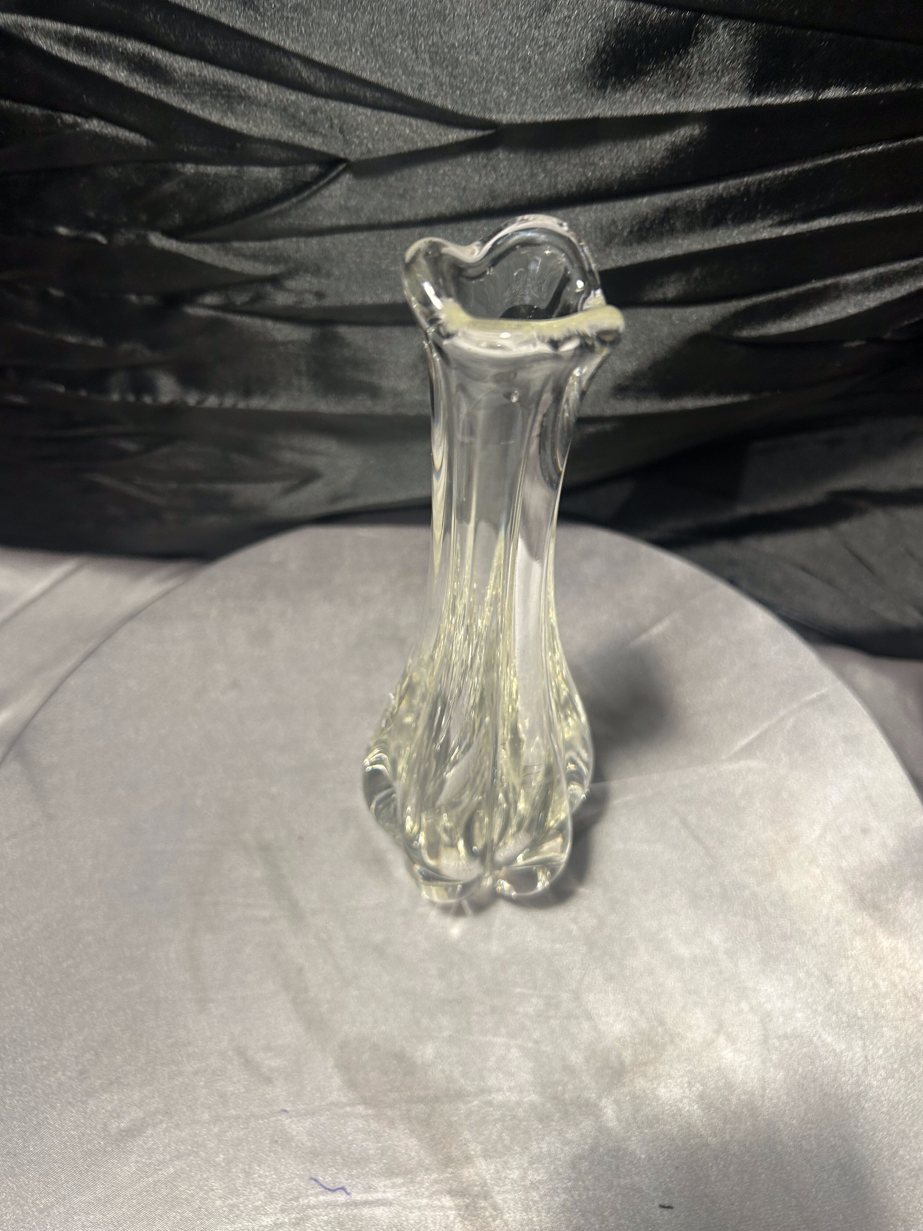 - Wazon szklany artystyczny – transparentne szkło formowane – styl modernistyczny