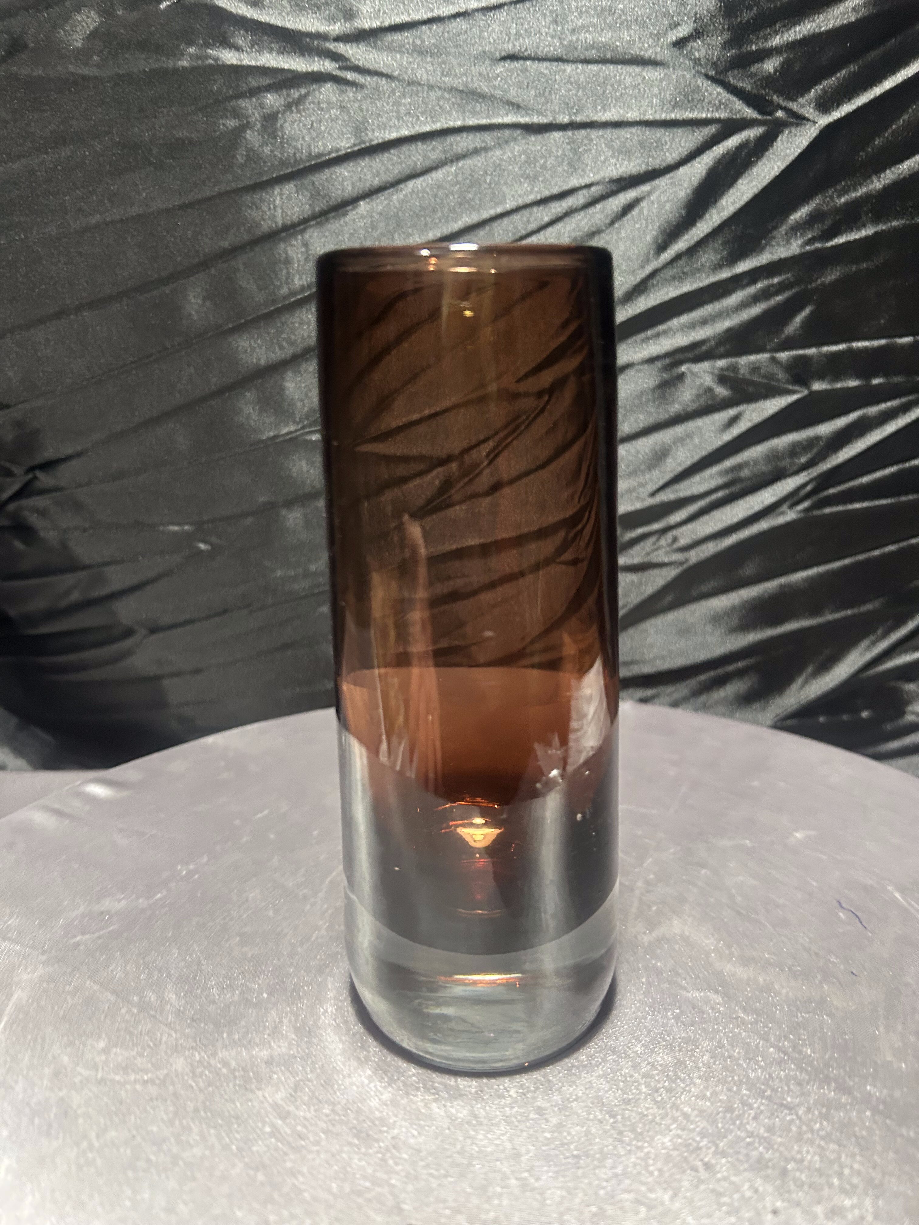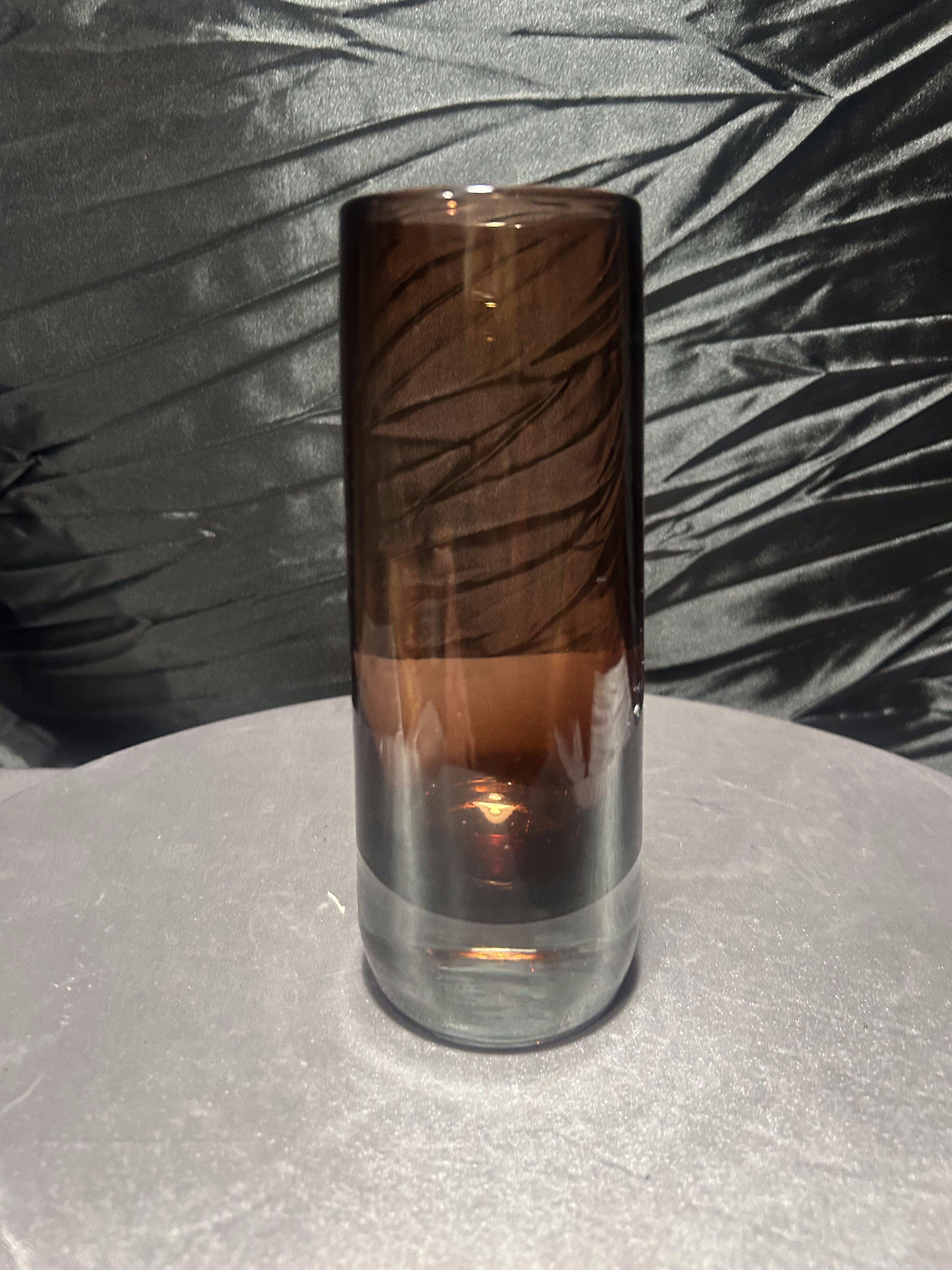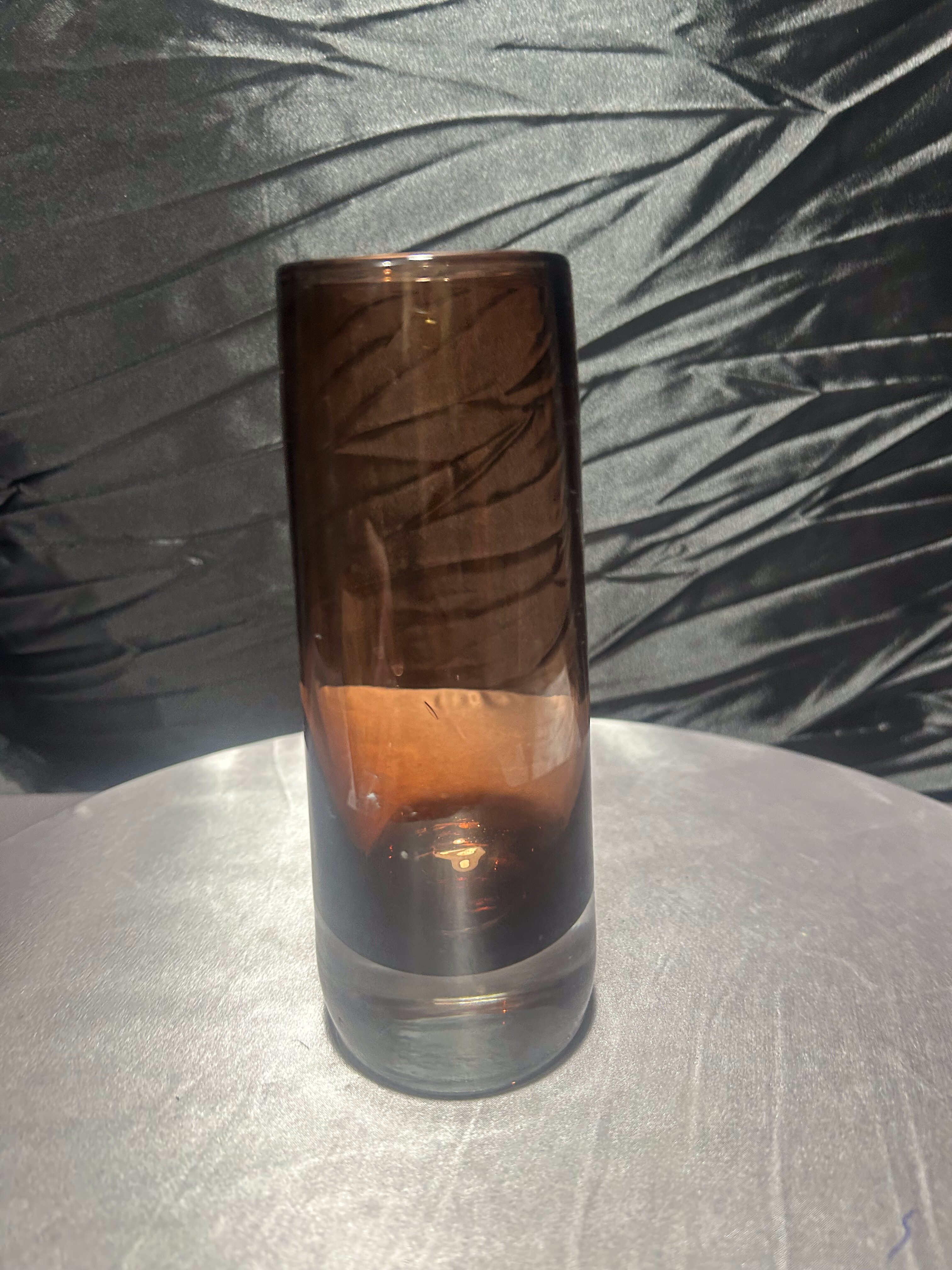 Piękny szklany wazon wykonany z grubego, ciężkiego szkła w głębokim bordowym odcieniu. Charakteryzuje się prostą, cylindryczną formą, która podkreśla nowoczesny, a zarazem ponadczasowy styl. Dzięki przejrzystej dolnej części i głębi koloru w górnej, wazon prezentuje się wyjątkowo efektownie w świetle dziennym i sztucznym.
