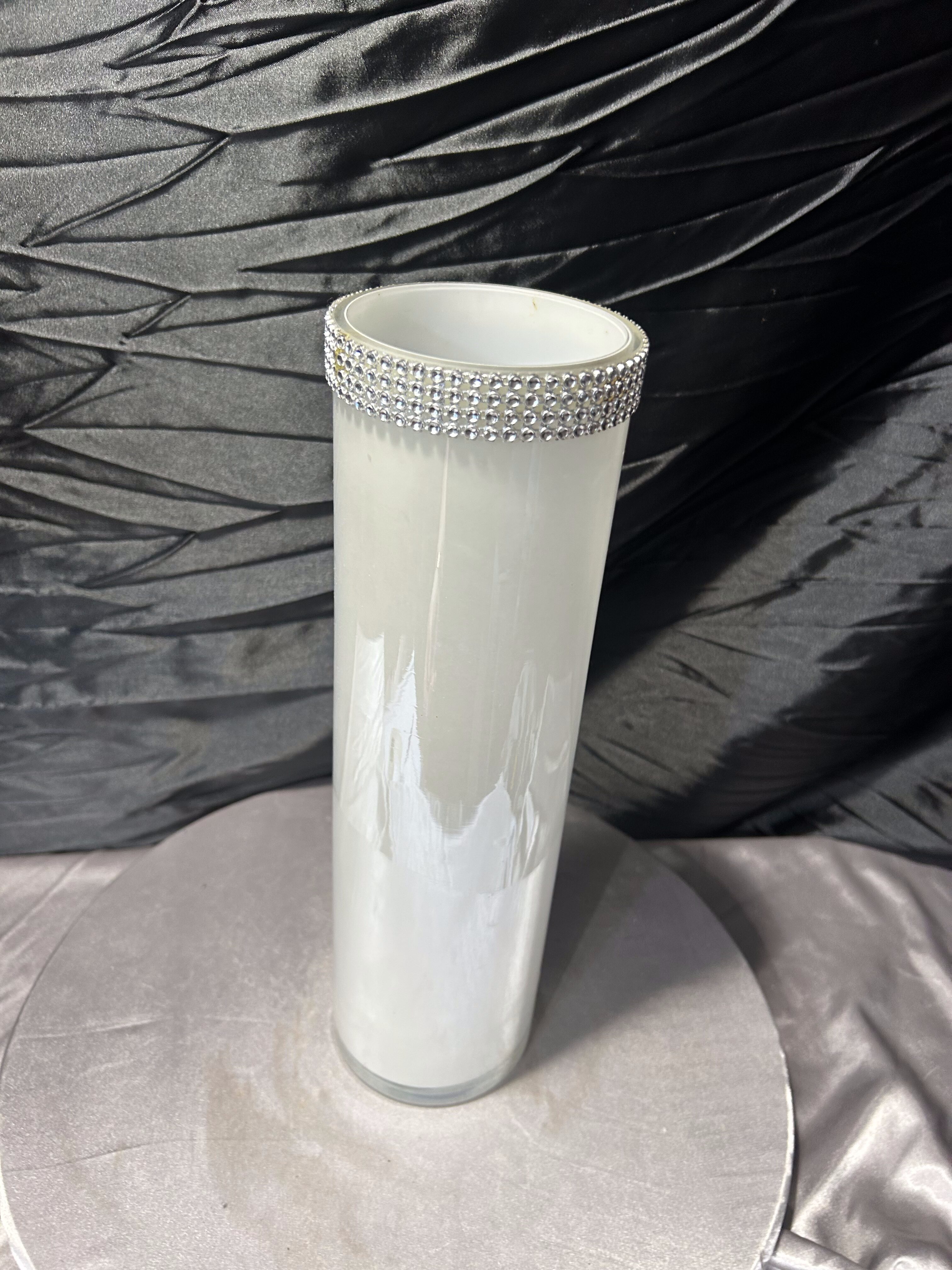 Wazon szklany w stylu glamour – mleczne szkło z dekoracją cyrkoniową