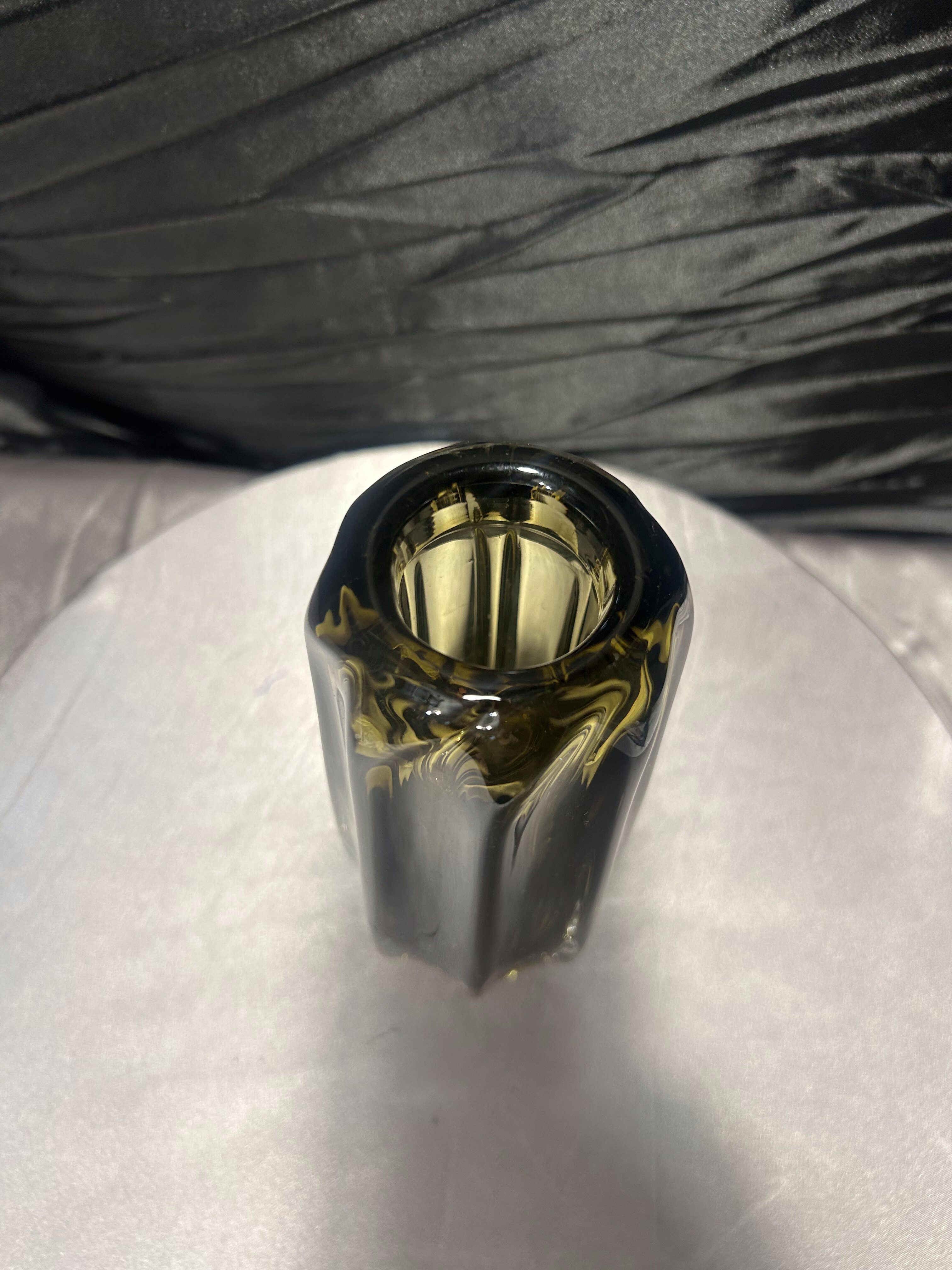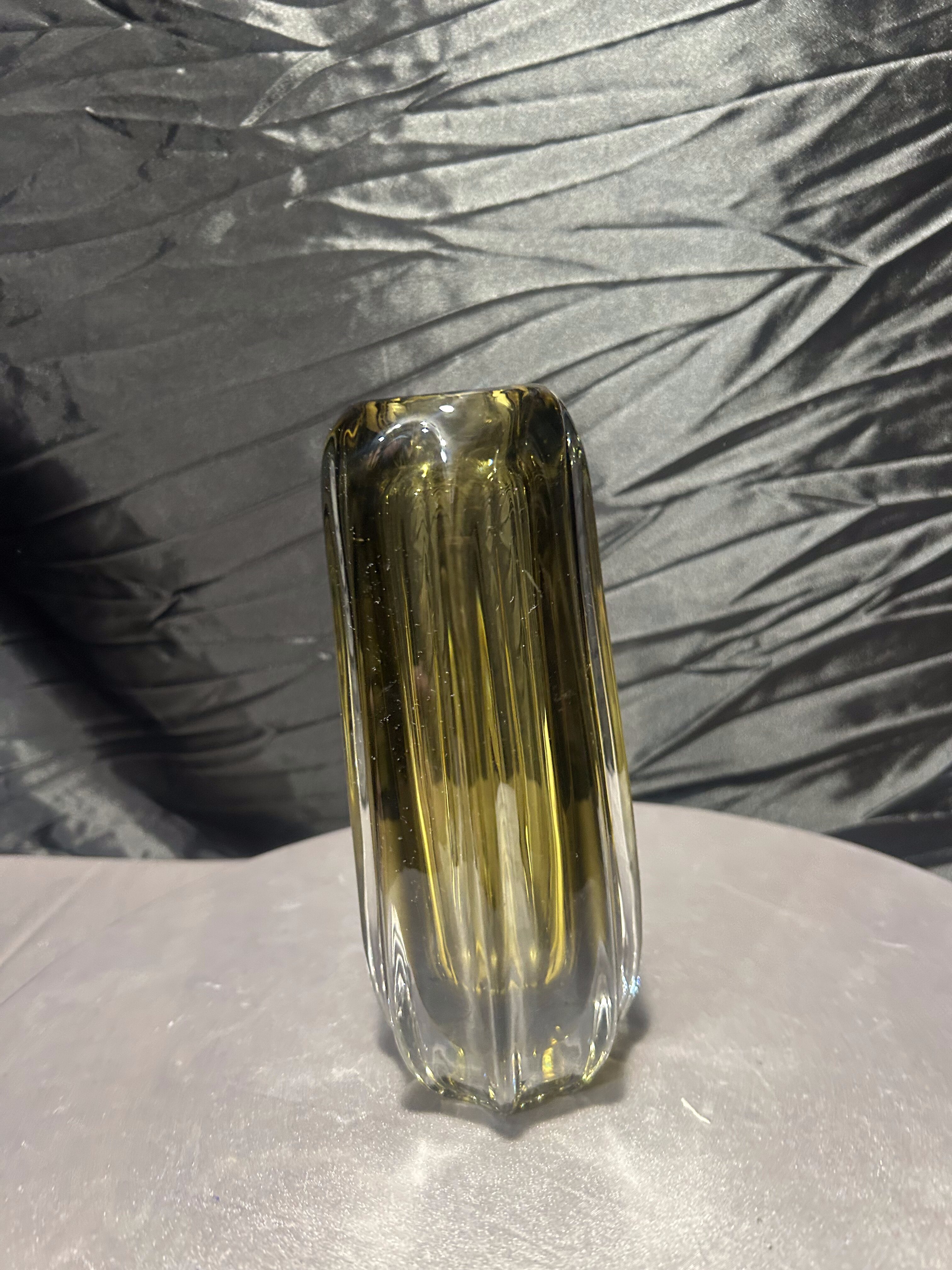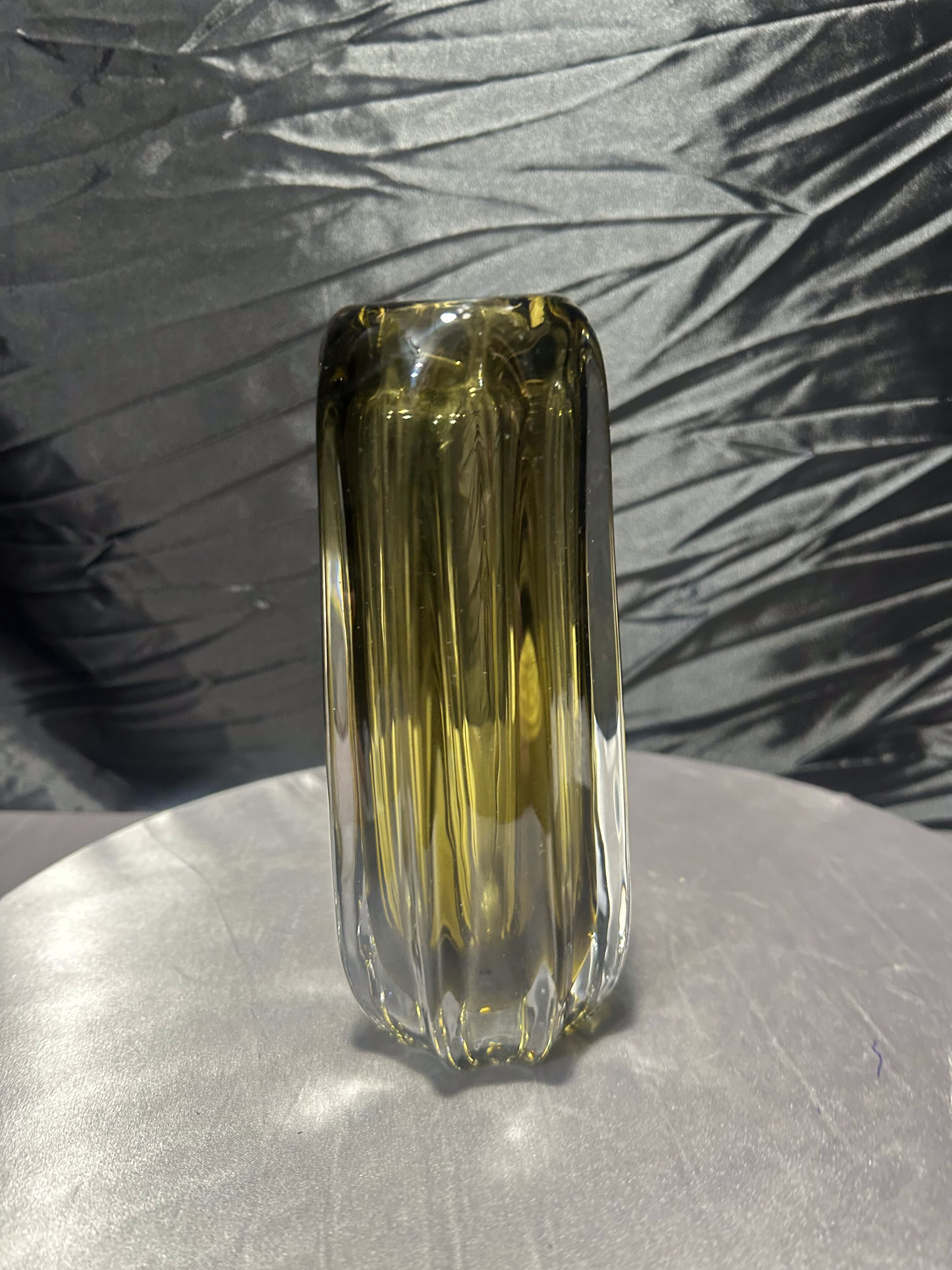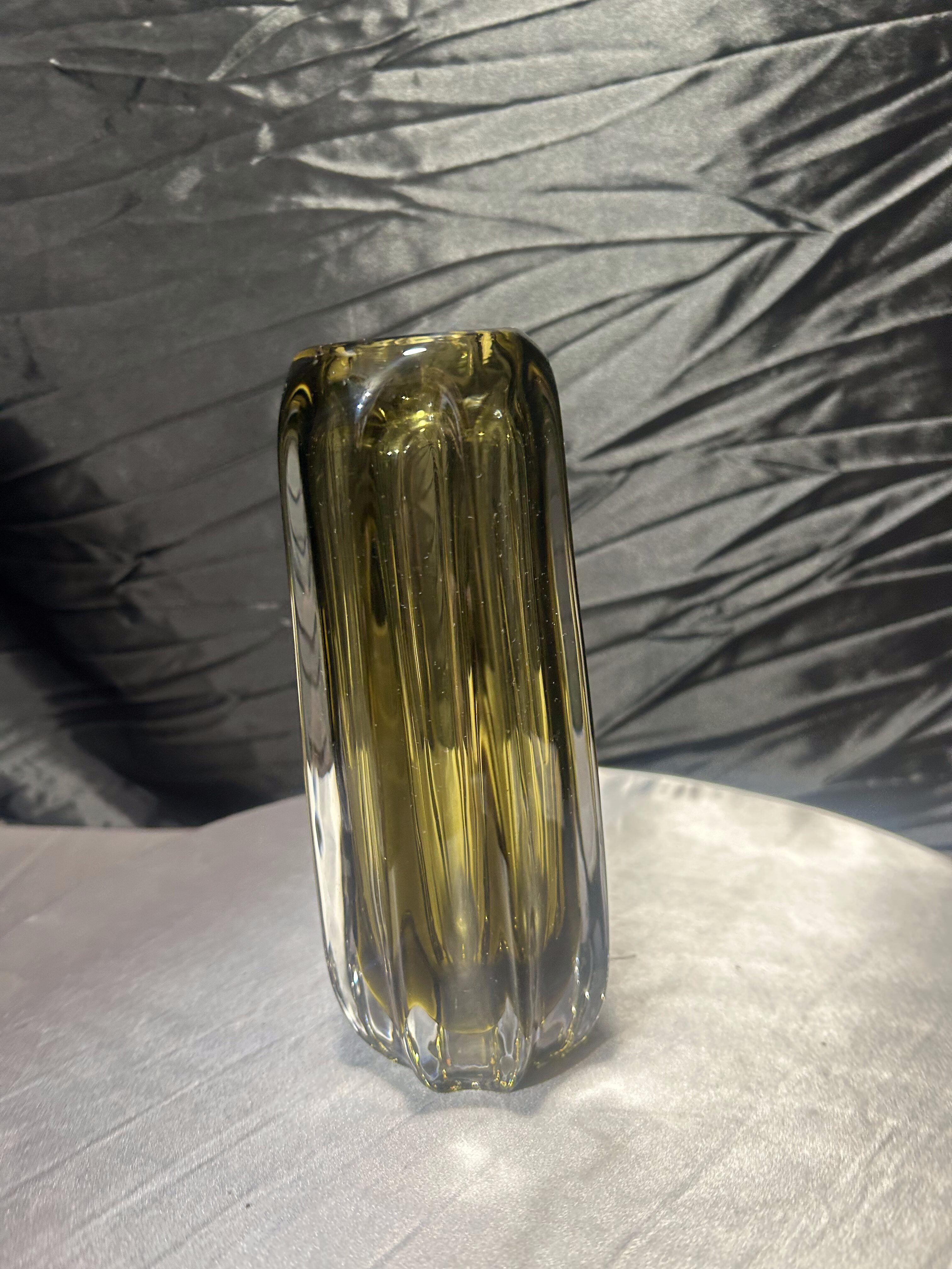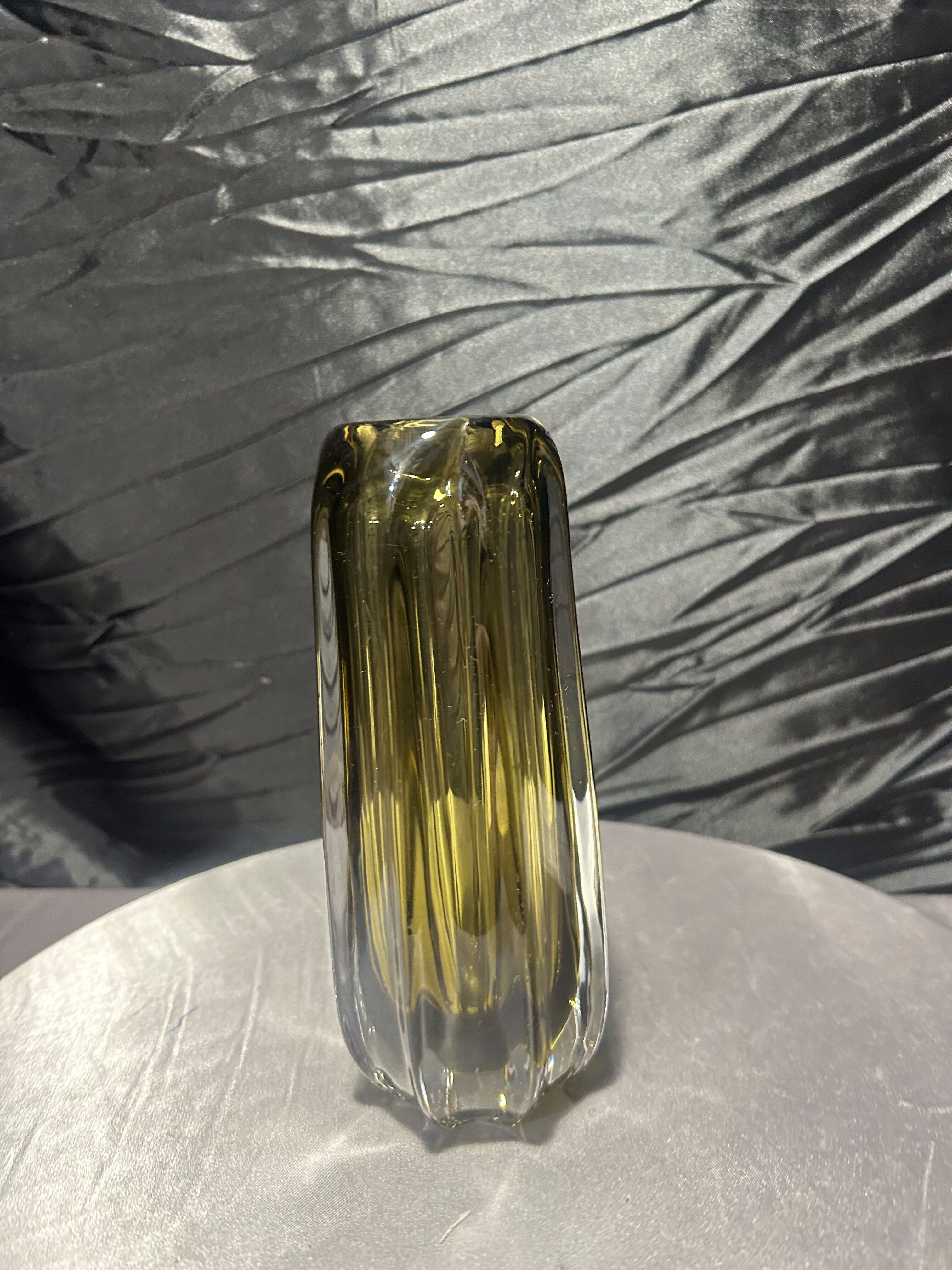 Wazon ze szkła artystycznego – oliwkowo-zielony odcień – szkło grube, ciężkie – 20 cm