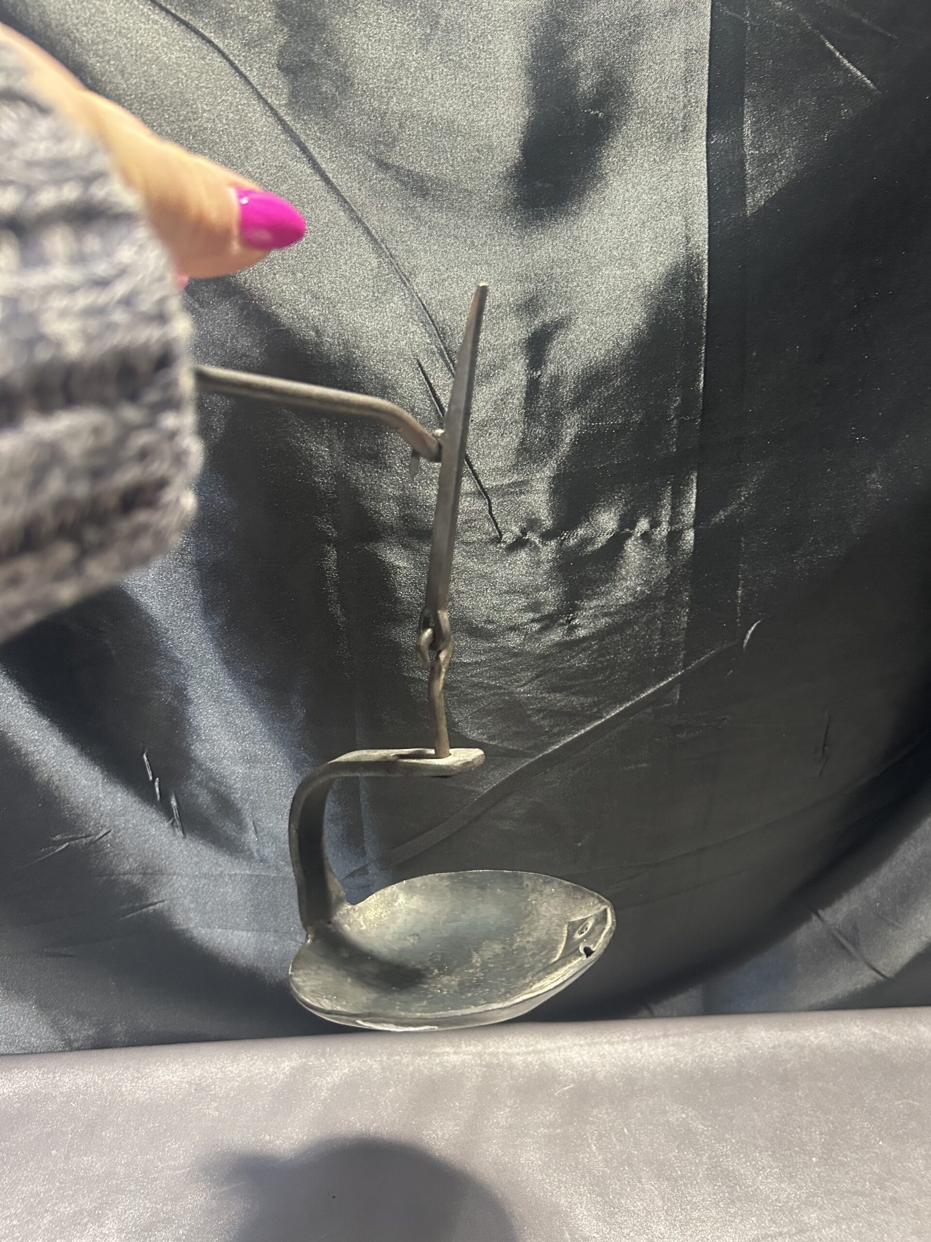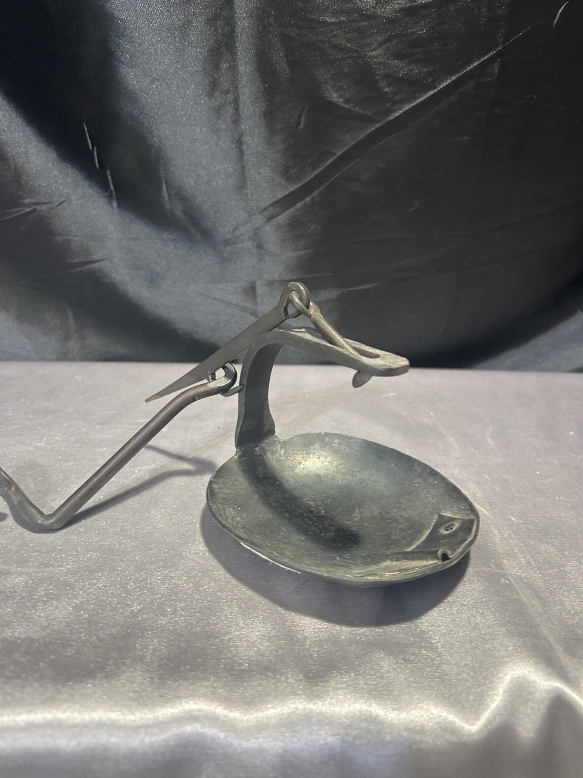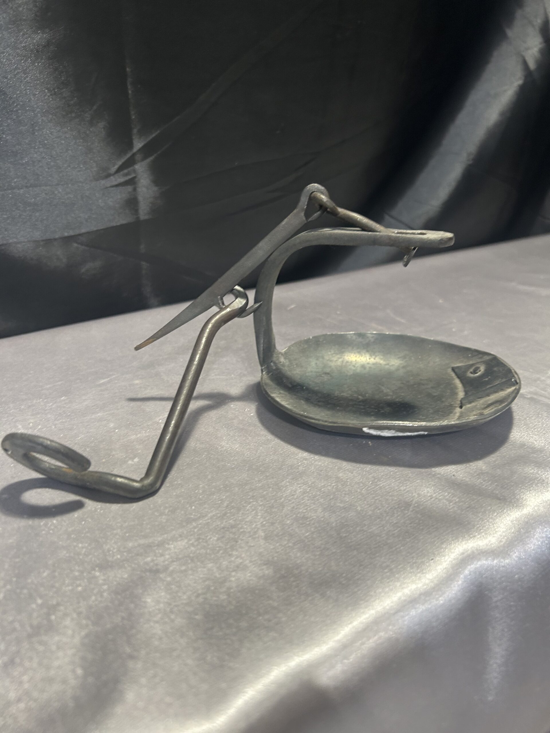 Wyjątkowy wiszący kaganek łojowy, prawdziwy antyk o unikalnym charakterze. To niezwykle rzadki przedmiot, który niegdyś służył do oświetlania wnętrz przy pomocy płonącego łoju. Jego autentyczna forma i pięknie zachowane detale czynią go cennym elementem kolekcjonerskim oraz stylową ozdobą we wnętrzach w klimacie retro, rustykalnym czy historycznym.