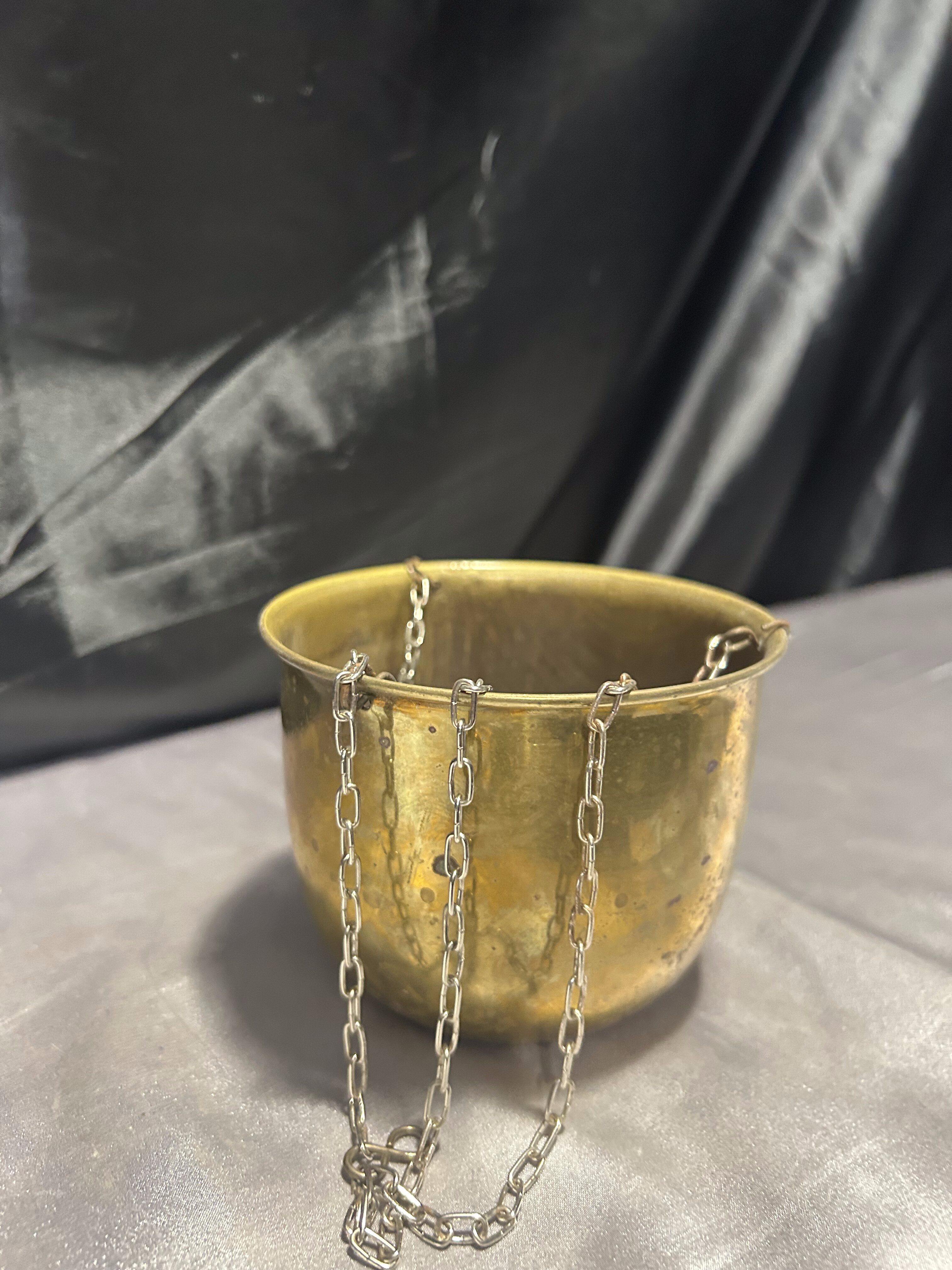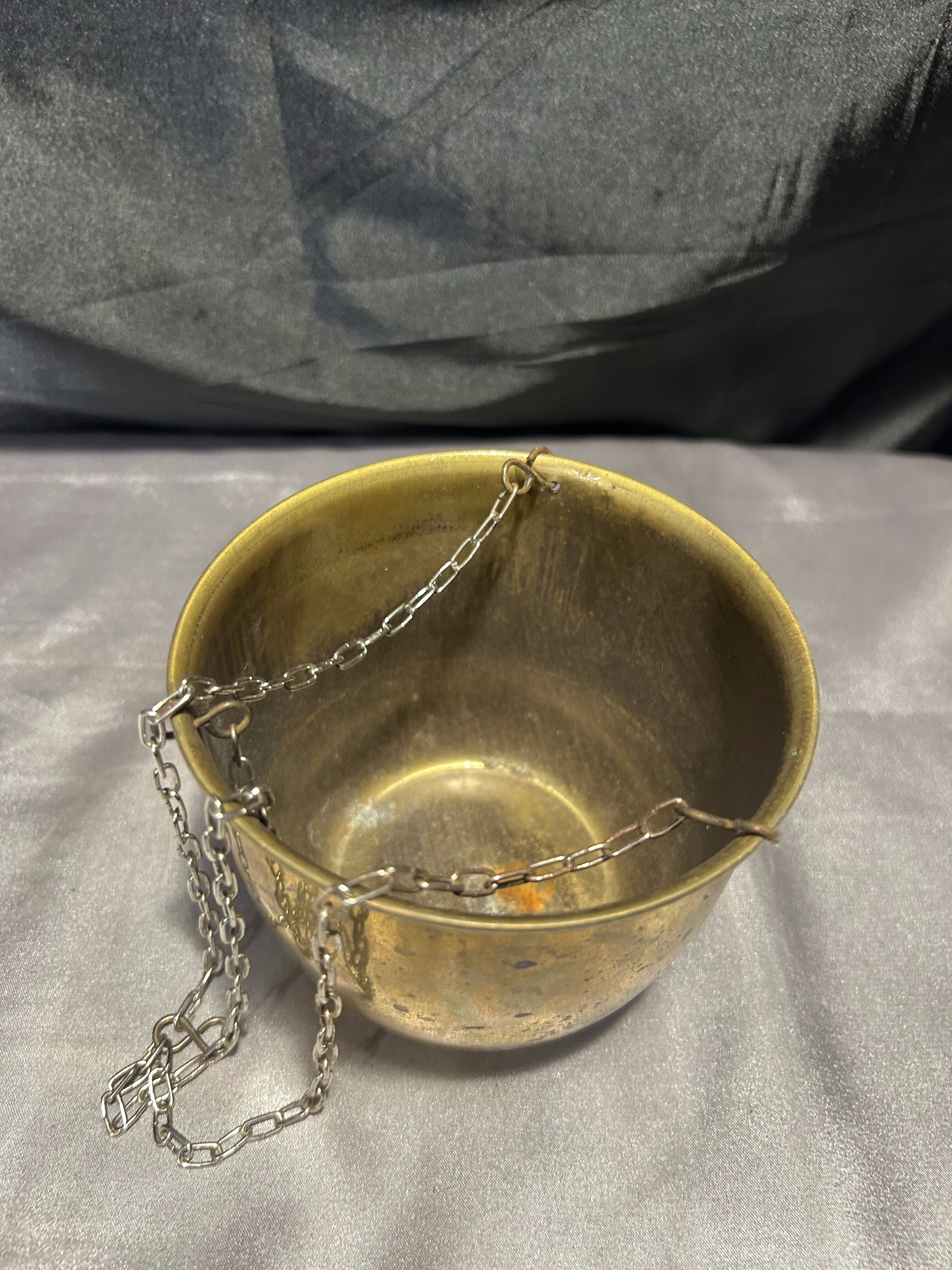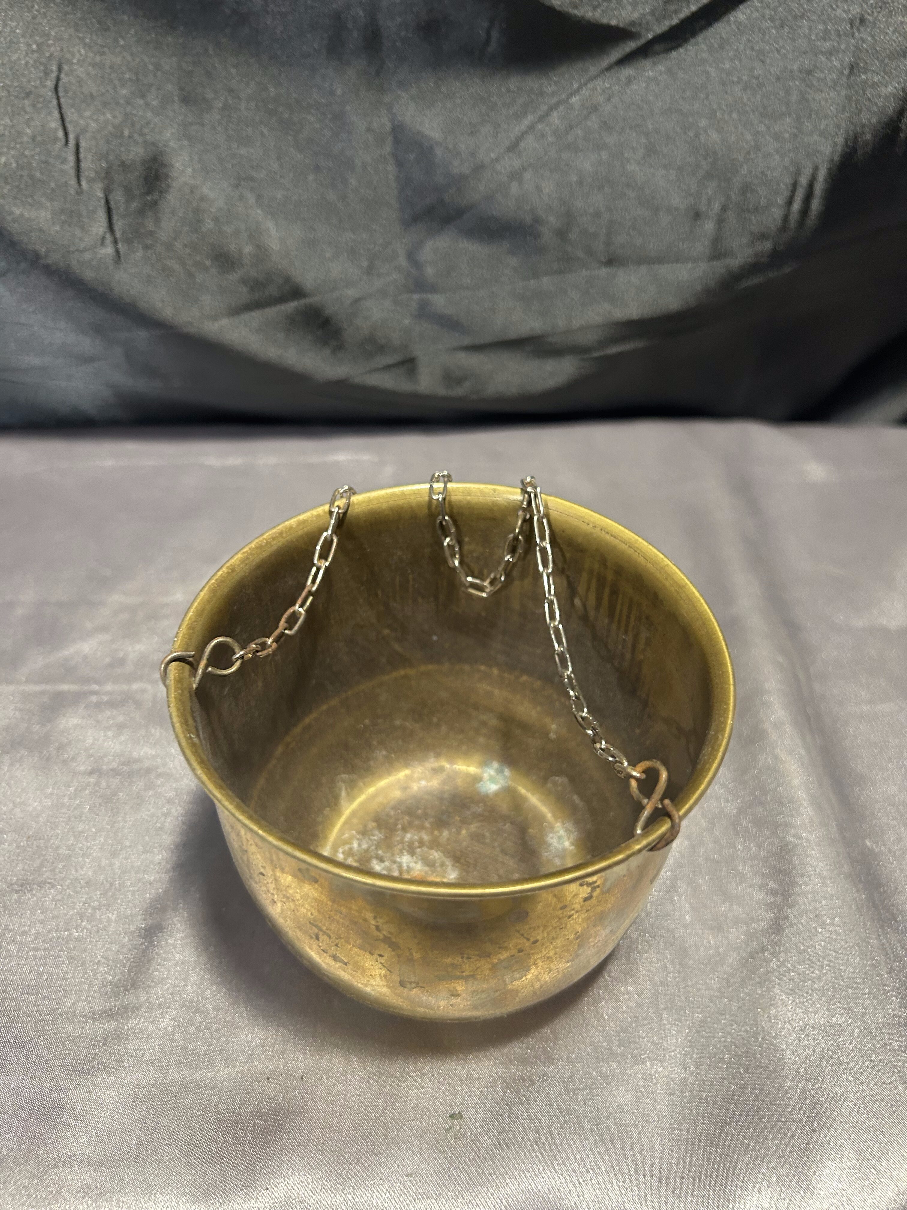 Wiszący kwietnik z mosiądzu – na łańcuszkach – klasyczny styl vintage