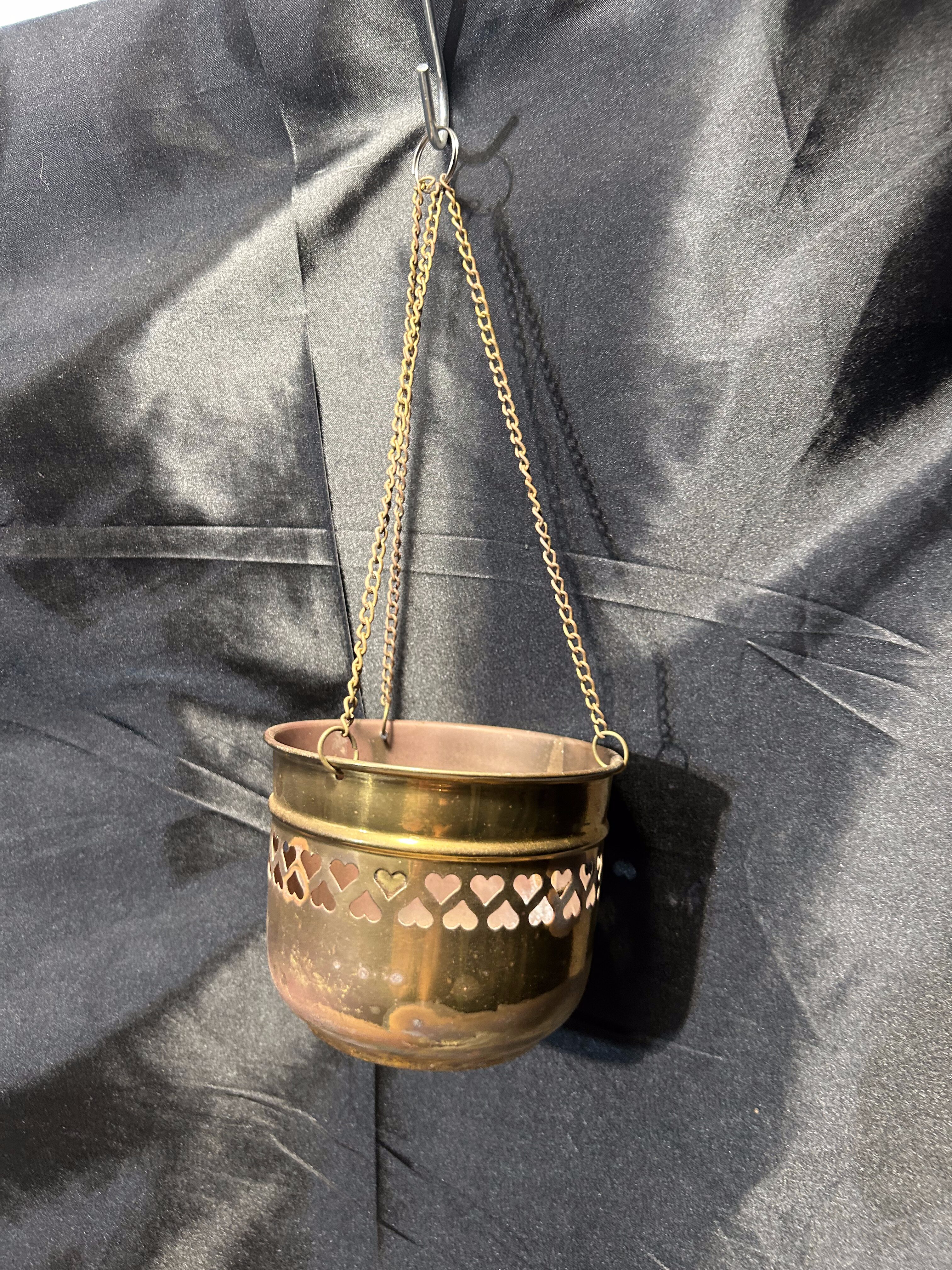 Wiszący Mosiężny Kwietnik – Ażurowe Serca – Może Służyć jako Świecznik