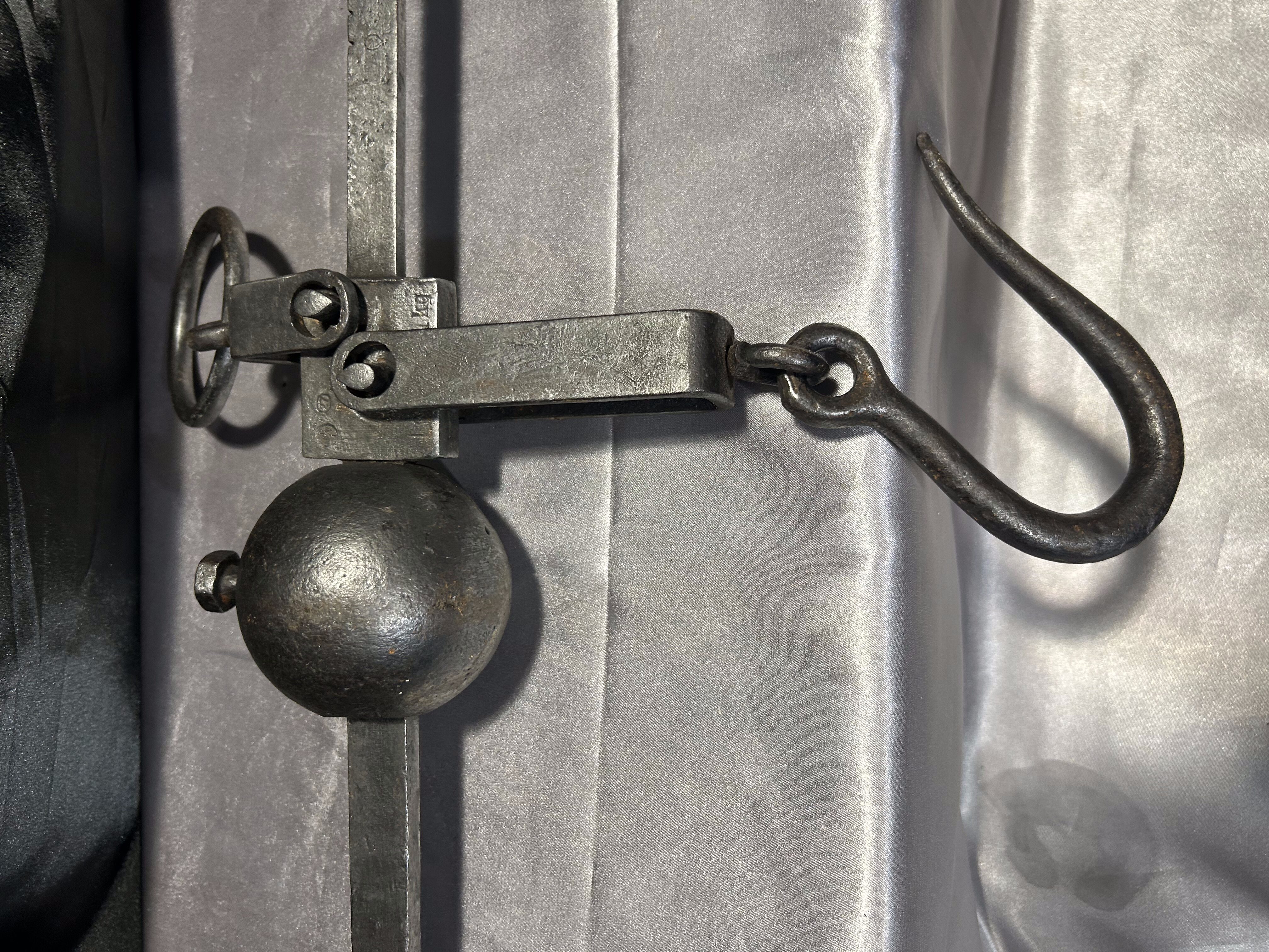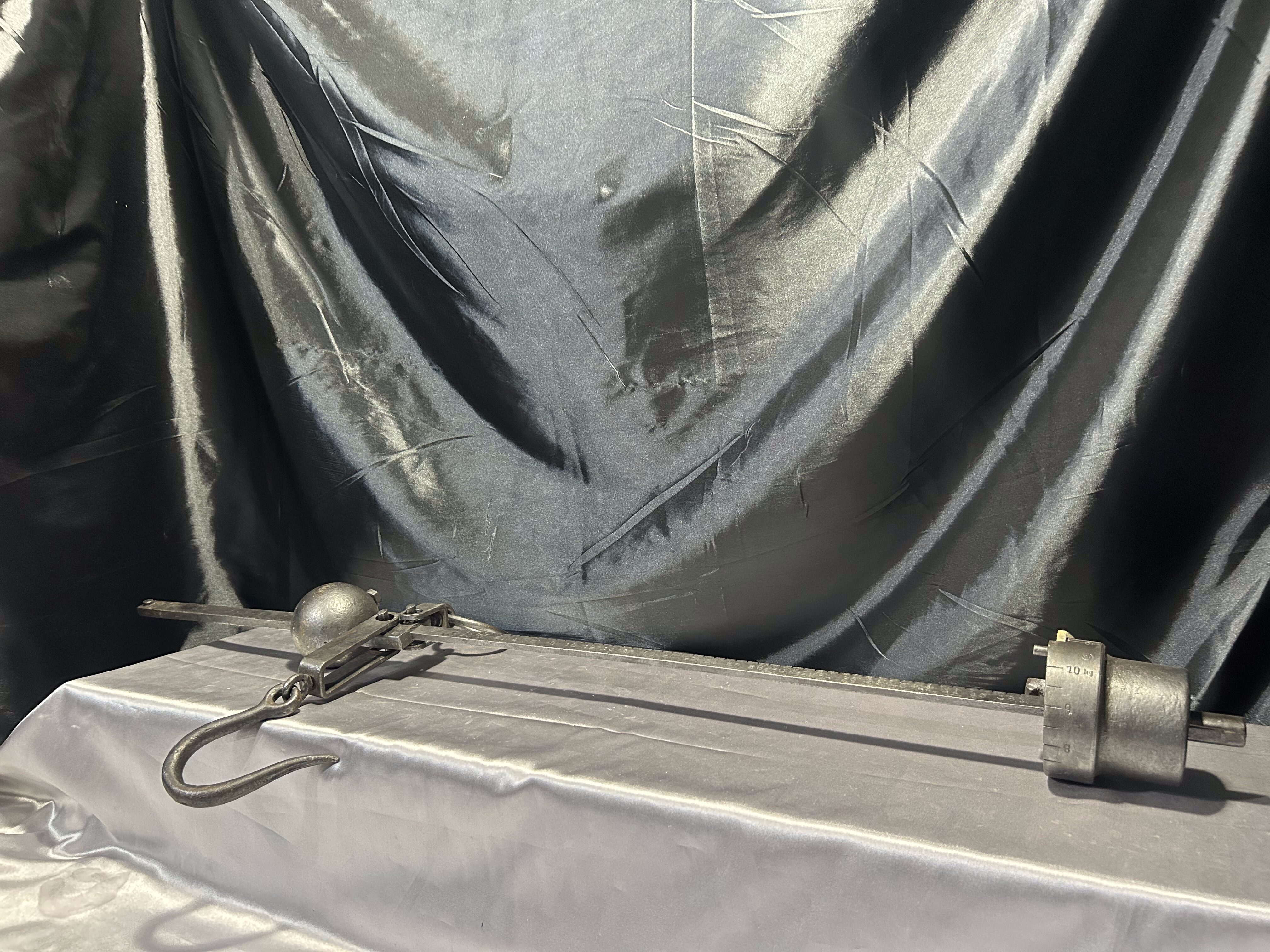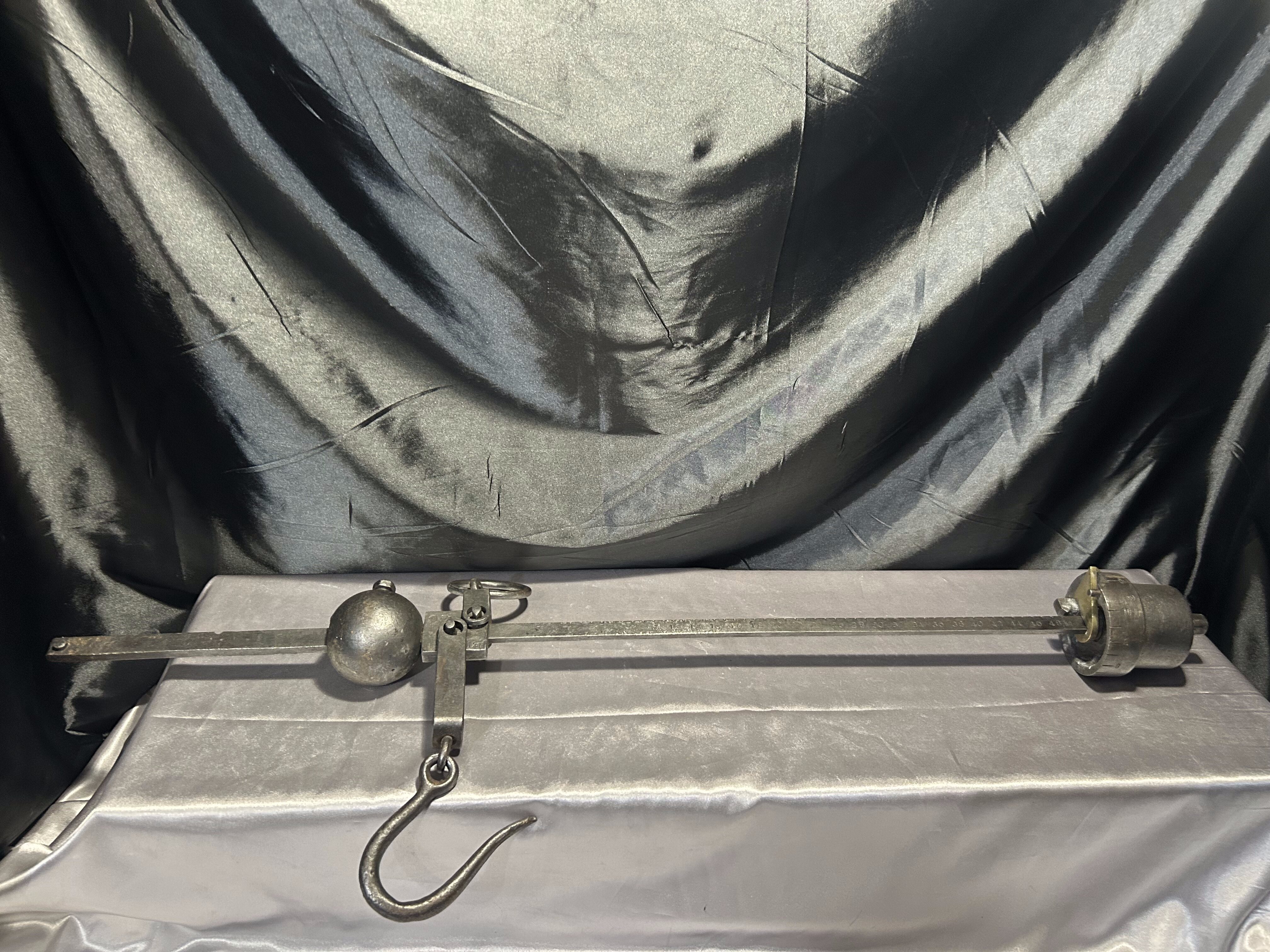 Na sprzedaż wyjątkowa, sygnowana waga bezmianowa o imponującej długości 96 cm i skali do 48 kg. Wykonana w całości z metalu, wyposażona w solidny hak oraz przesuwny ciężarek, który umożliwia dokładne określenie wagi zawieszonego przedmiotu. Ten typ wag był niegdyś powszechnie używany w handlu, rolnictwie i rzeźnictwie, a dziś stanowi niezwykle rzadki i wartościowy egzemplarz kolekcjonerski.