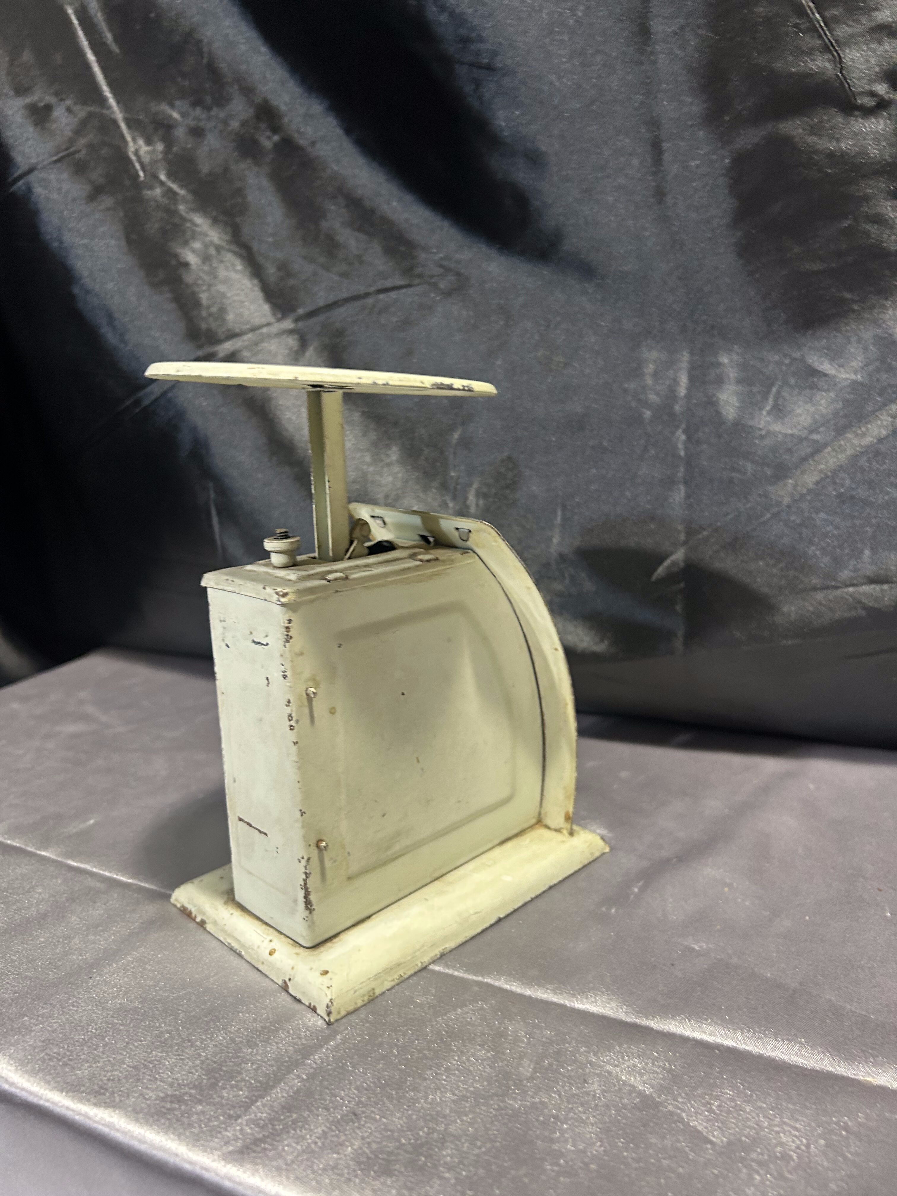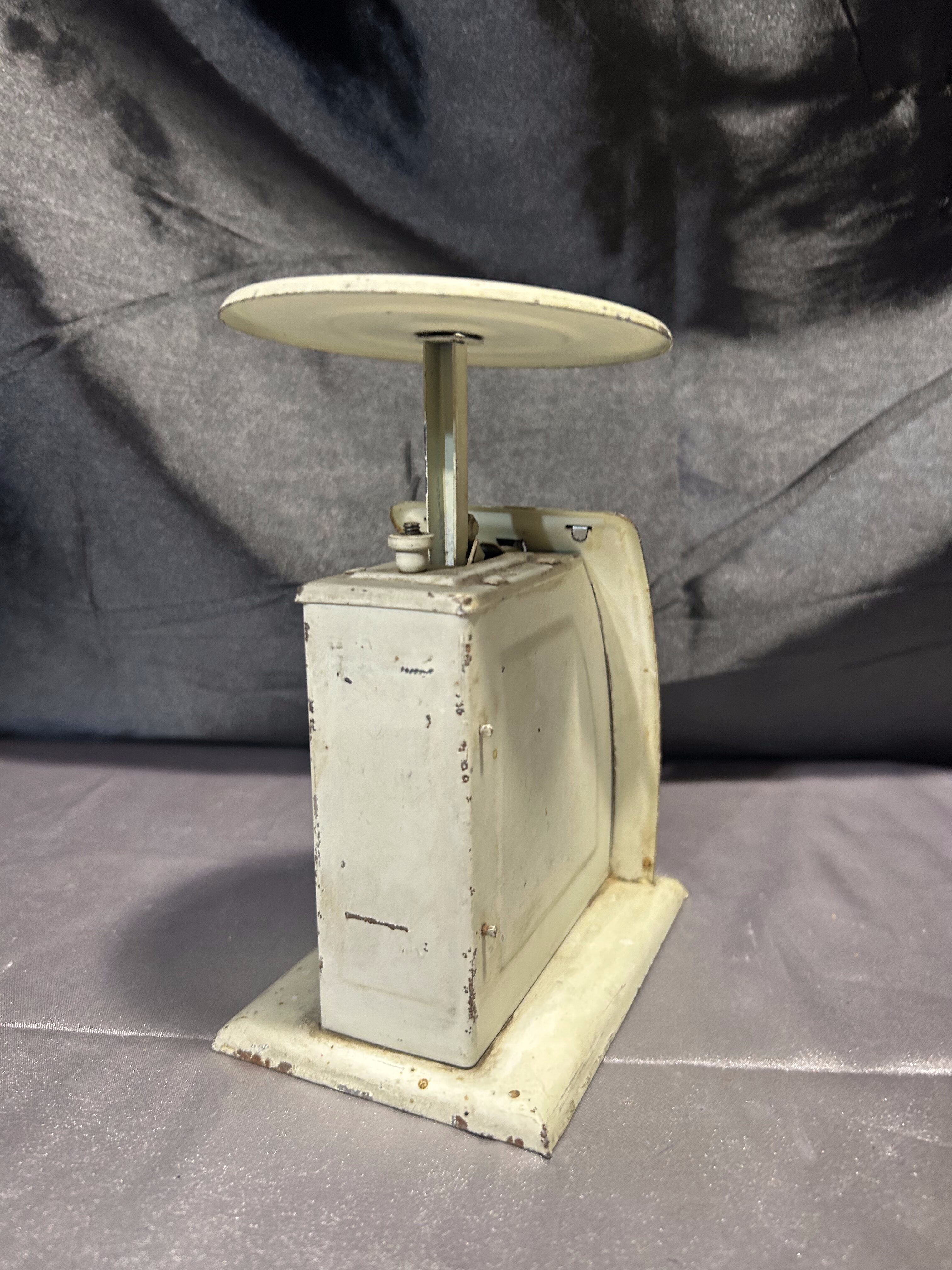 Na sprzedaż stara, metalowa waga kuchenna typu „brzuchatka”, z podziałką do 1 kg. Charakterystyczna, zaokrąglona forma i kremowy kolor nadają jej wyjątkowego uroku. To doskonały wybór dla miłośników stylu vintage, retro oraz wnętrz z duszą. Zachowane ślady użytkowania tylko podkreślają jej autentyczność.