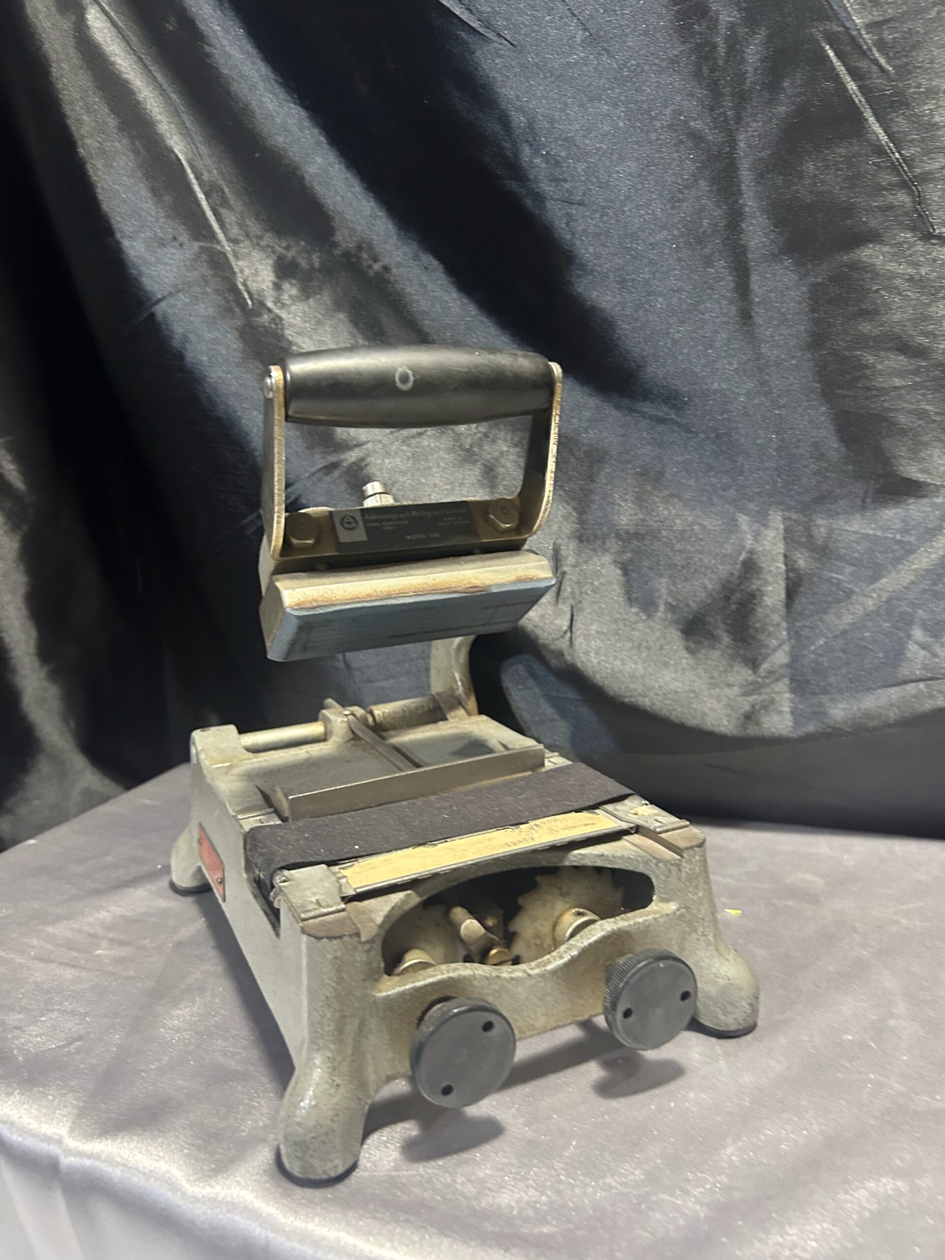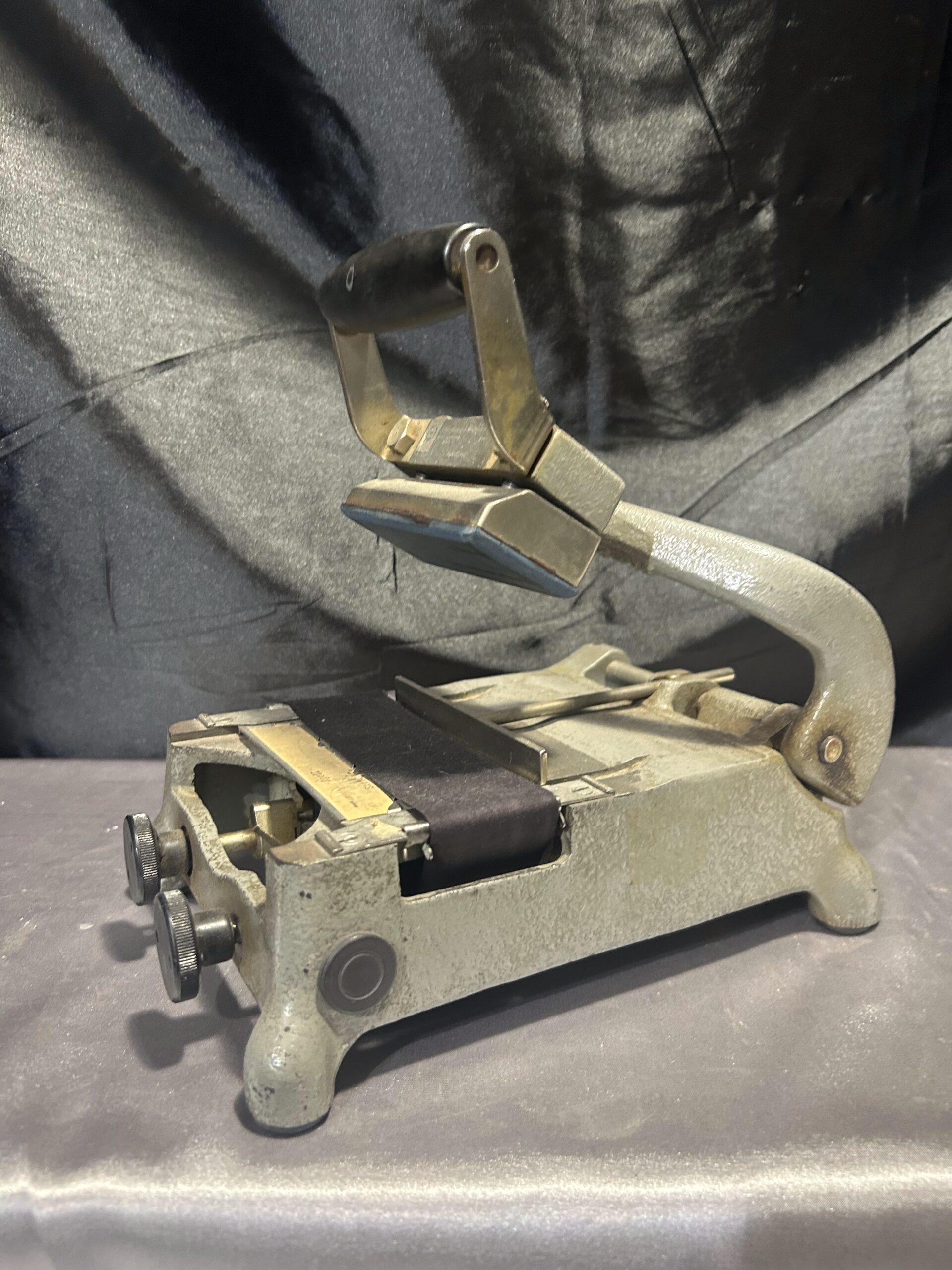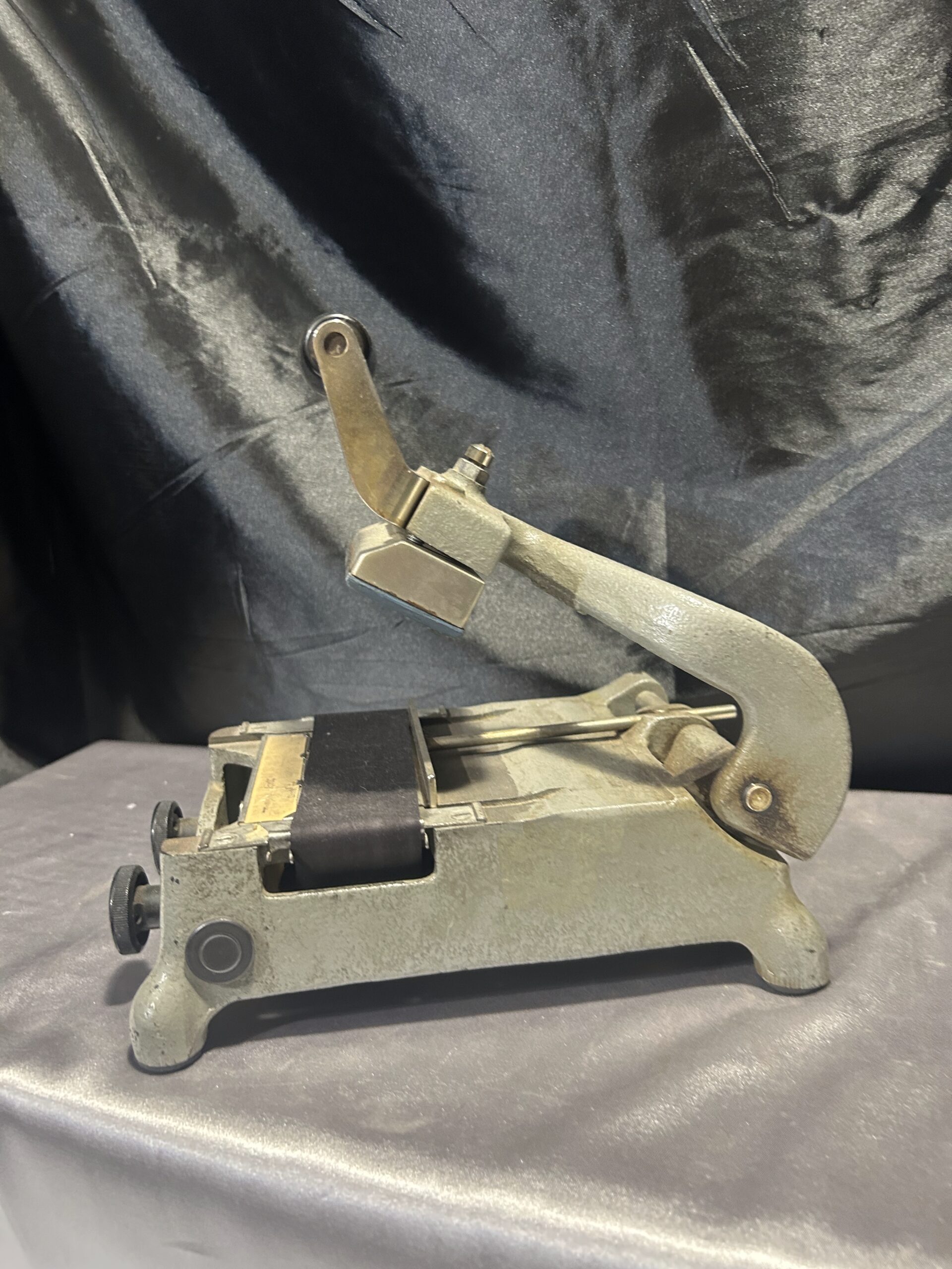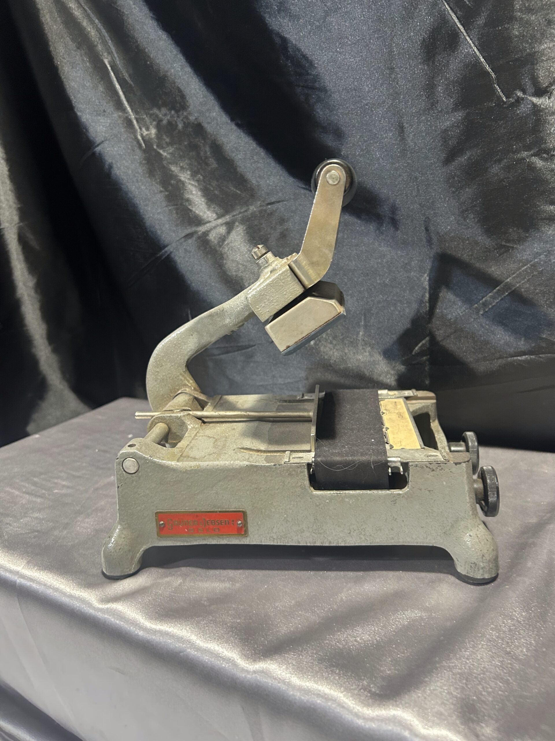 To zabytkowe urządzenie to niezwykła pamiątka z czasów, gdy tradycyjna poczta odgrywała kluczową rolę w komunikacji. Dzięki precyzyjnemu mechanizmowi pozwalało na szybkie nanoszenie stempli, co znacznie ułatwiało obsługę dużej ilości przesyłek. Dziś podobne egzemplarze można znaleźć w muzeach, jako świadectwo rozwoju technologii biurowej i pocztowej. Świetny wybór dla kolekcjonerów, pasjonatów historii lub dekoratorów wnętrz w stylu retro.