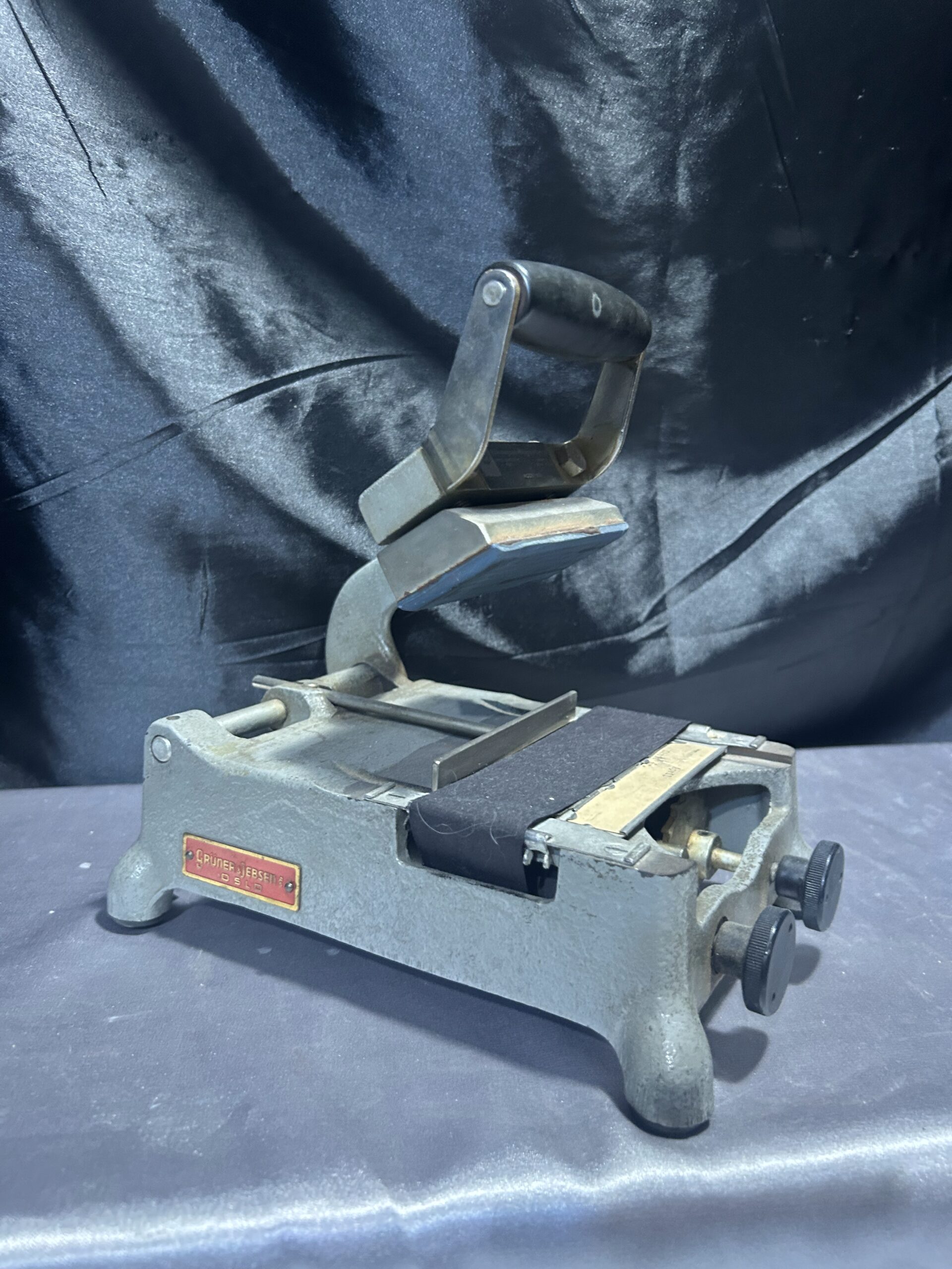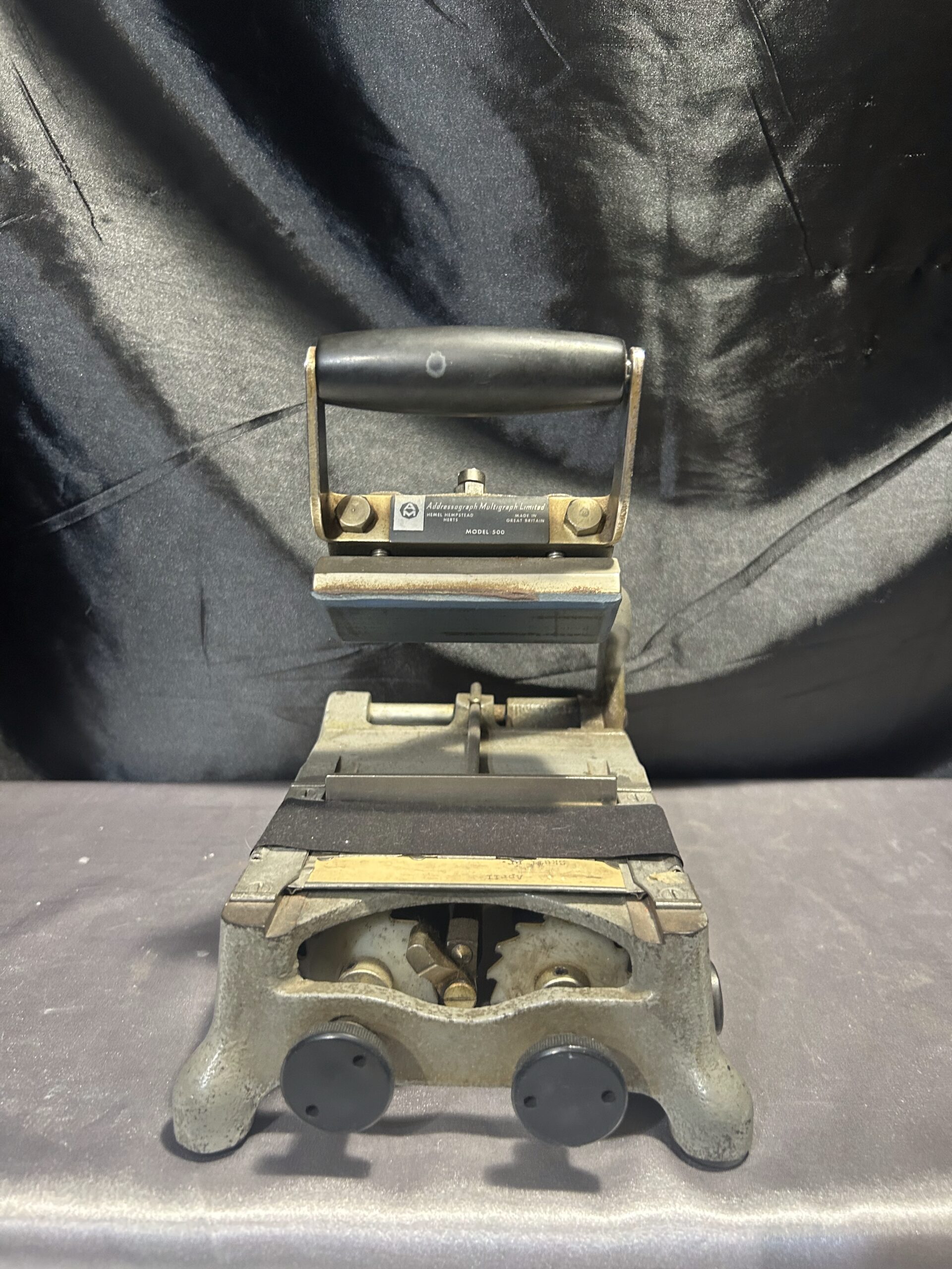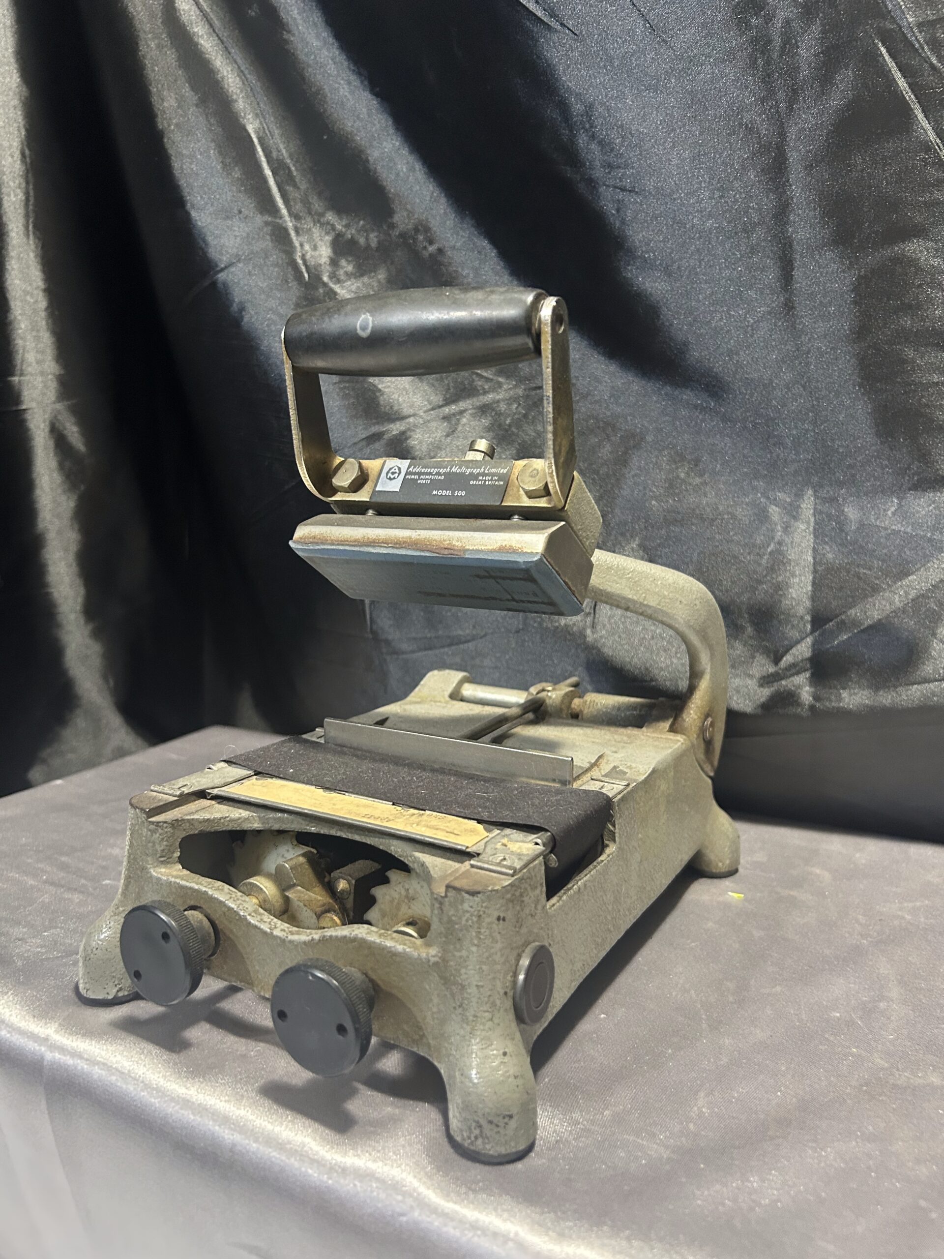Unikalne historyczne urządzenie do stemplowania listów, wyprodukowane przez Grüner & Jebsen Oslo. Maszyna tego typu była wykorzystywana do automatycznego stemplowania korespondencji w urzędach pocztowych i dużych firmach, usprawniając proces nadawania przesyłek. Dzięki precyzyjnemu mechanizmowi umożliwiała szybkie i dokładne nanoszenie stempli pocztowych, eliminując konieczność ręcznego oznaczania listów.