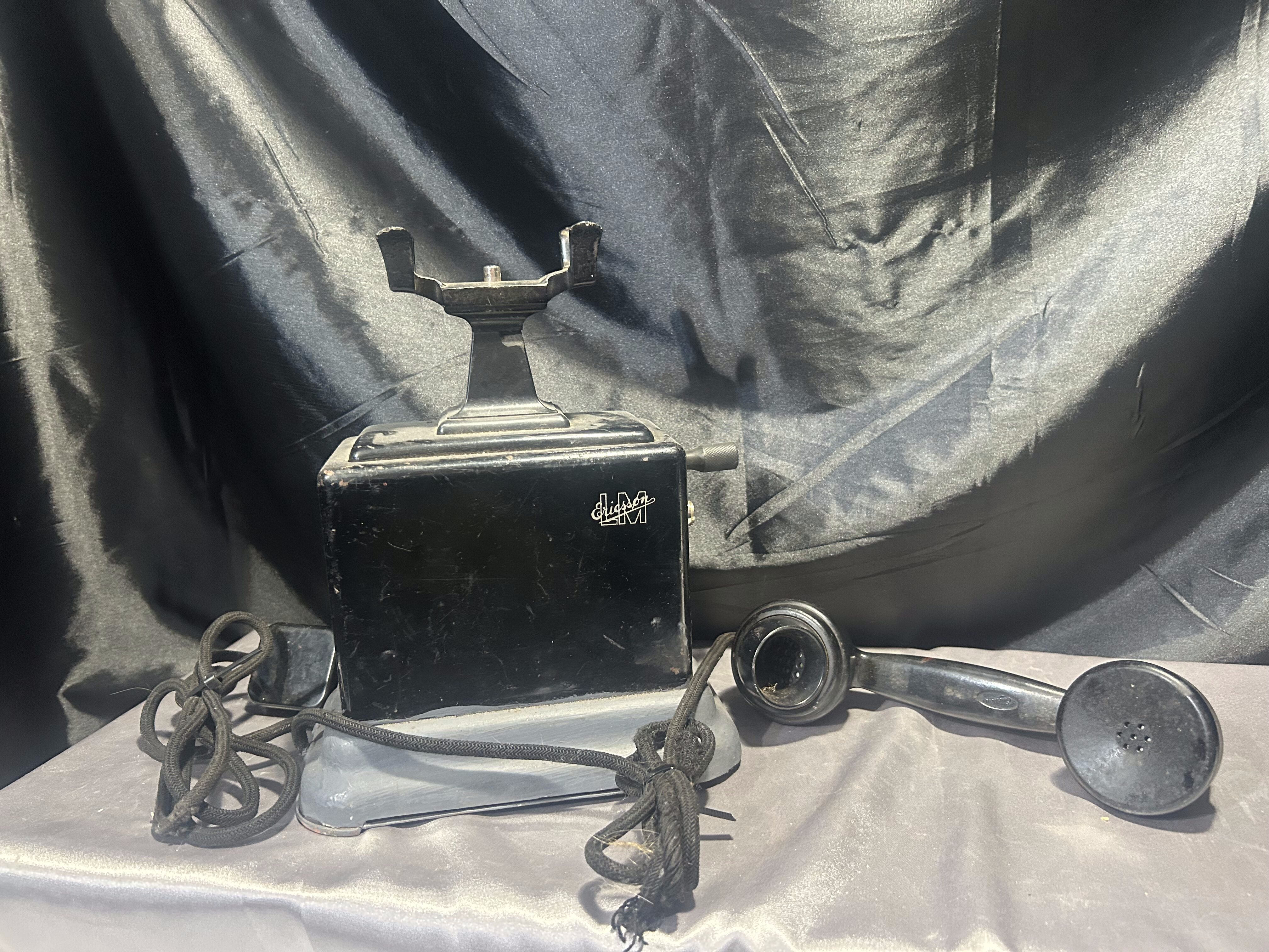 Zabytkowy Telefon na Korbkę LM Ericsson – Sygnowany Oryginał z Epoki – Czarny, 5,2 kg