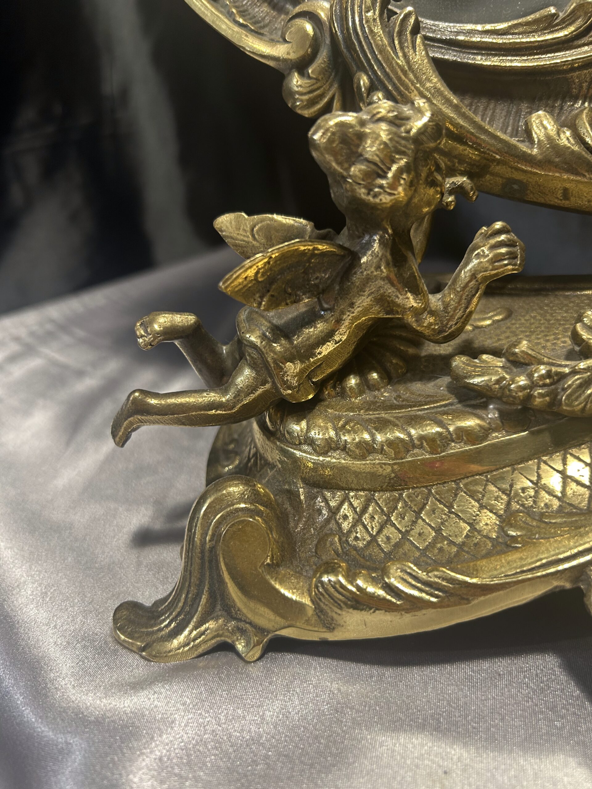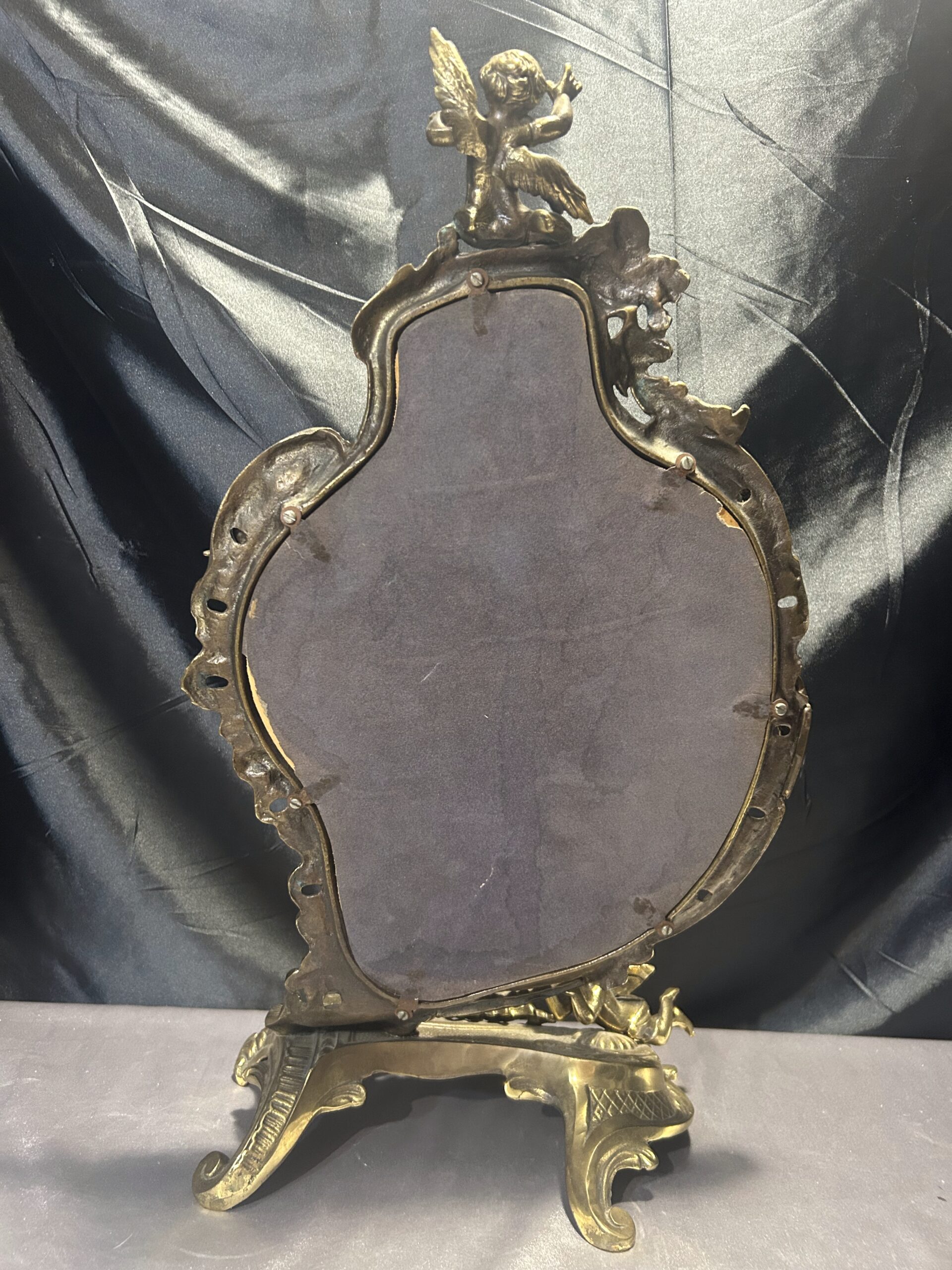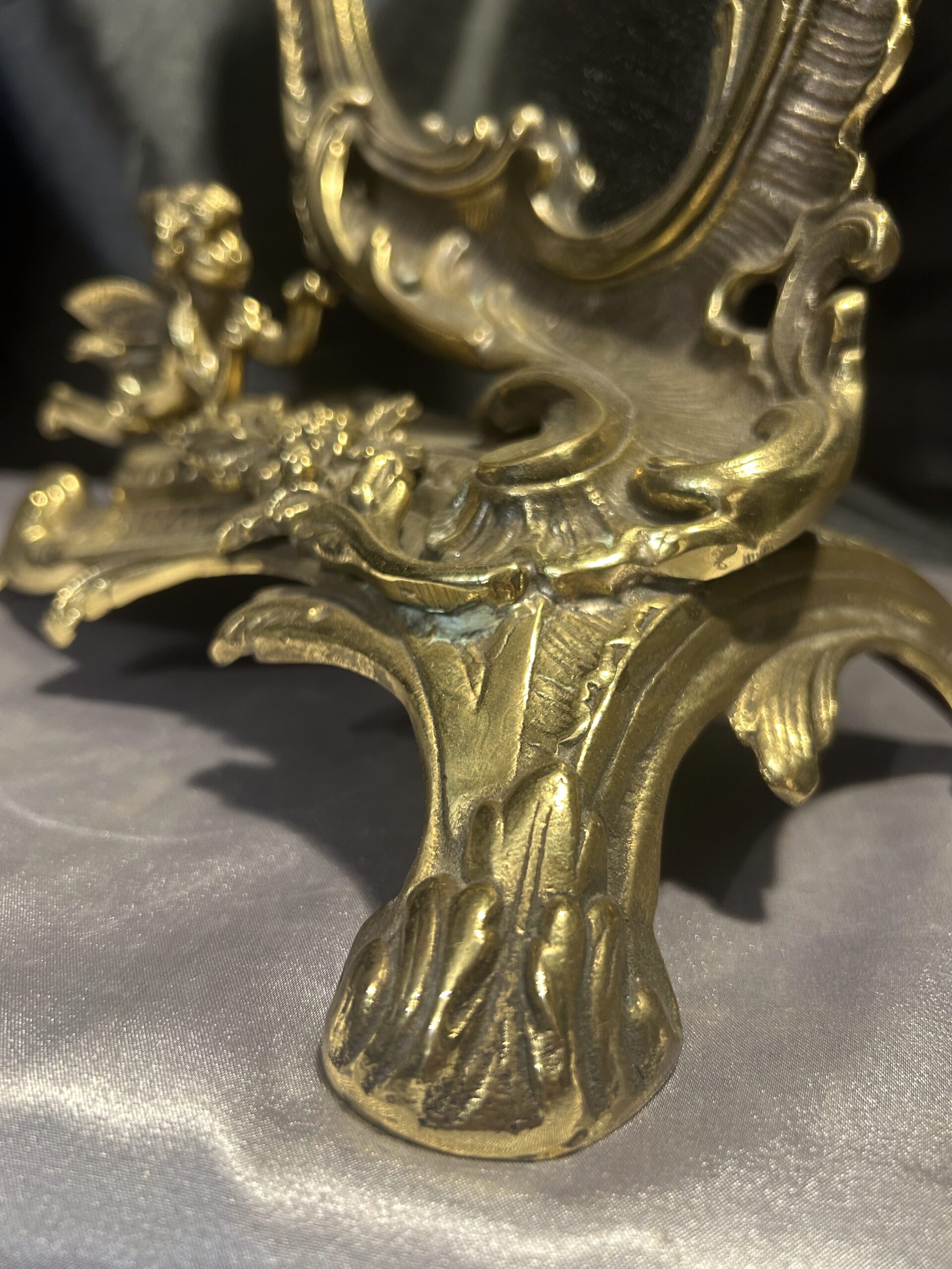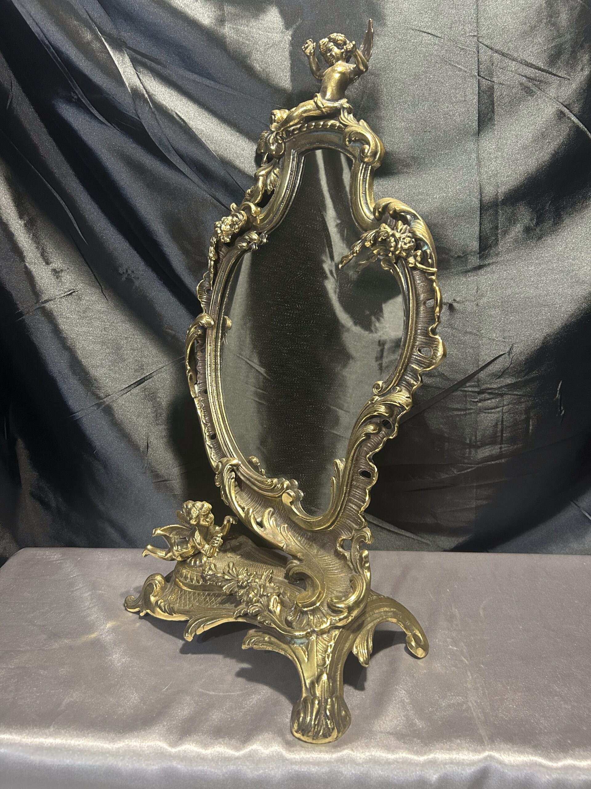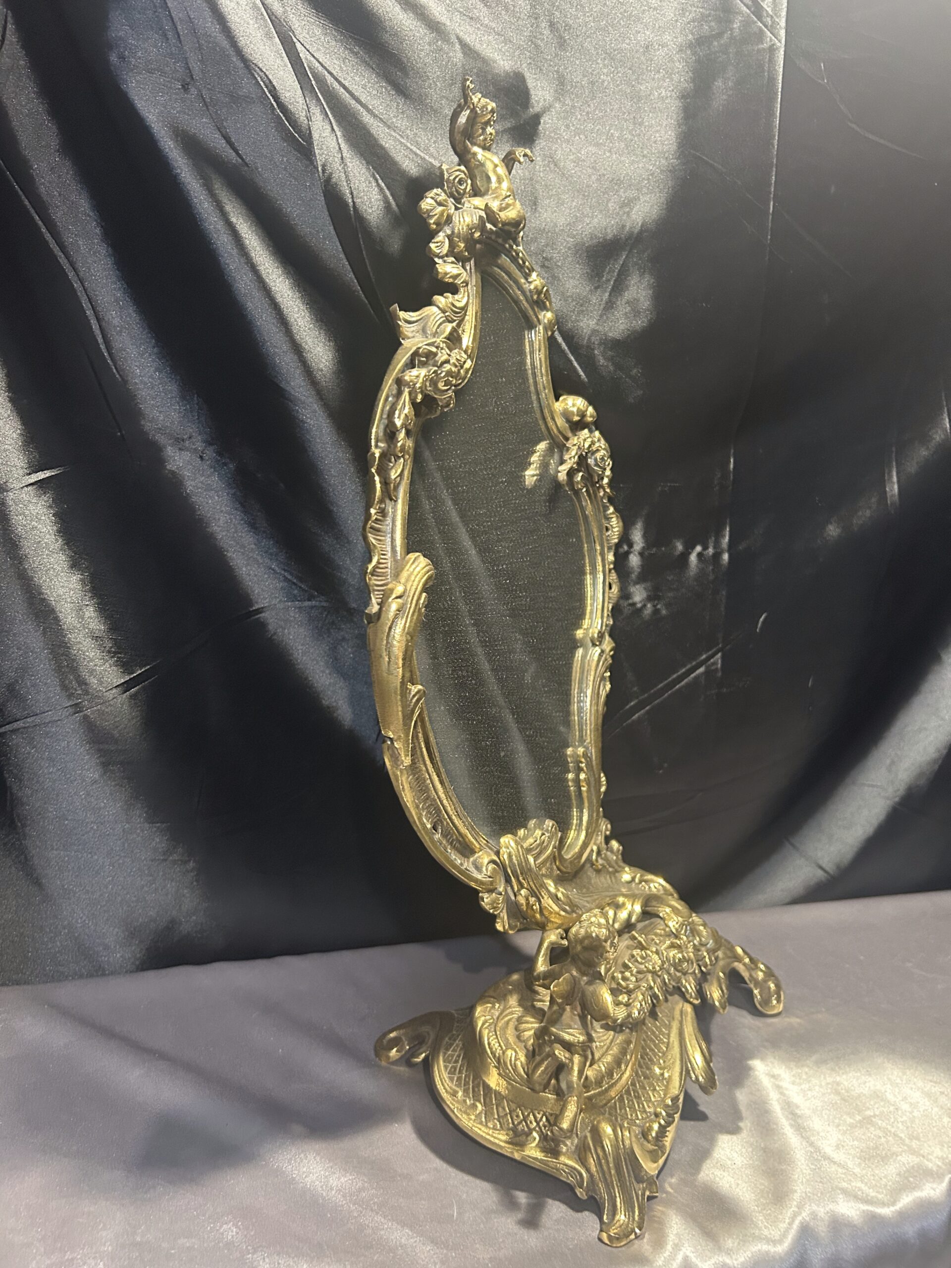 Zdobione Lustro z Mosiądzu – Antyk z Motywem Aniołków i Kwiatów