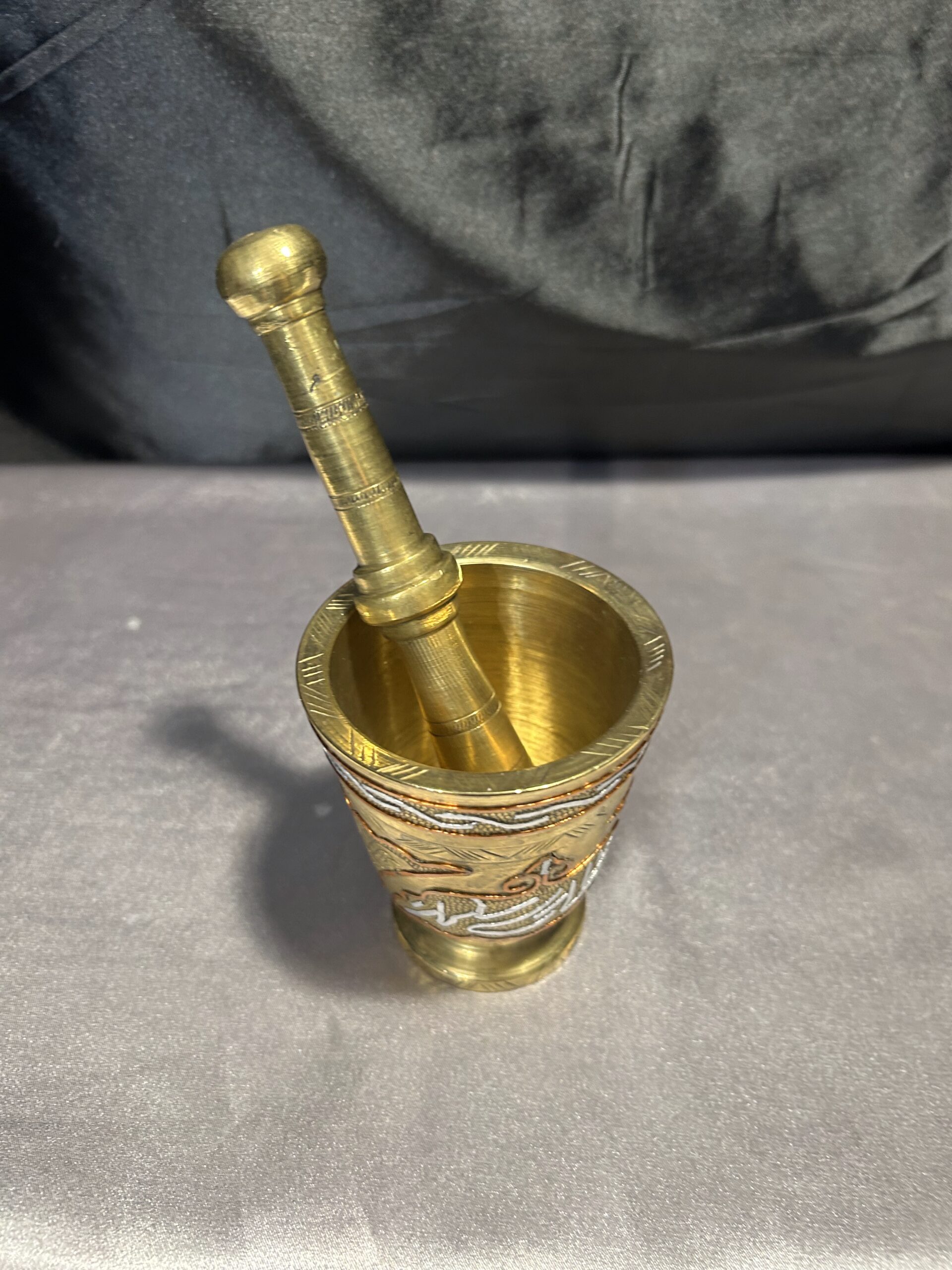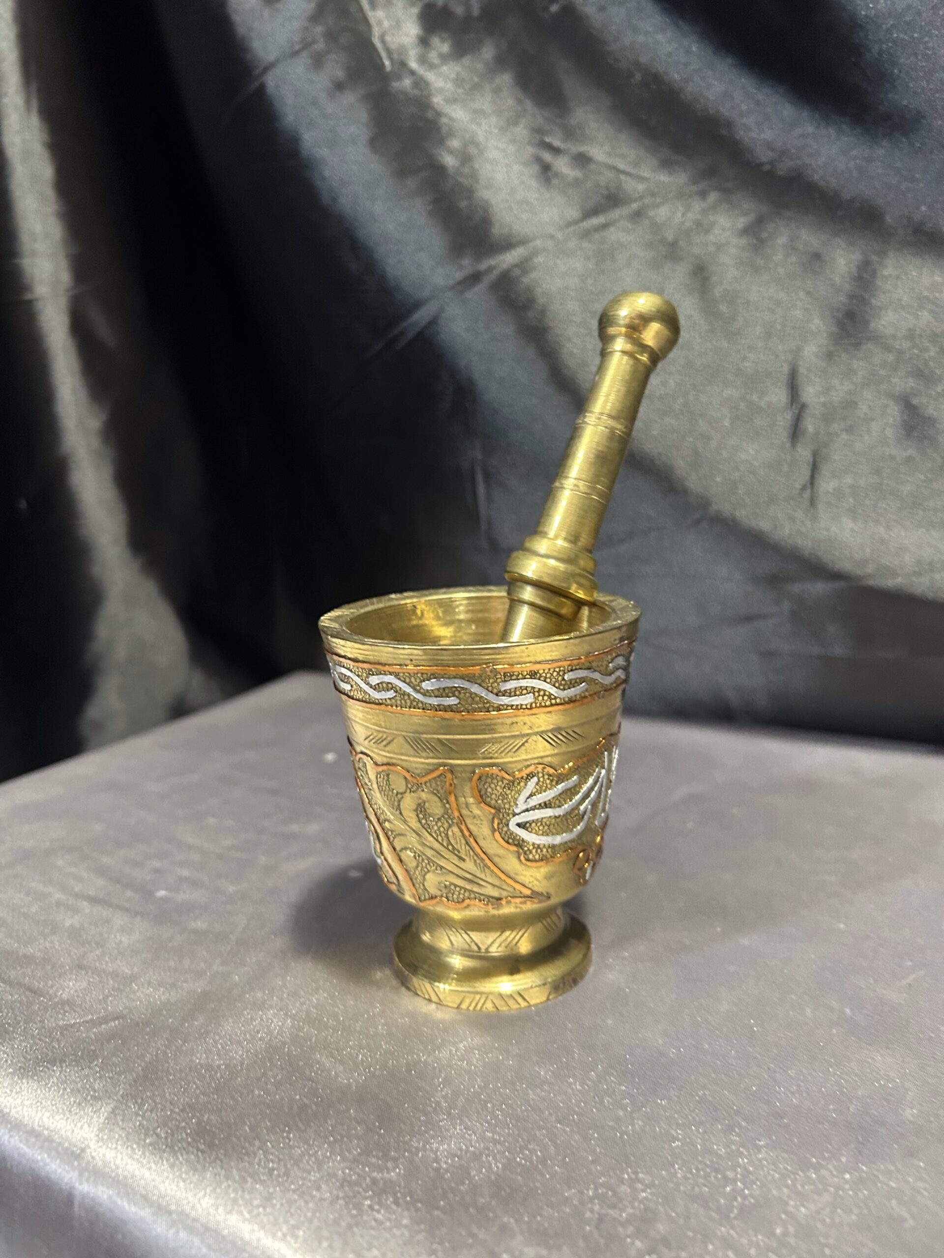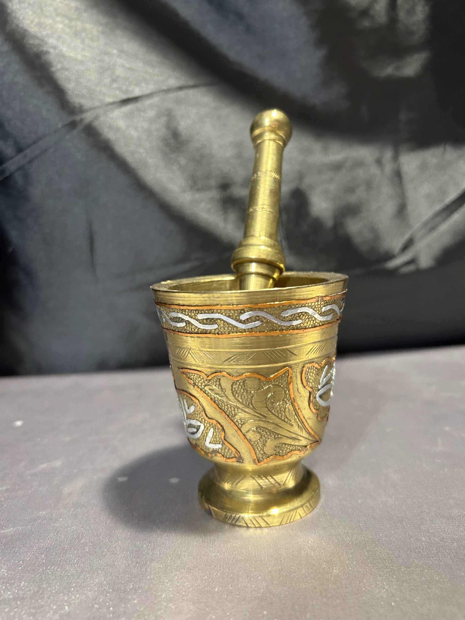 Mosiężny Moździerz z Tłuczkiem – Zdobiony, 197 g