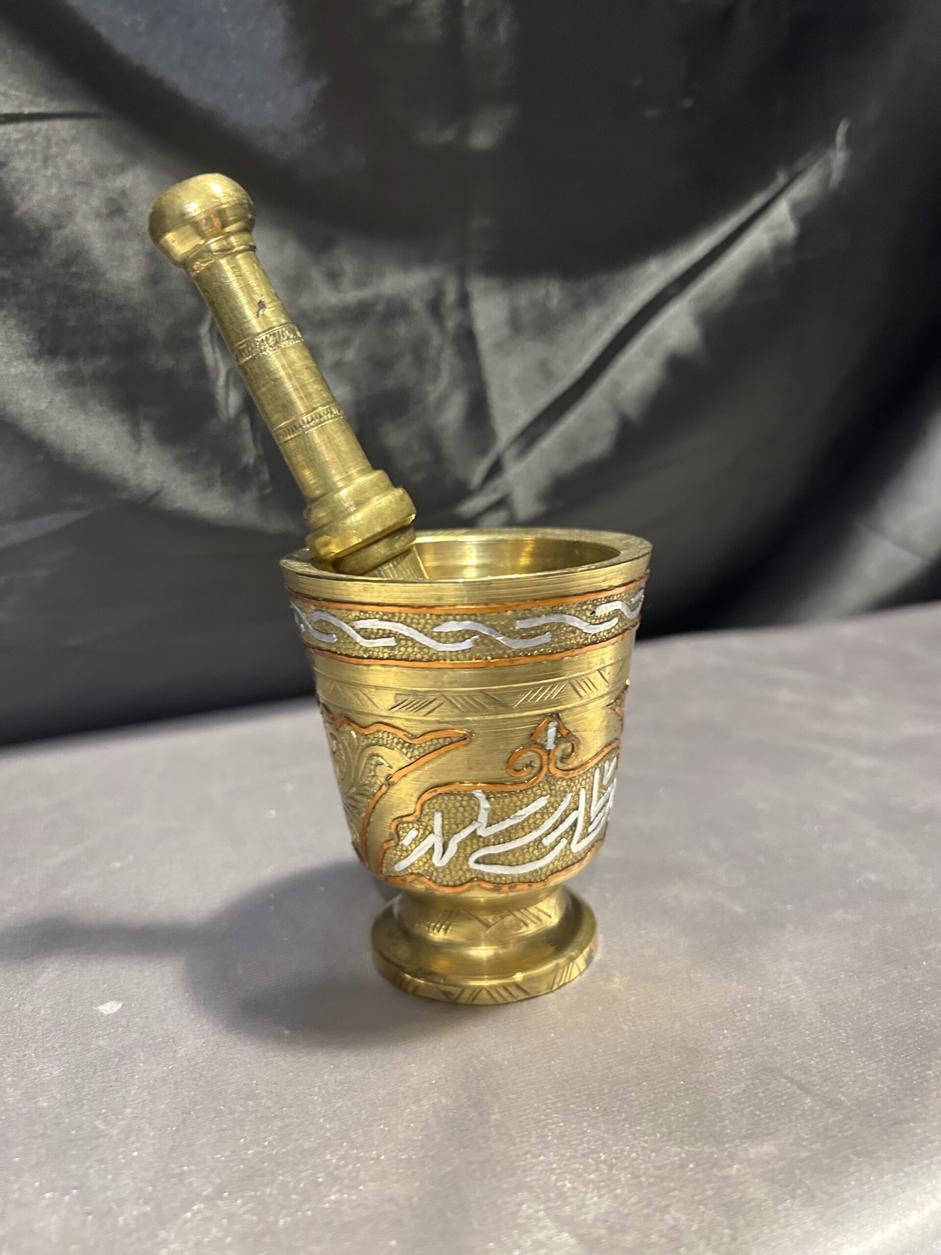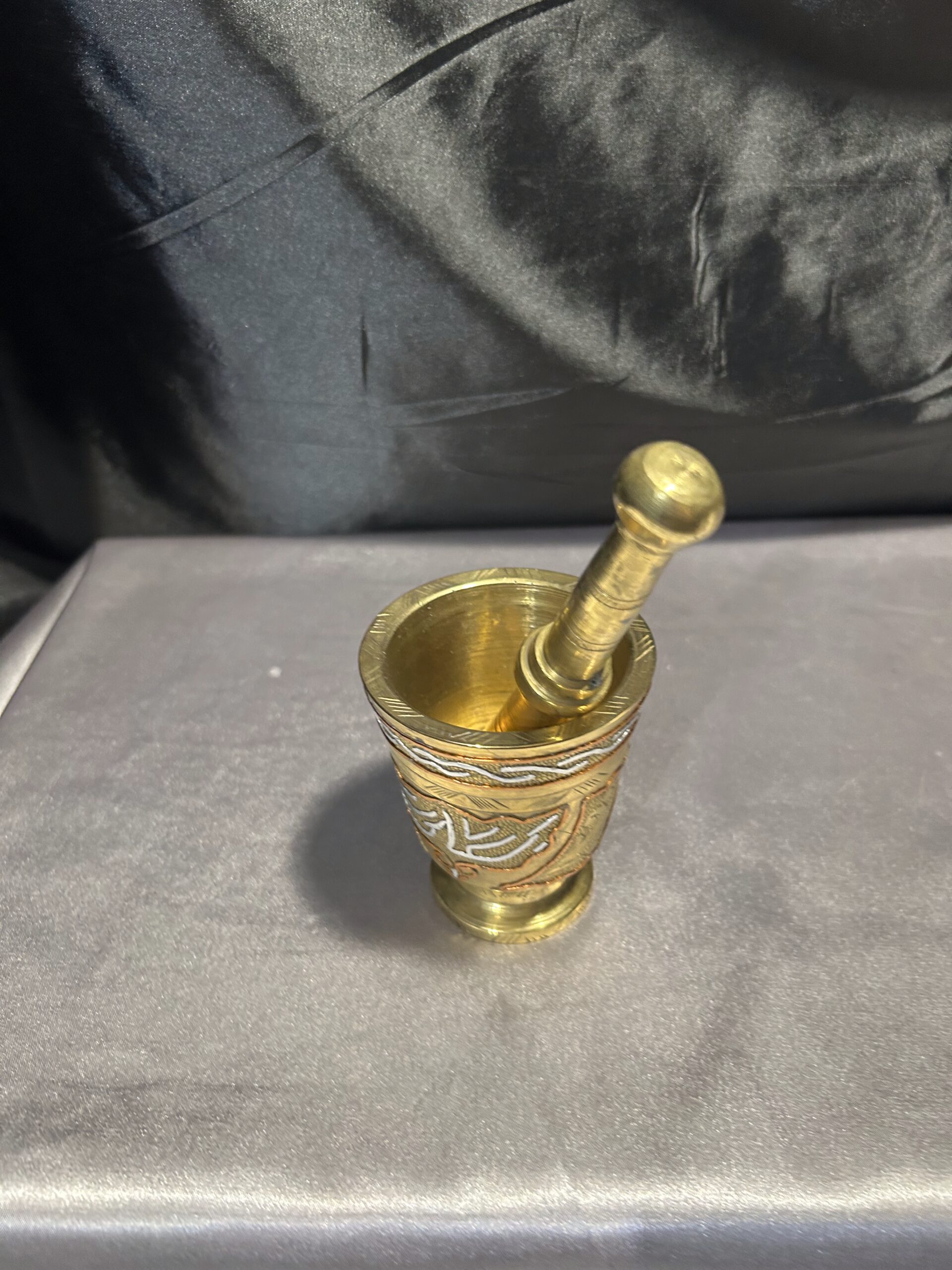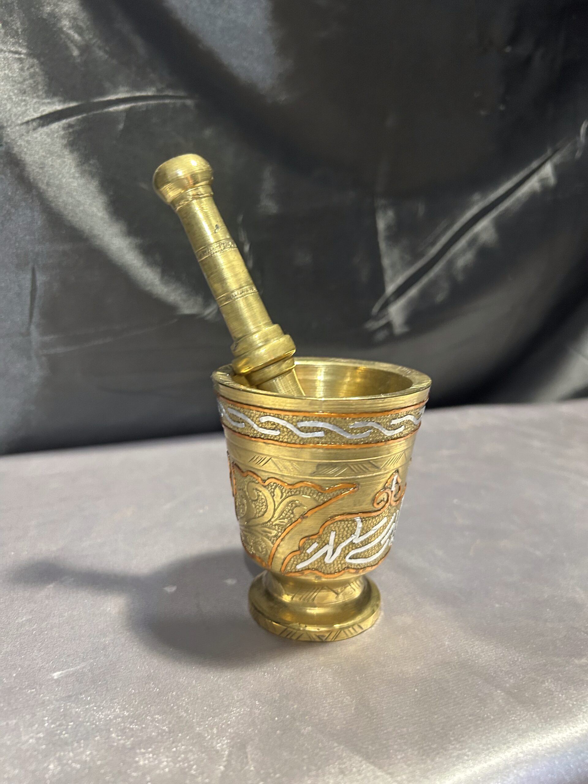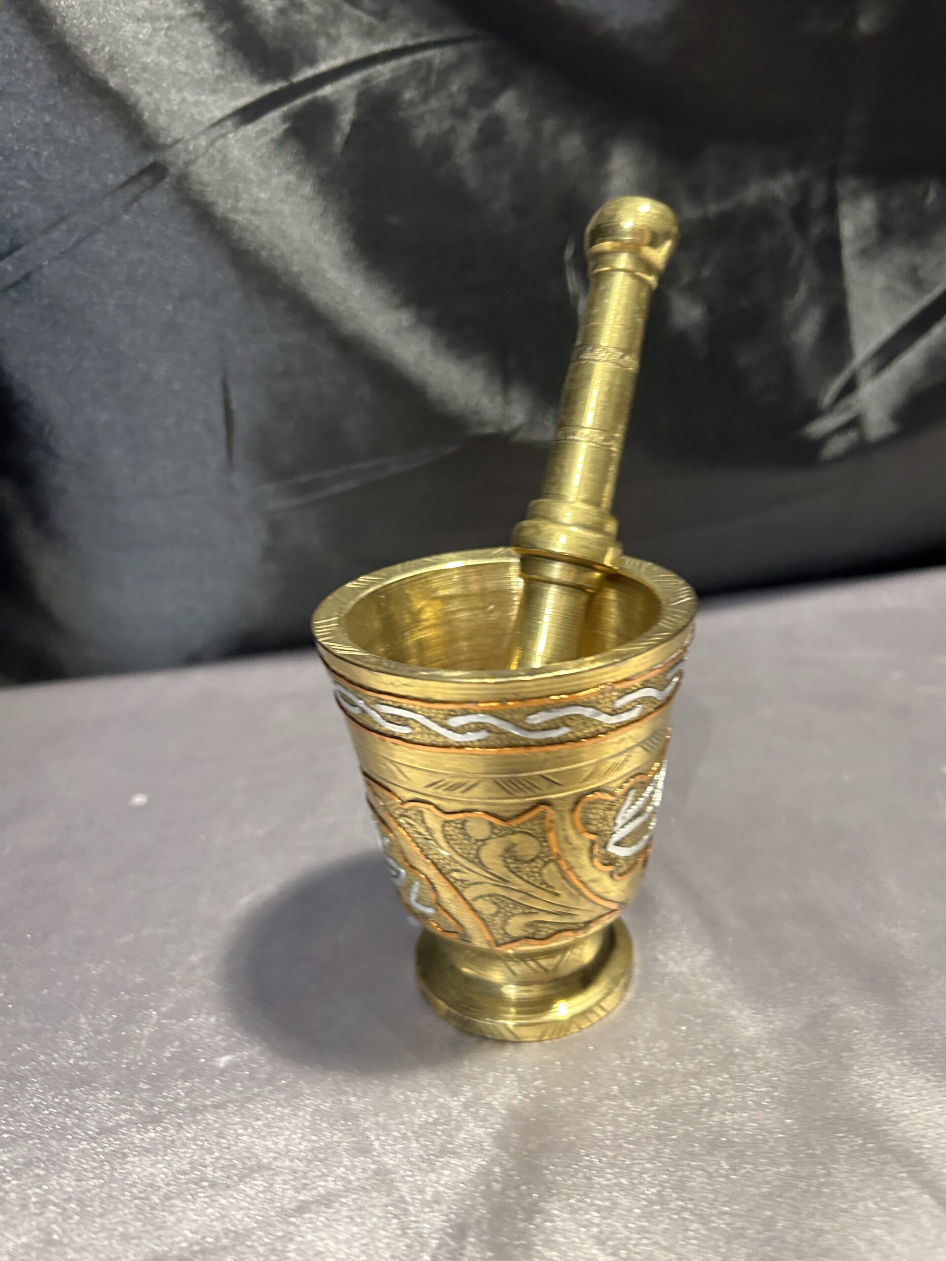 Mosiężny Moździerz z Tłuczkiem – Zdobiony, 197 g