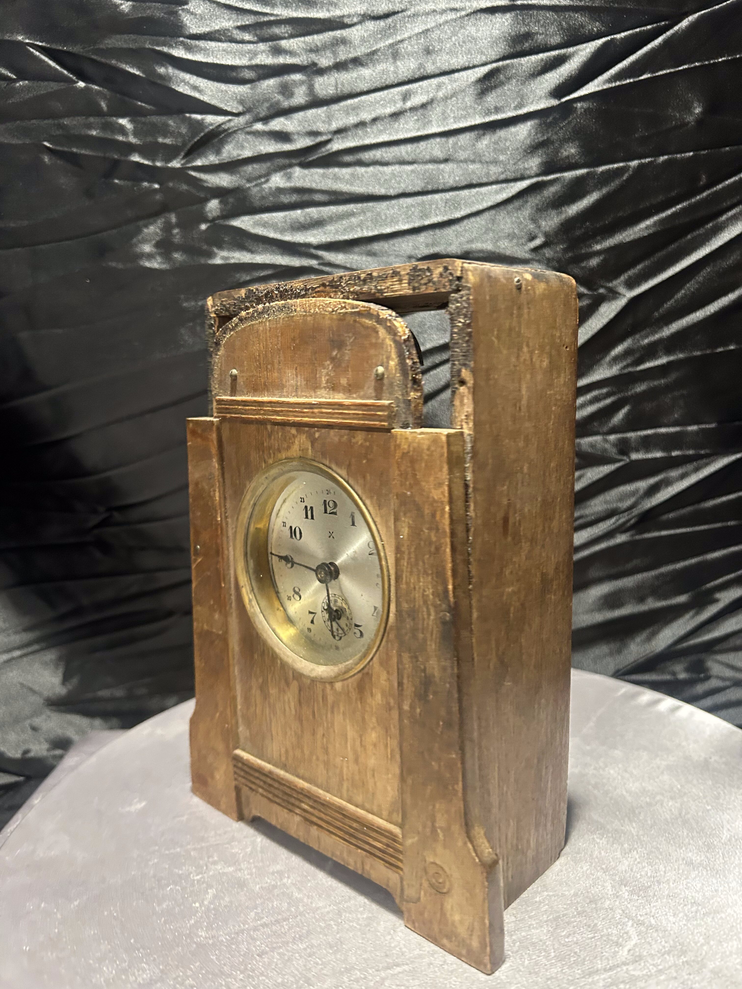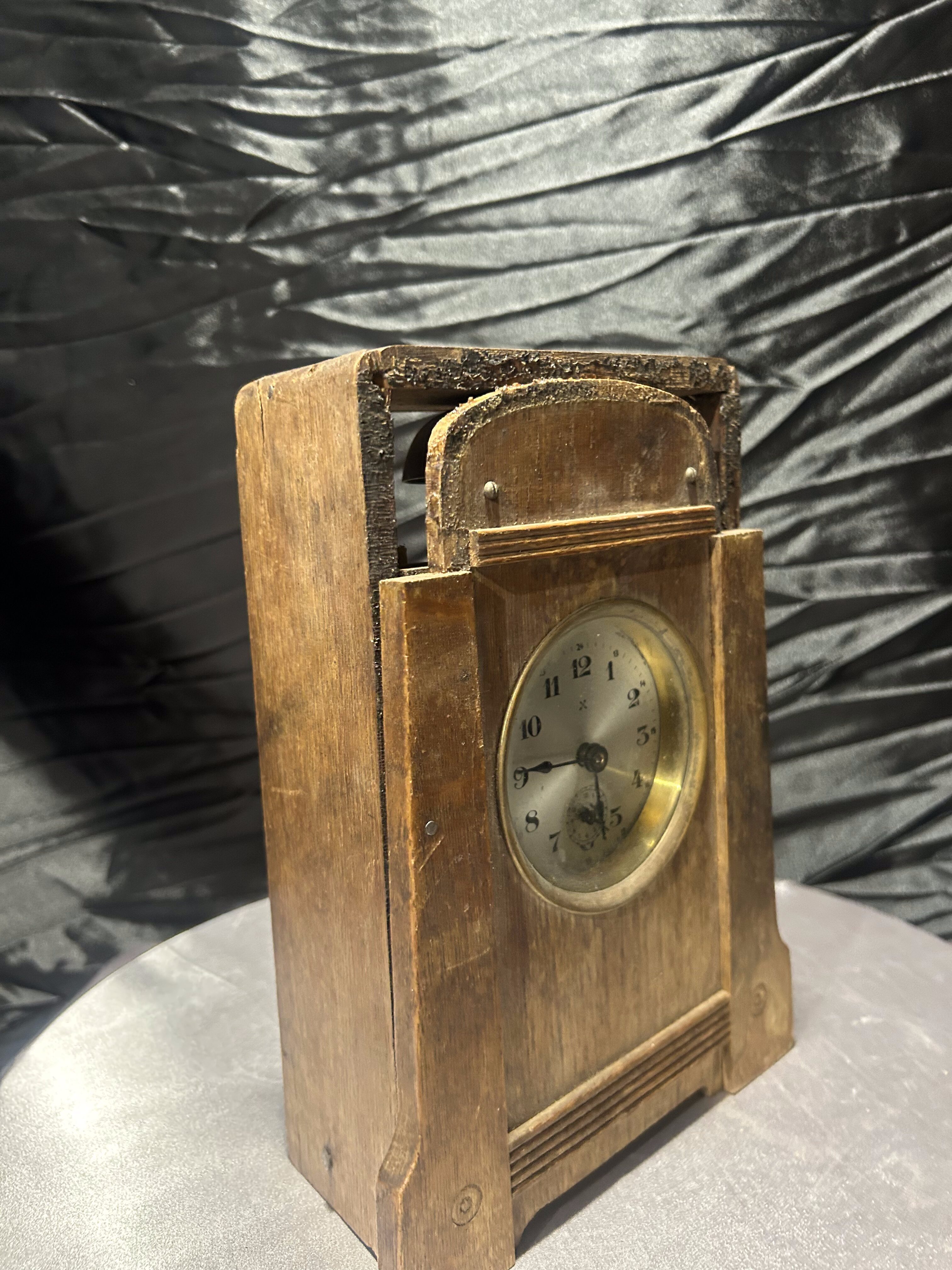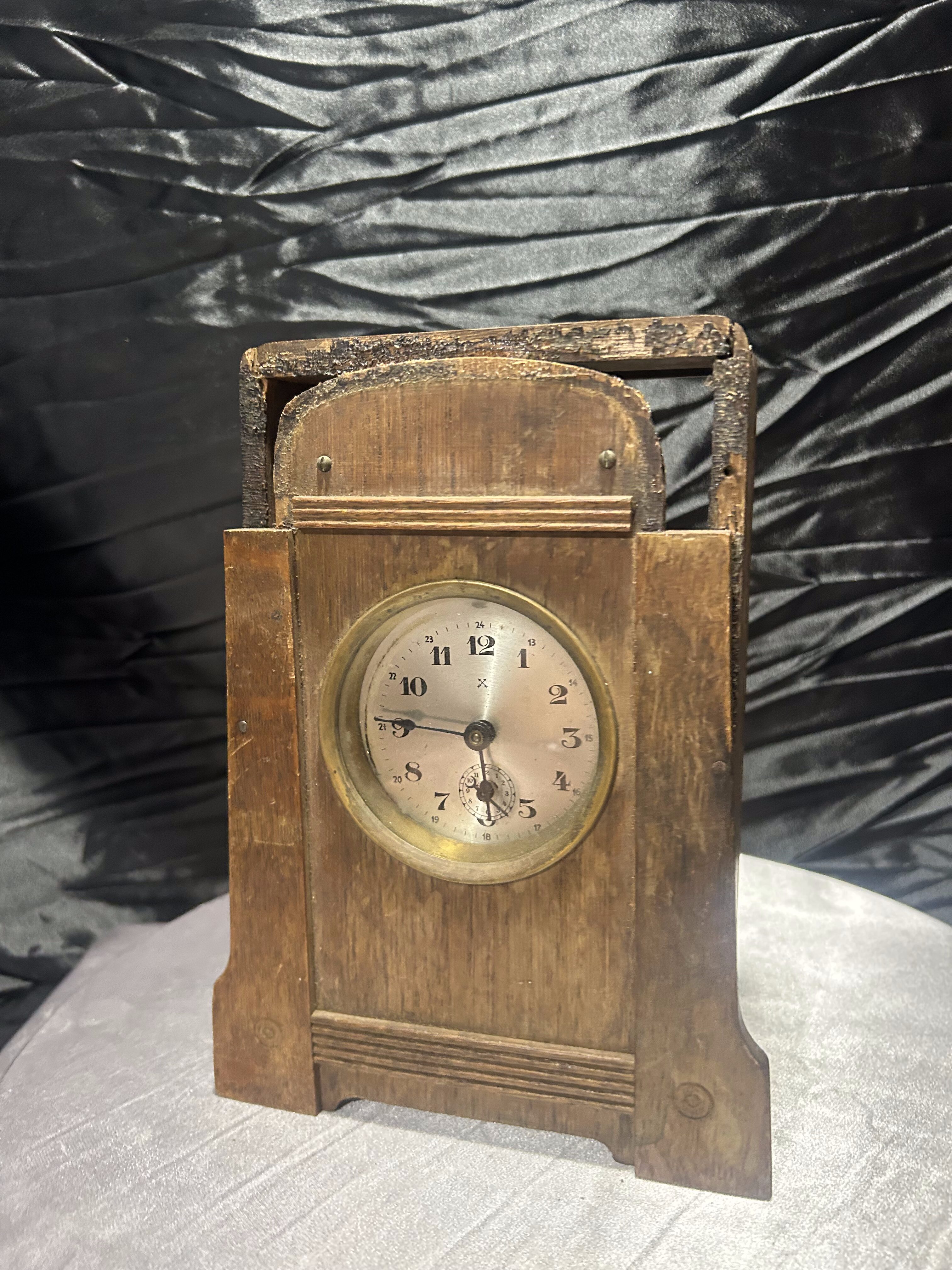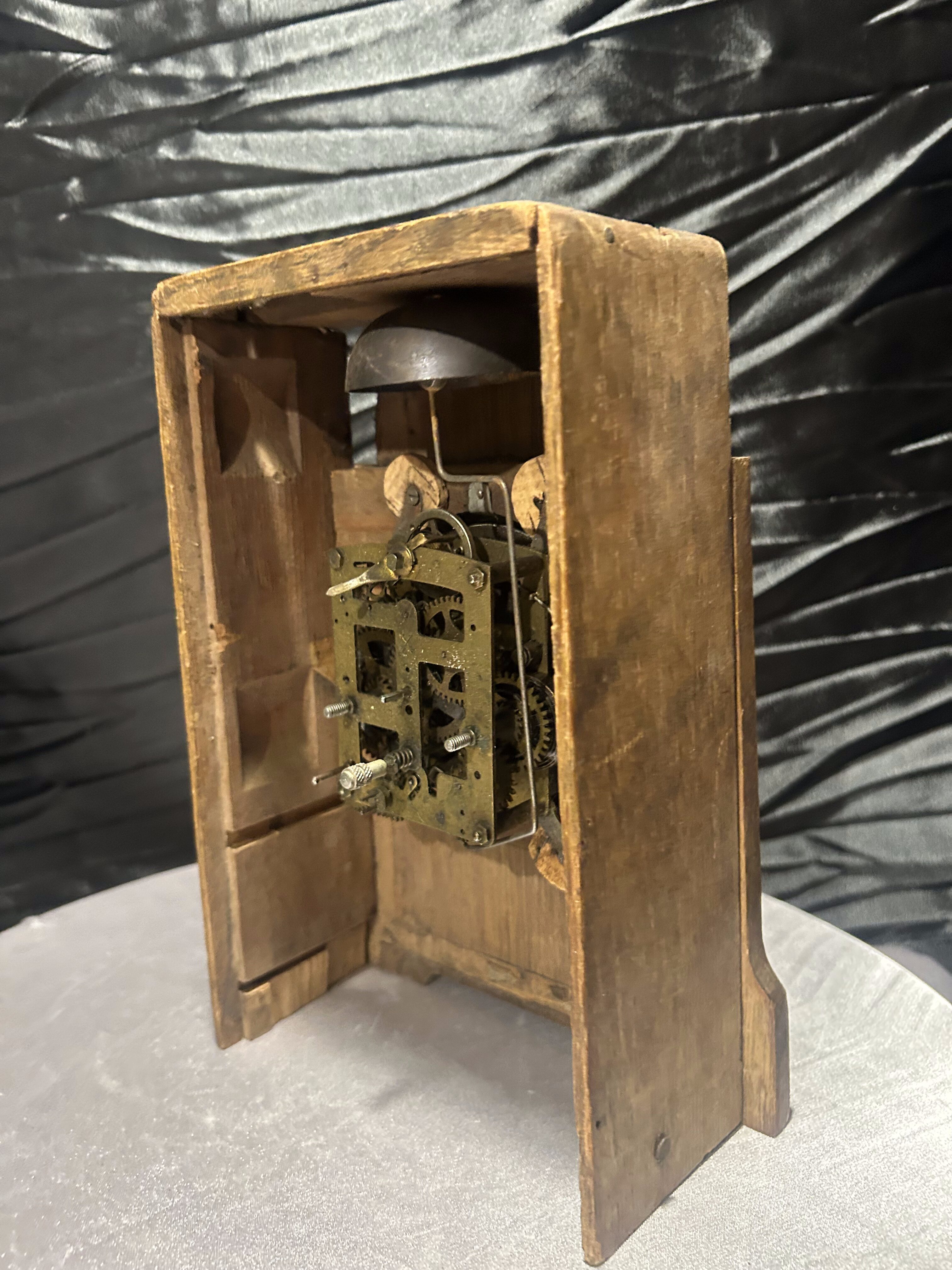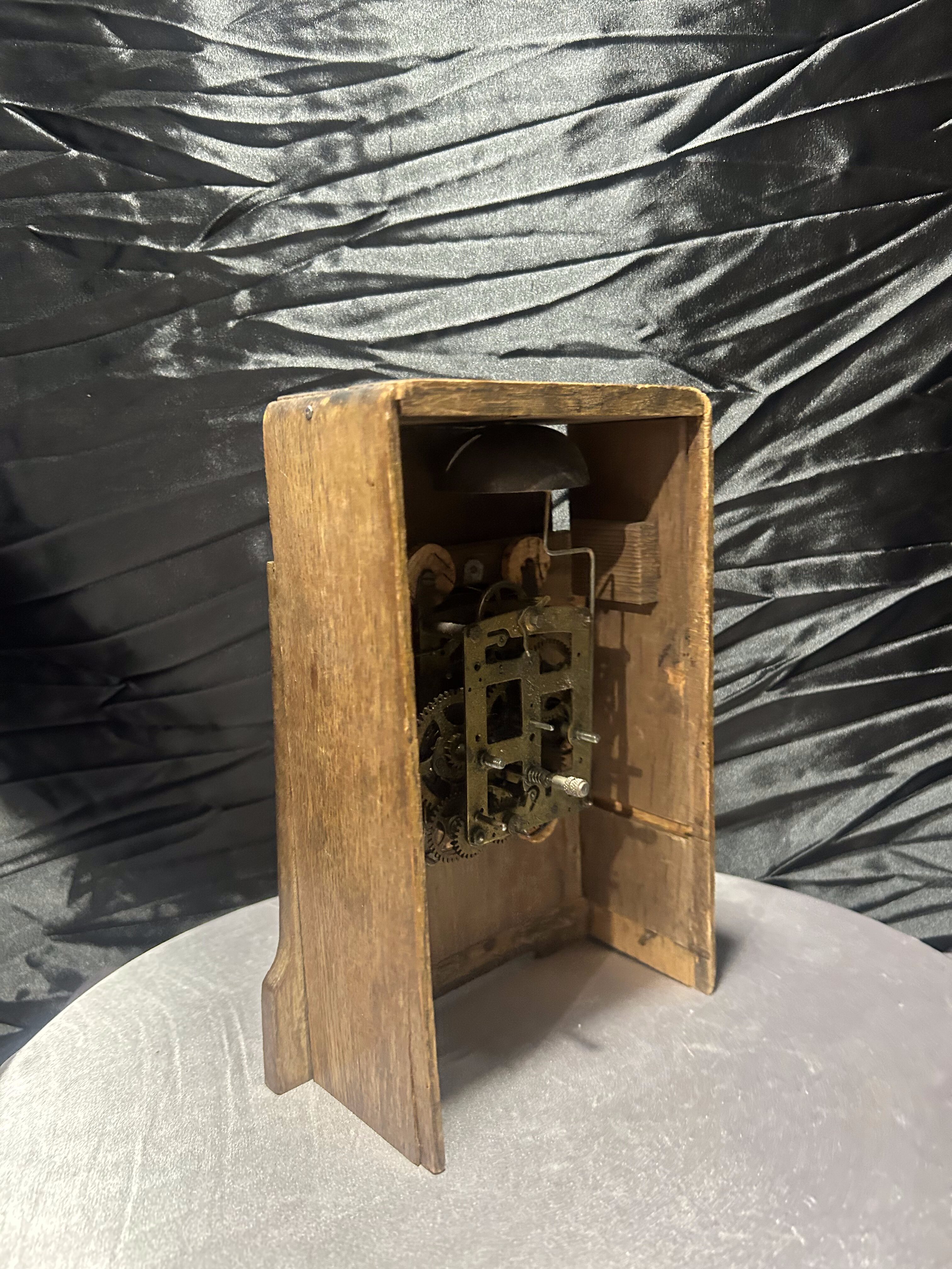 Oryginalny zegar DUFA (Deutsche Uhrenfabrik Ruhla), wykonany w Niemczech. Umieszczony w drewnianej obudowie o prostej, klasycznej formie. Mechanizm sygnowany charakterystycznym znakiem DUFA – skrzyżowanymi strzałami – potwierdza autentyczność i pochodzenie. Zegar sprzedaję w stanie widocznym na zdjęciach, z zachowaną patyną i śladami czasu, które nadają mu kolekcjonerskiego charakteru.