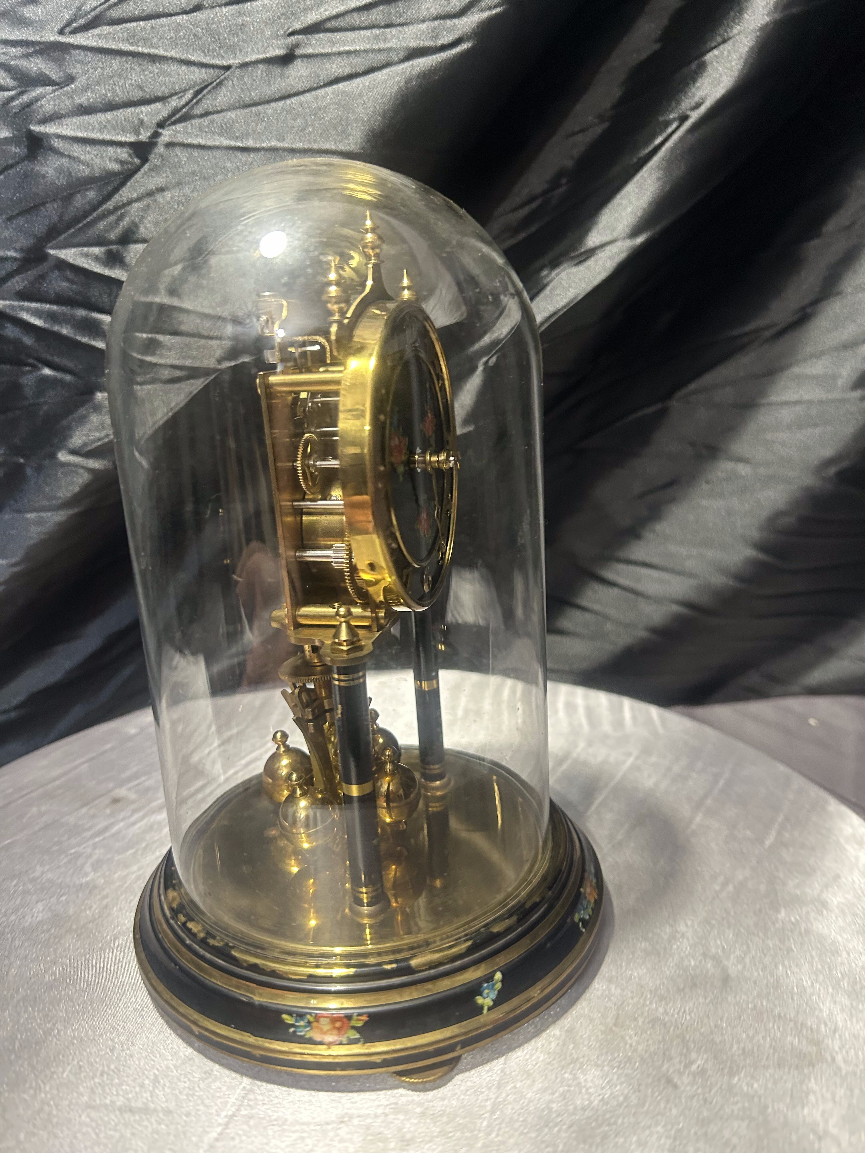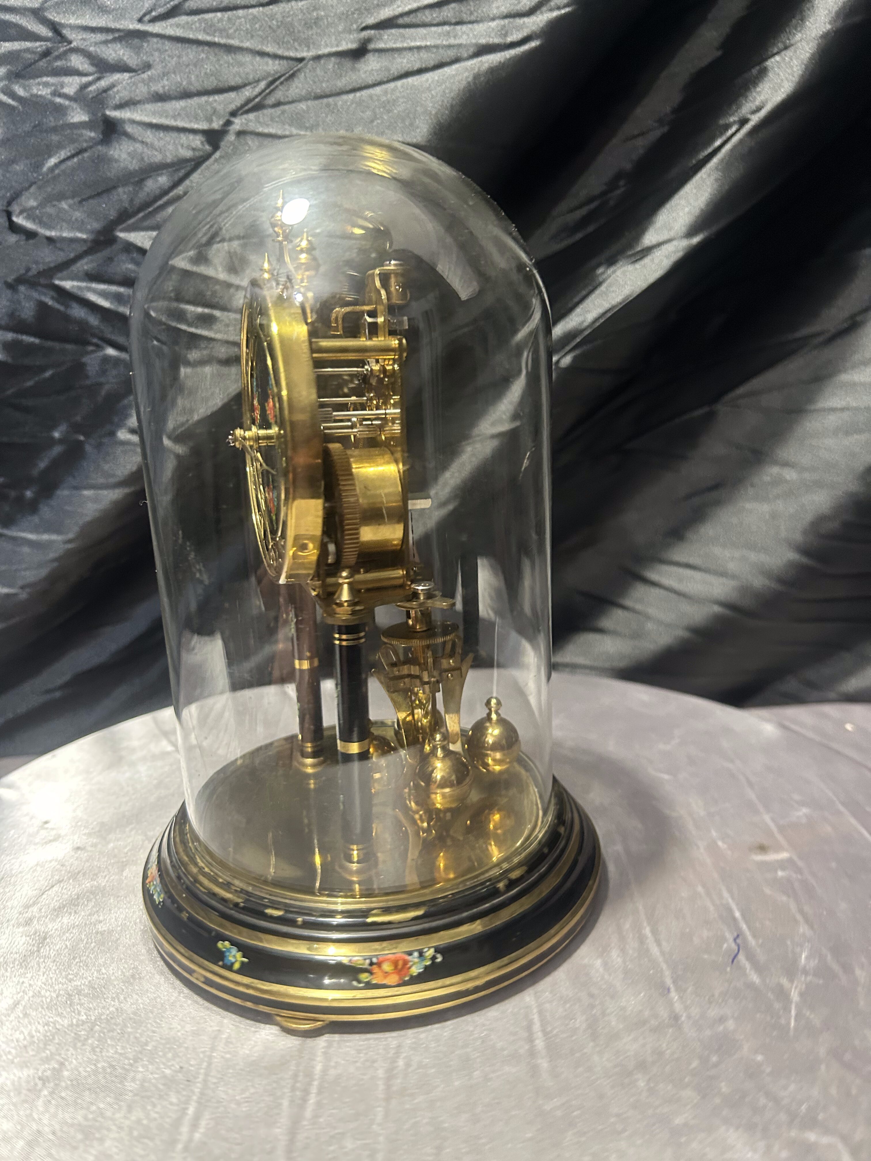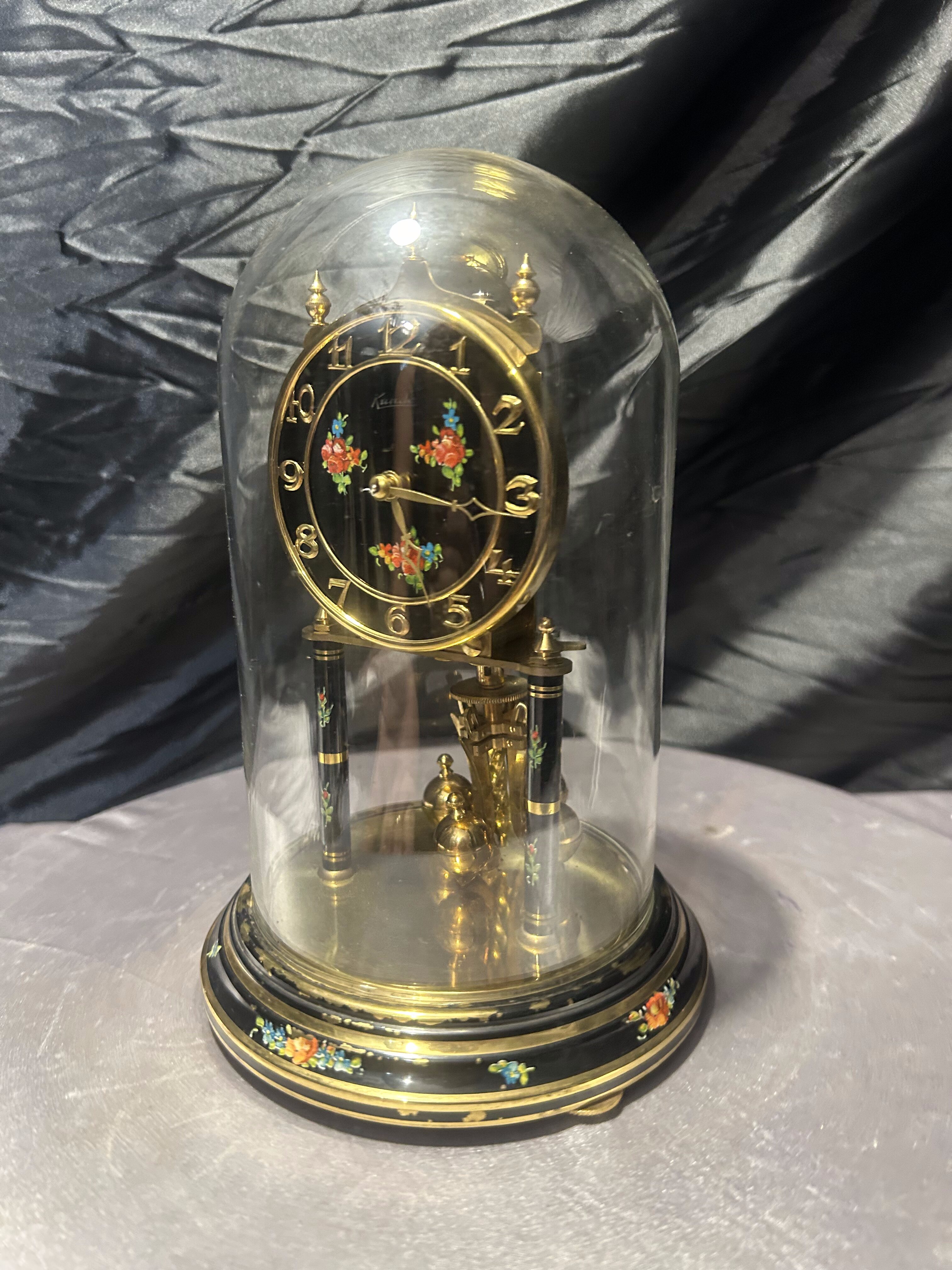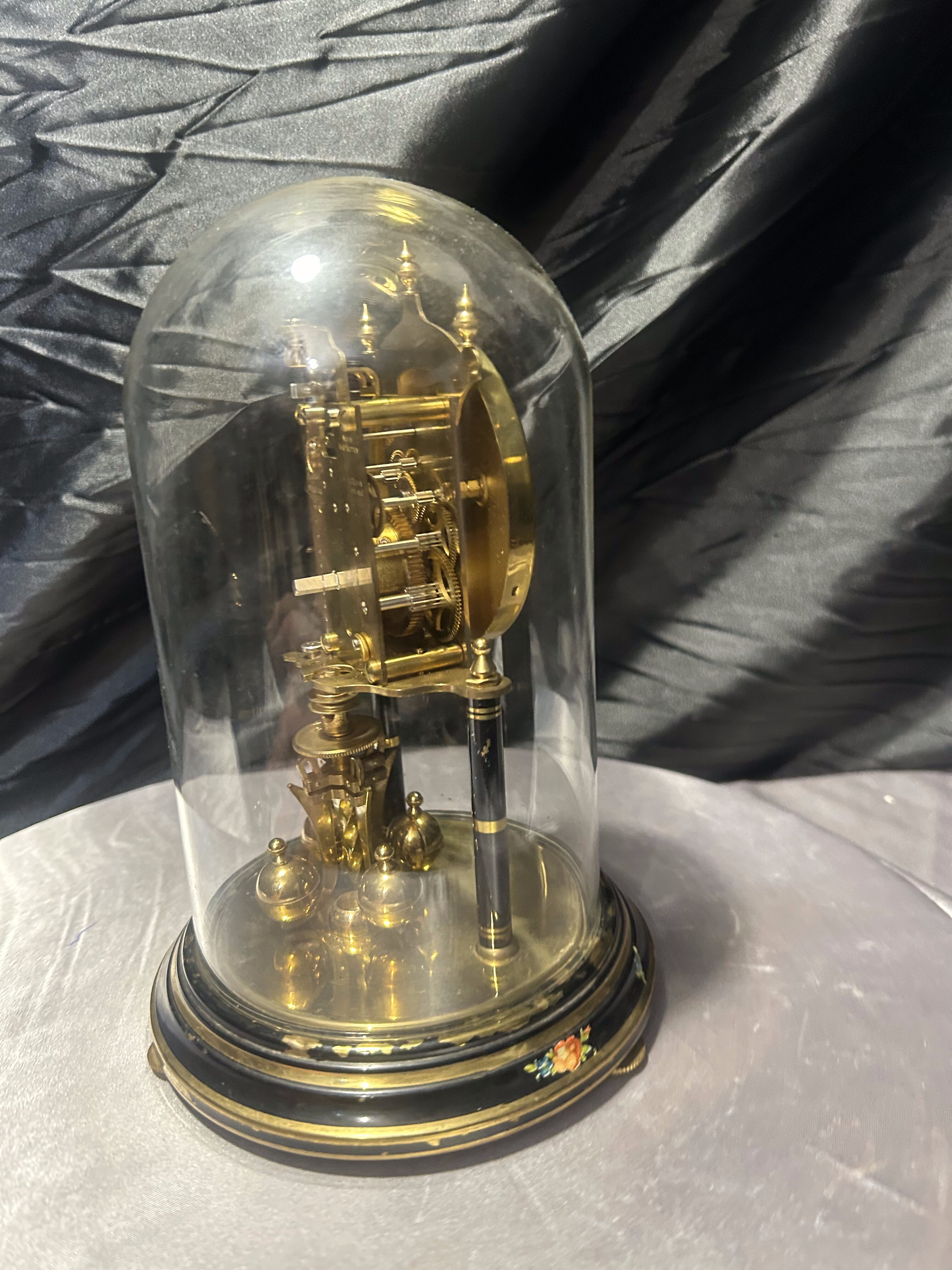 Zegar roczniak pod szklaną kopułą – klasyczny model z ręcznie malowanymi zdobieniami