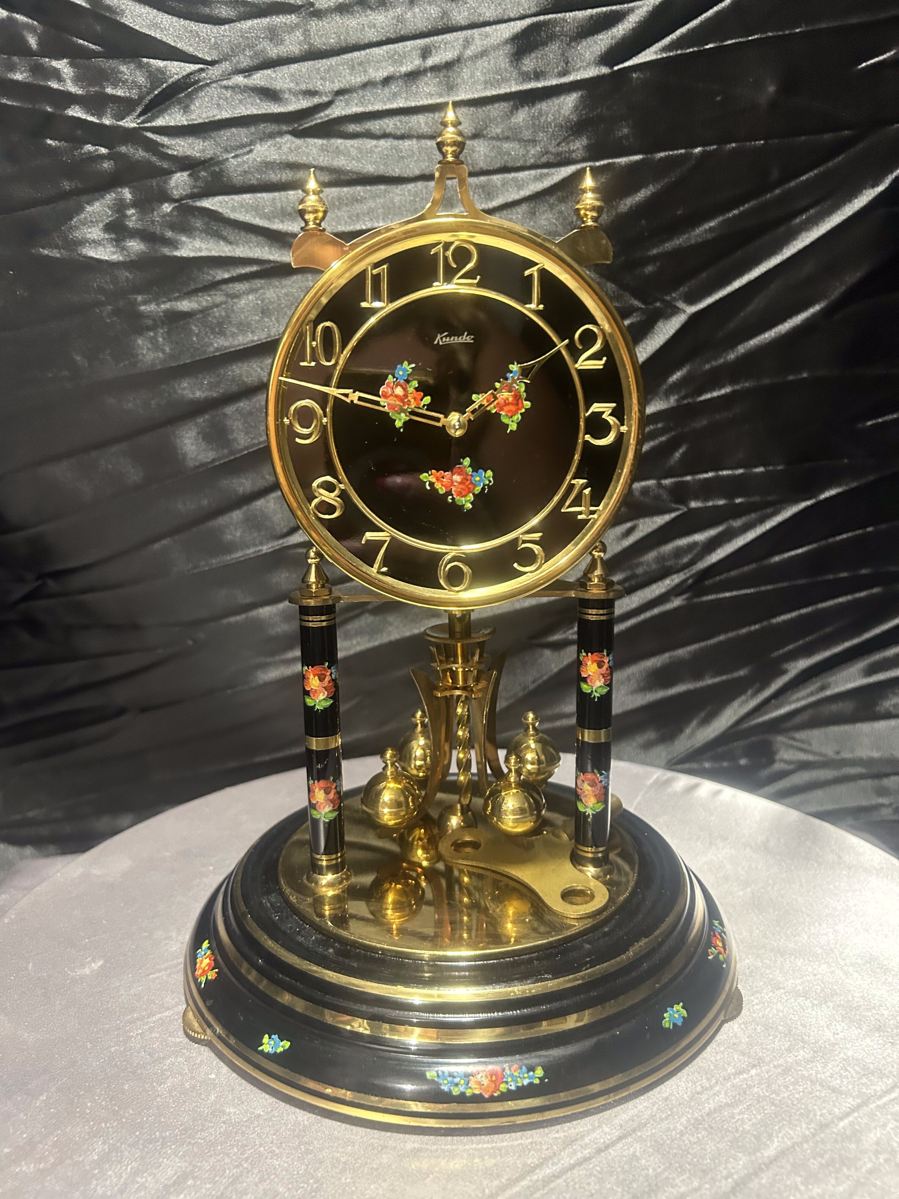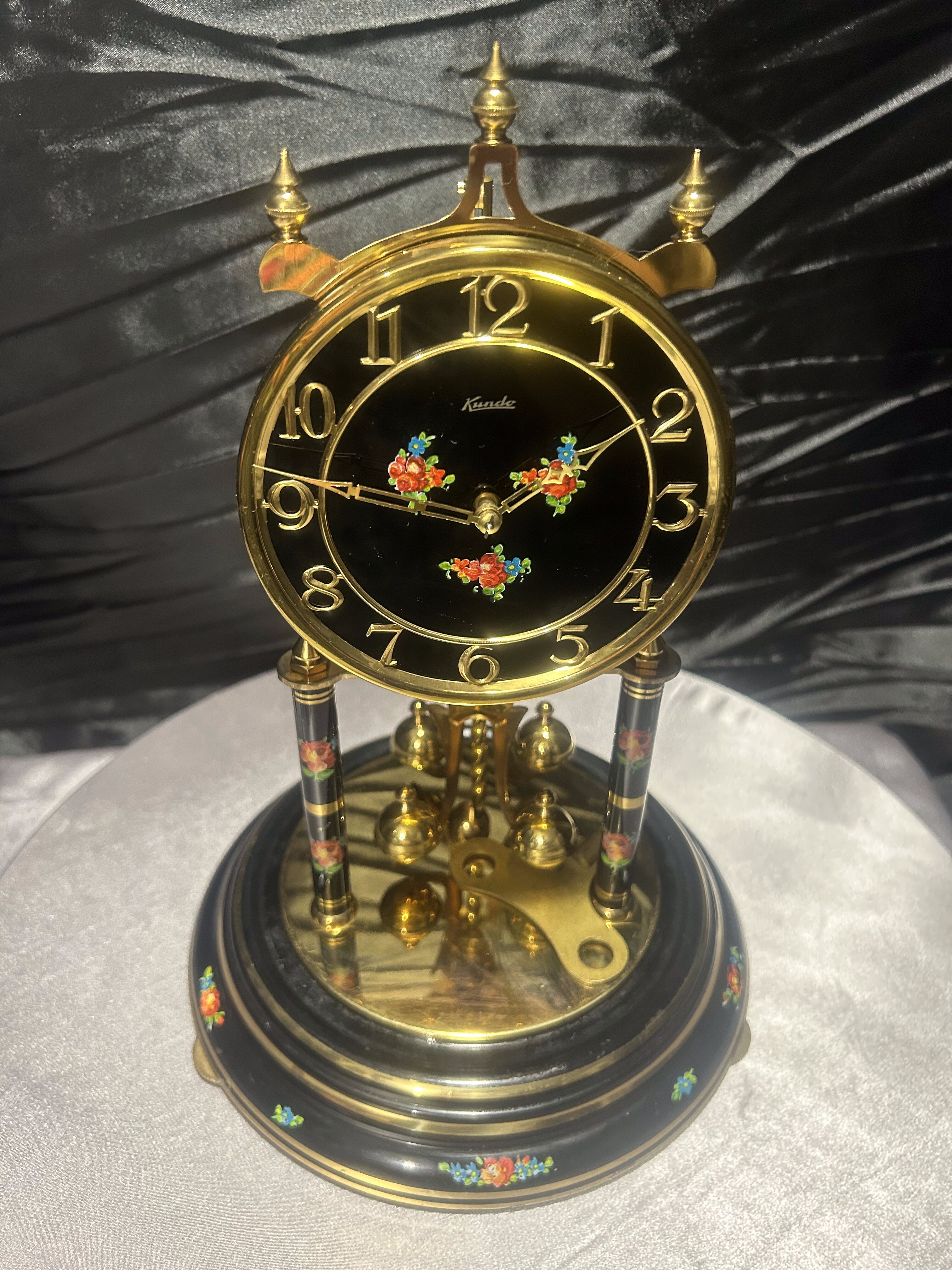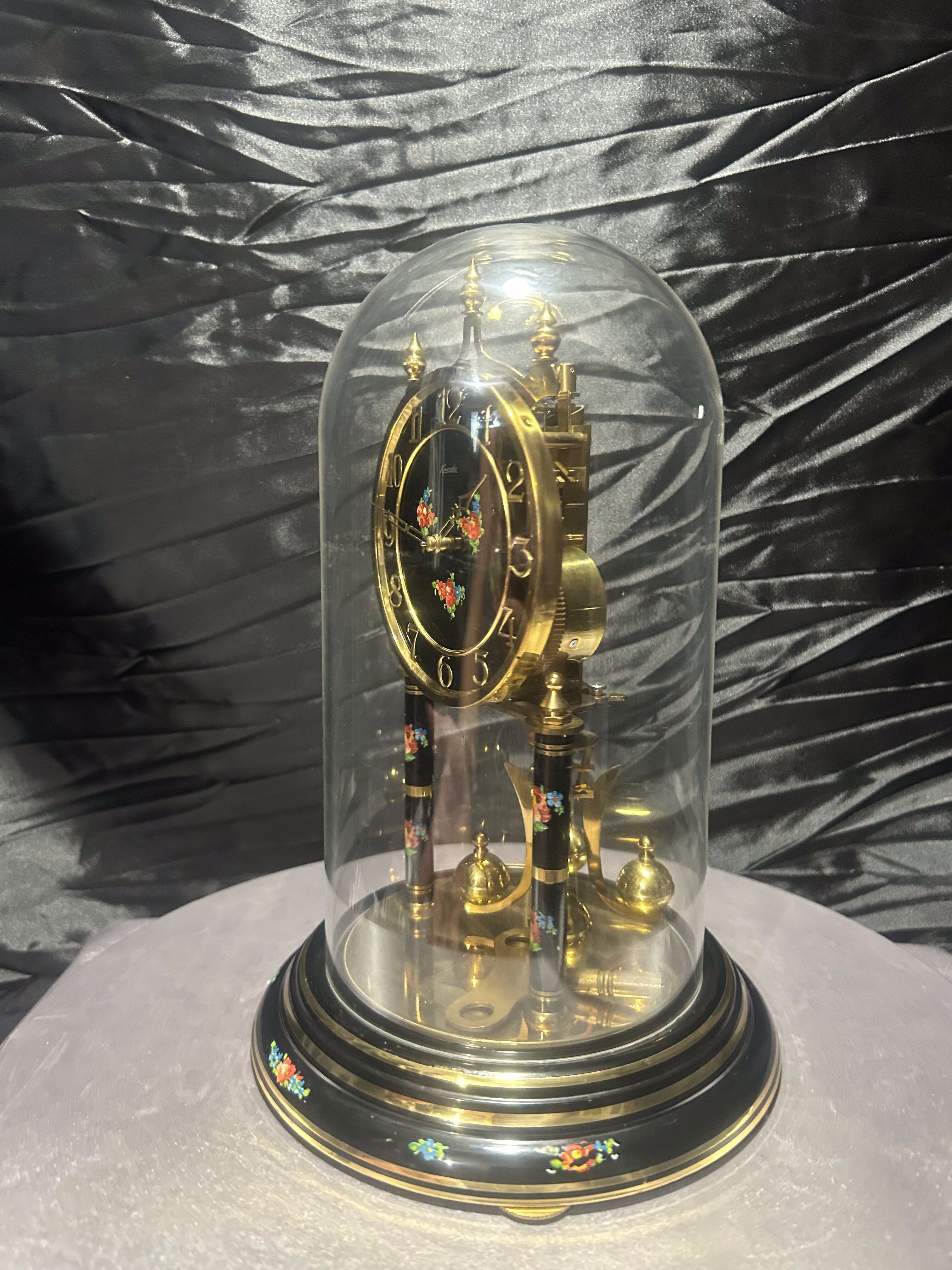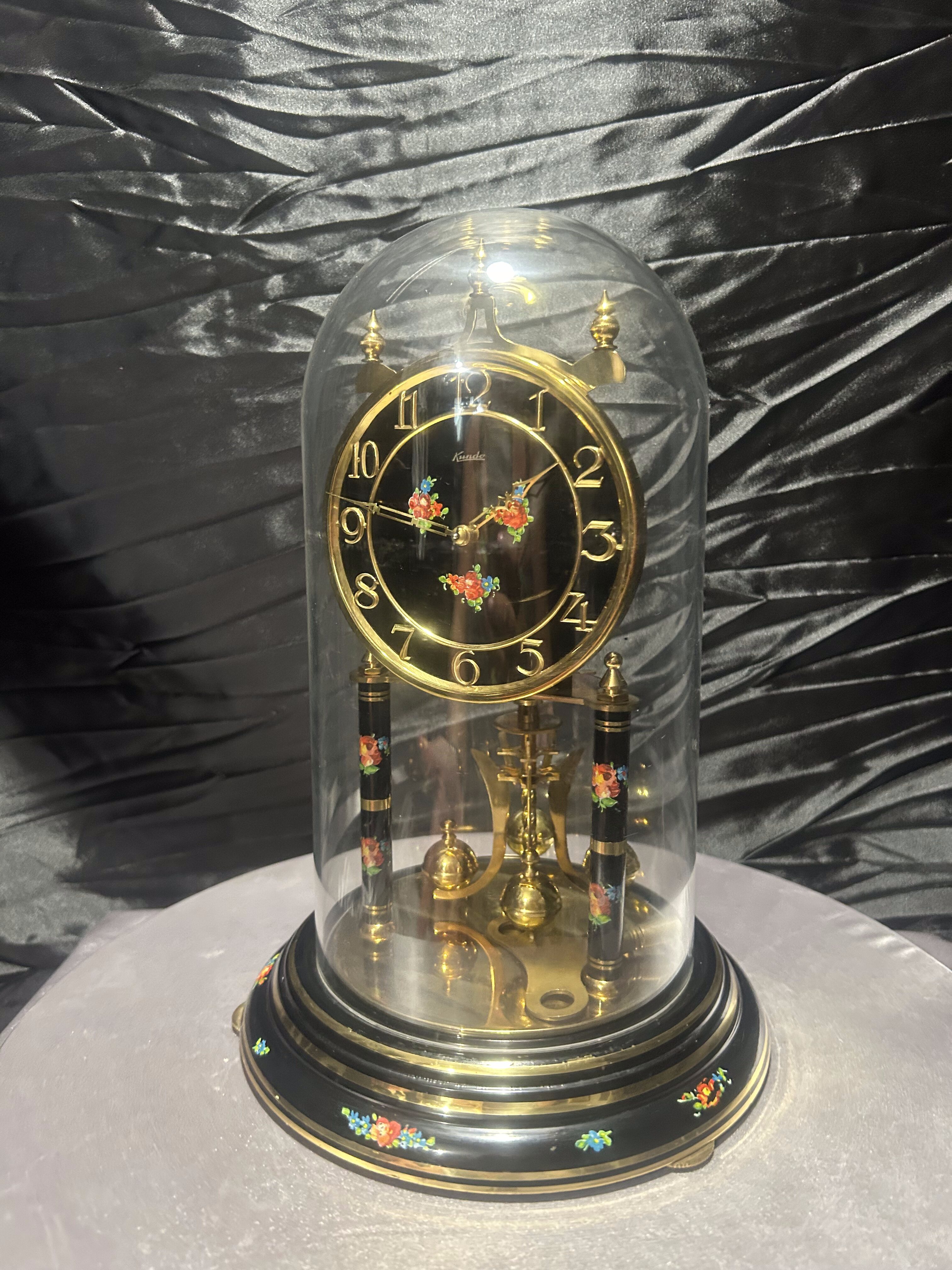 Zegar roczniak w kopule – Kundo – czarna tarcza z motywem kwiatowym