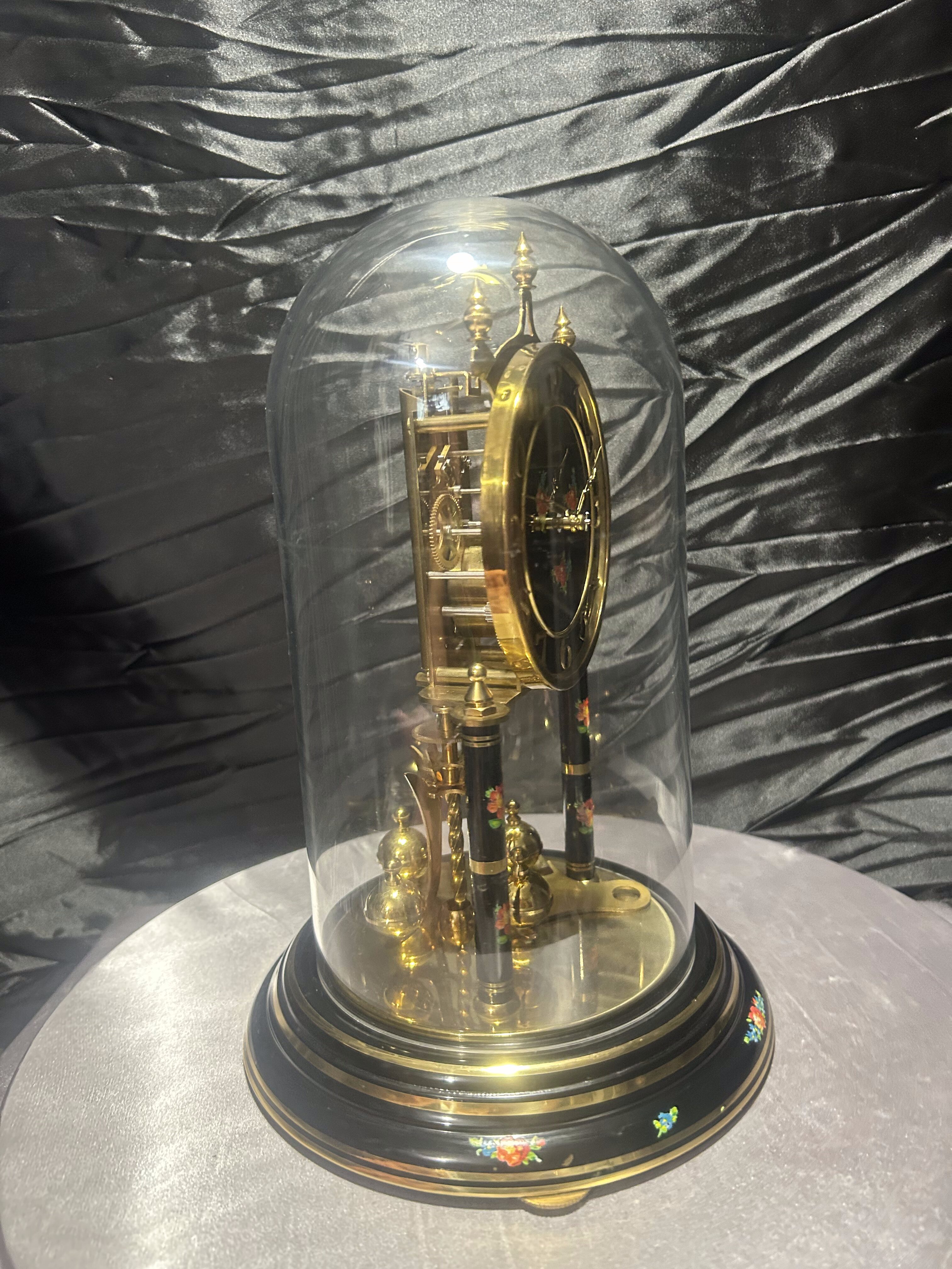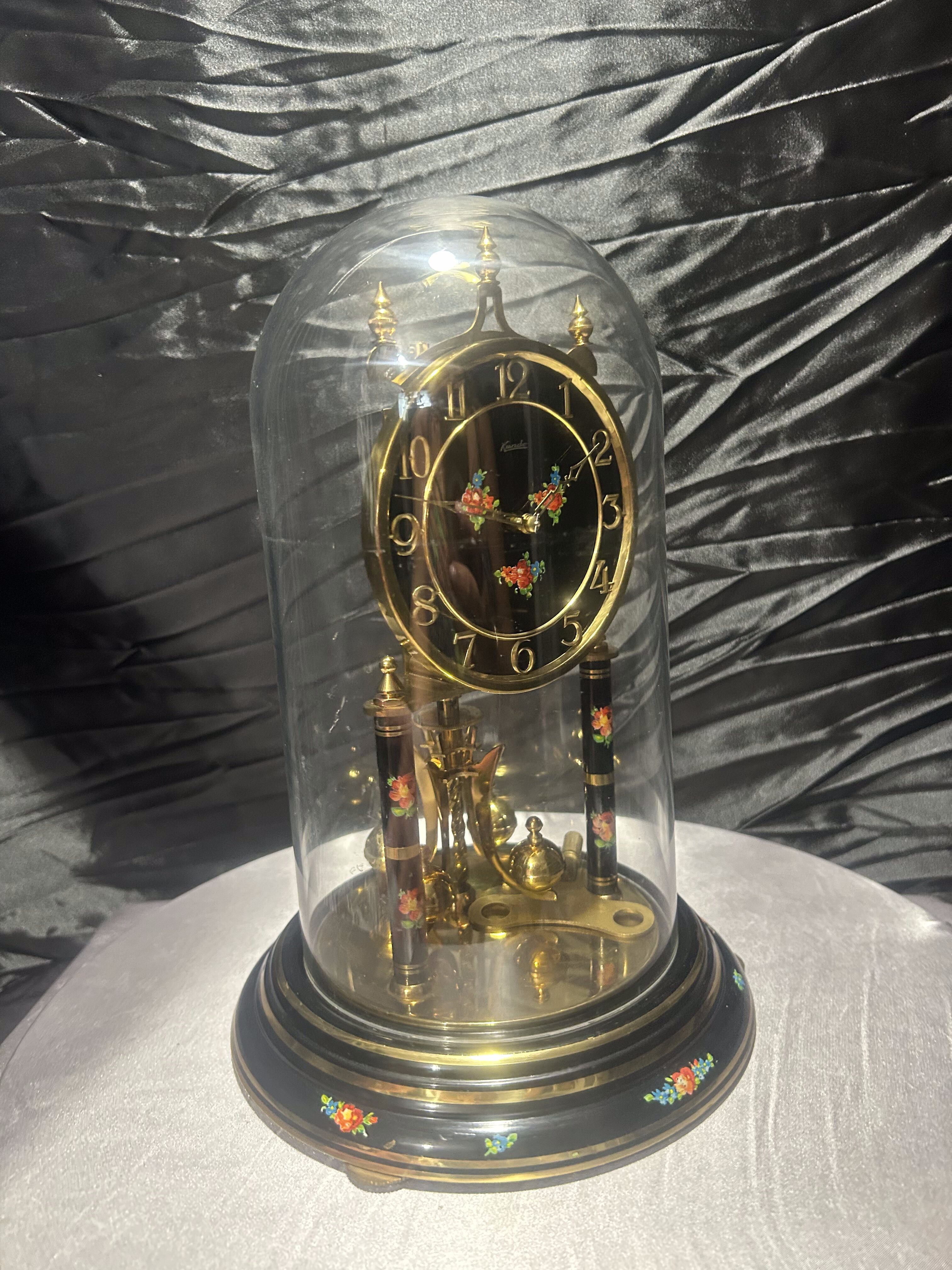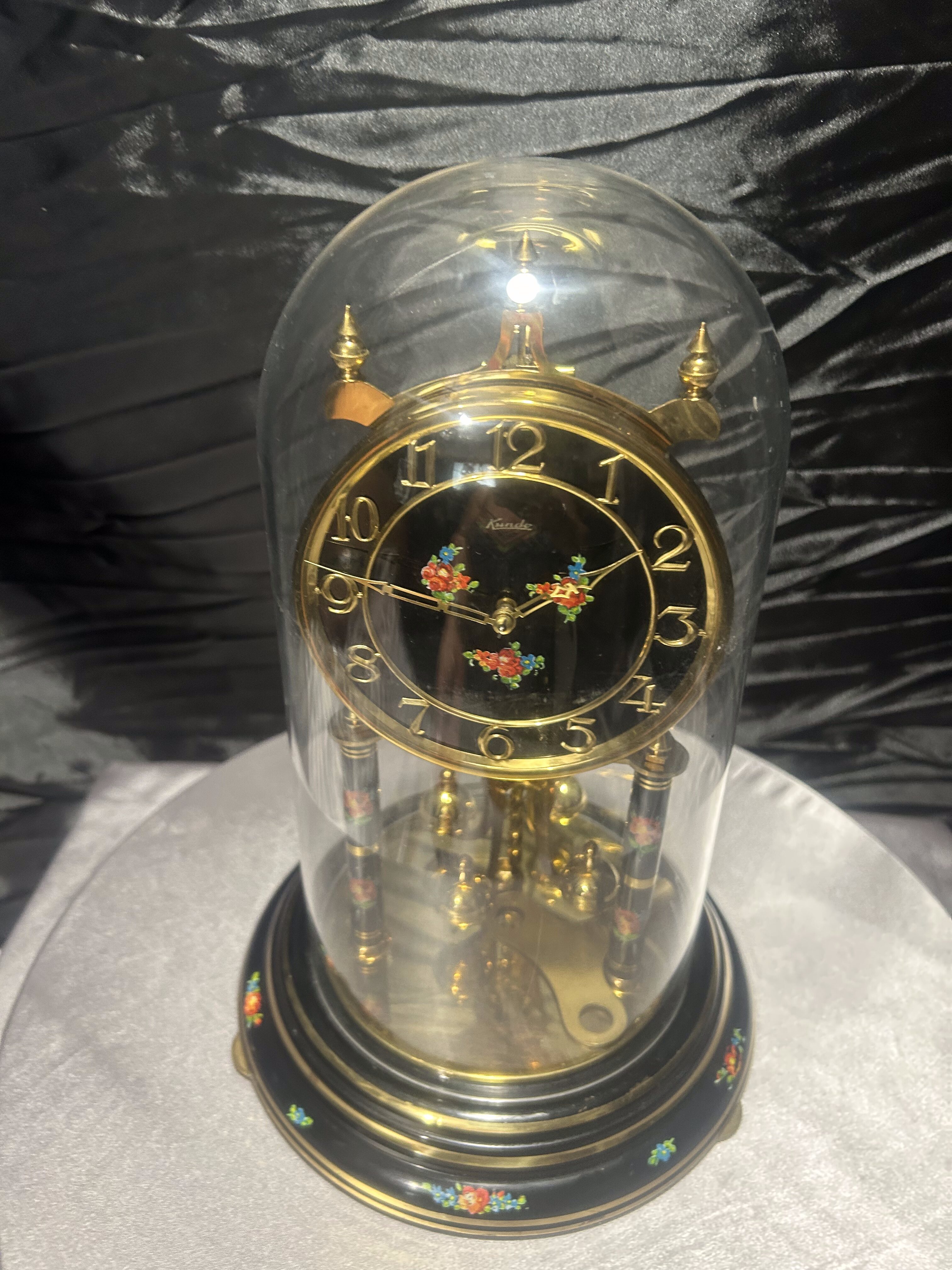 Zegar roczniak w kopule – Kundo – czarna tarcza z motywem kwiatowym